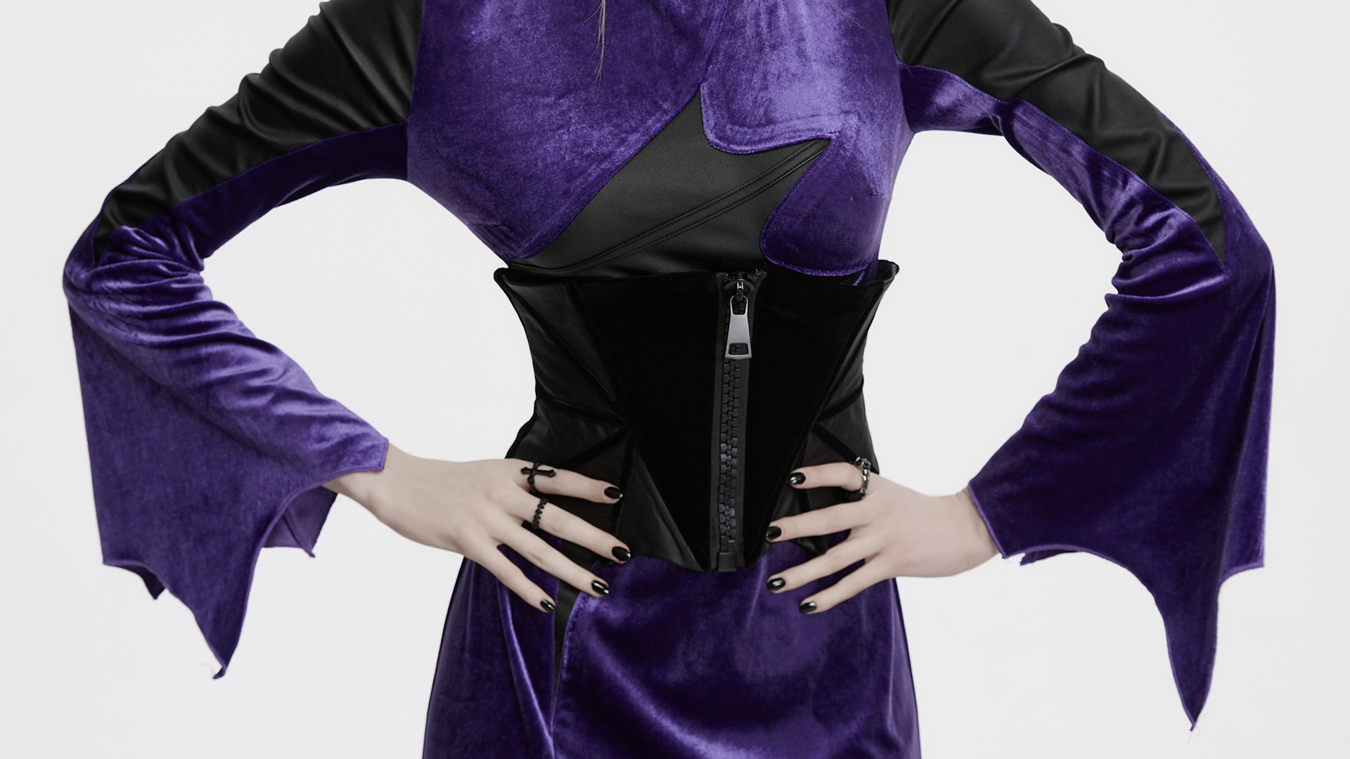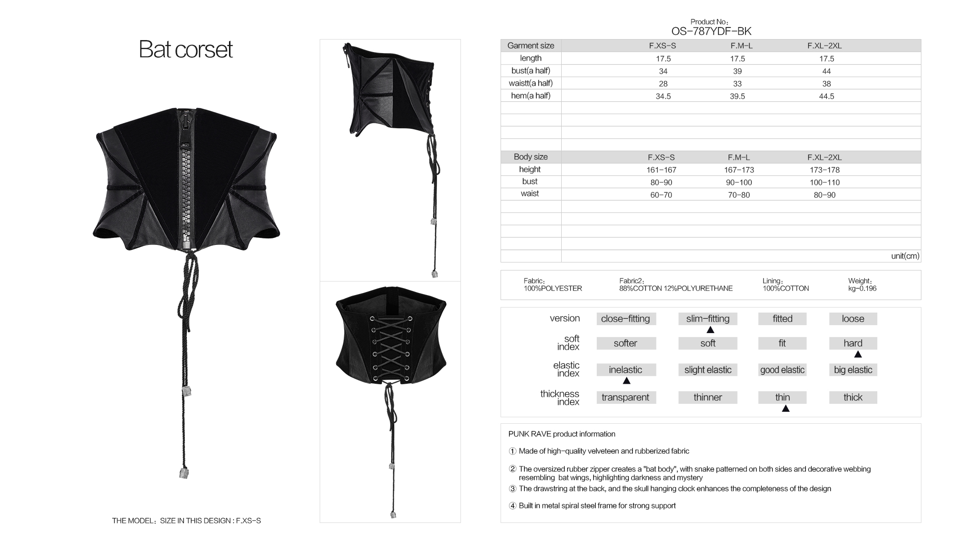 The oversized rubber zipper creates a “bat body”, with snake patterned on both sides and decorative webbing resembling bat wings, highlighting darkness and mystery.