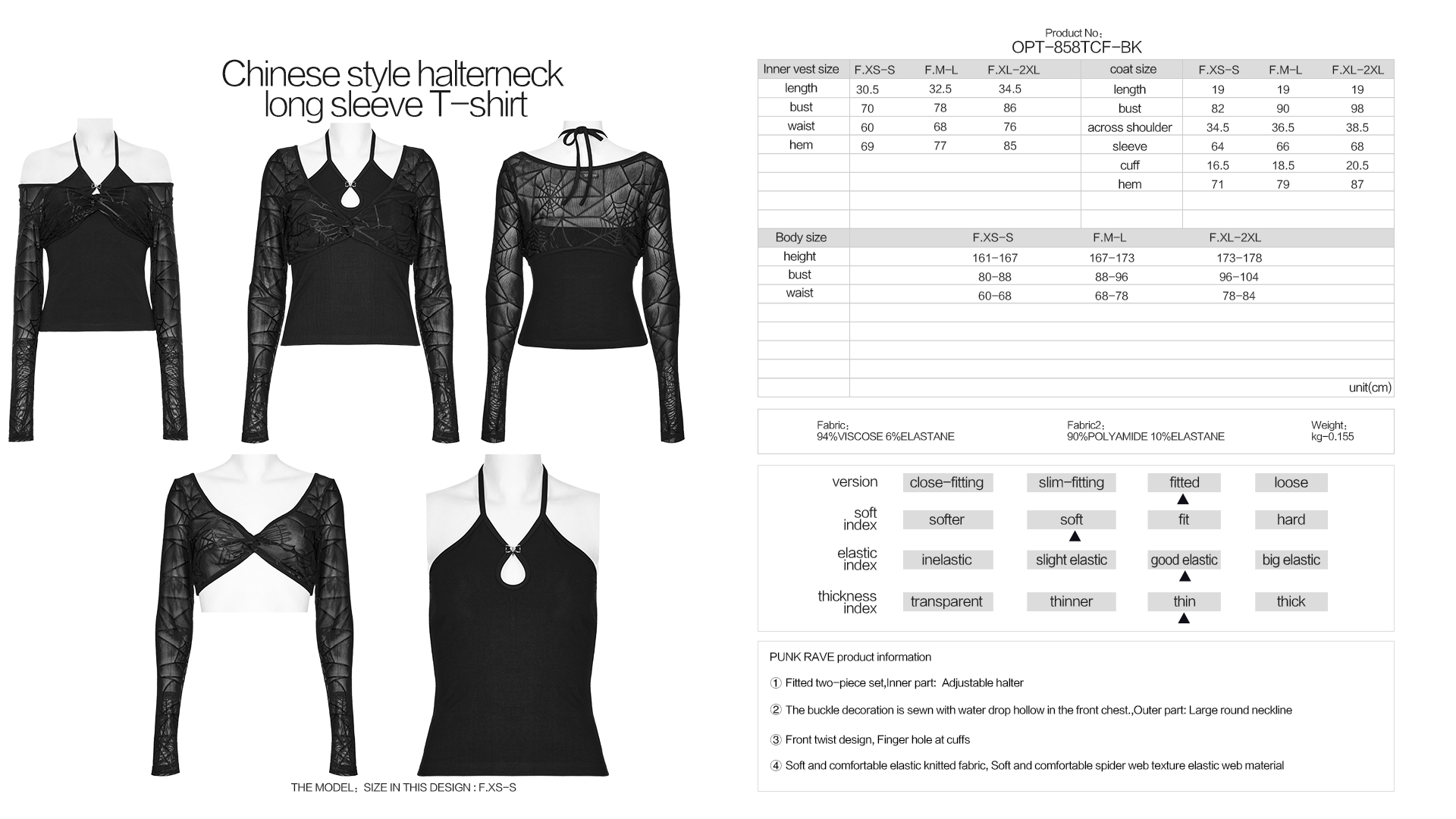 The buckle decoration is sewn with water drop hollow in the front chest. Outer part :Large round neckline.