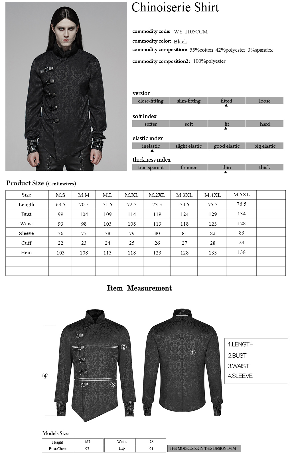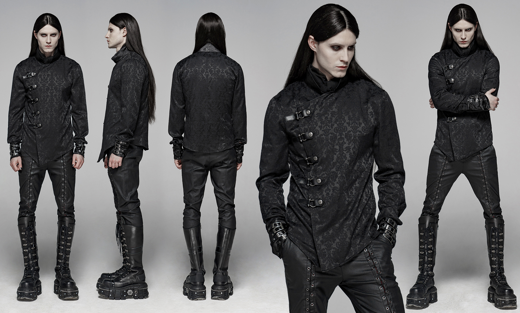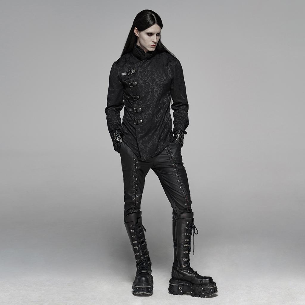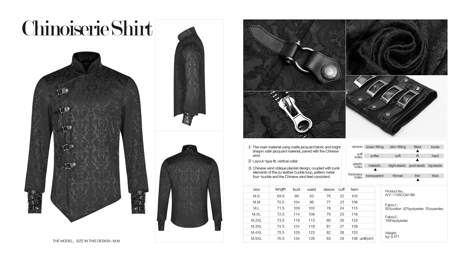 Chinese wind oblique placket design, coupled with punk elements of the PU leather buckle loop.