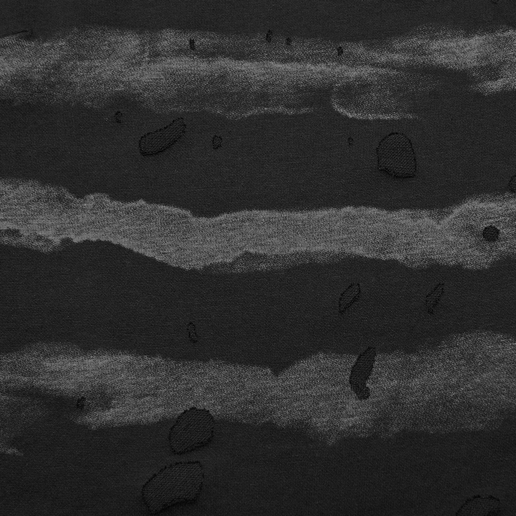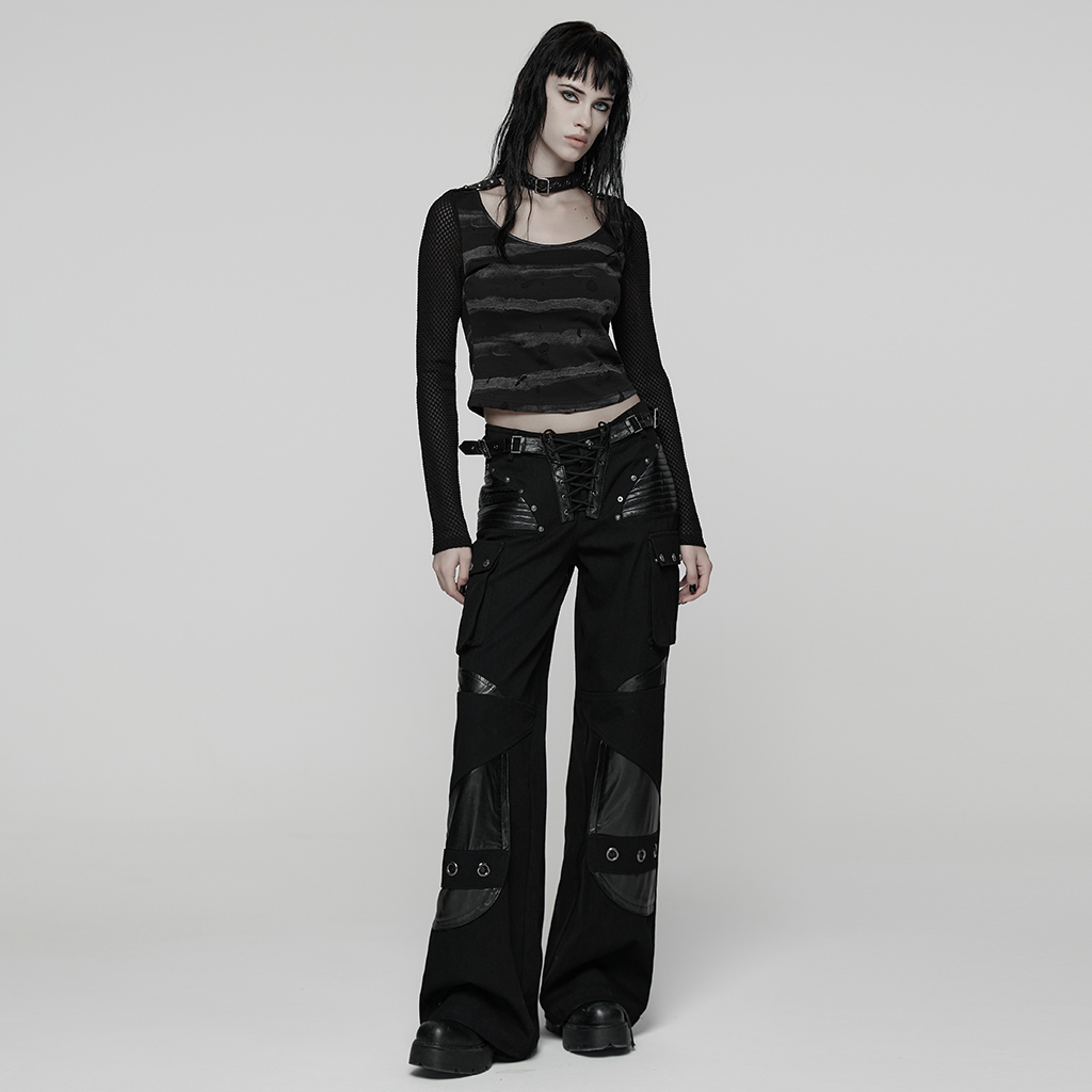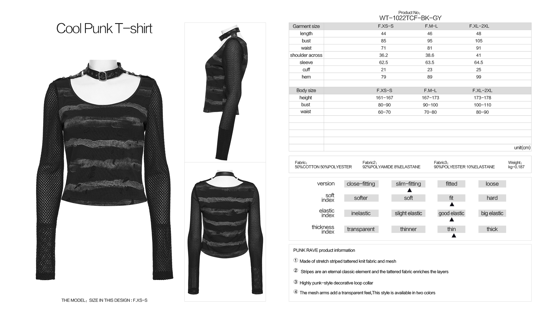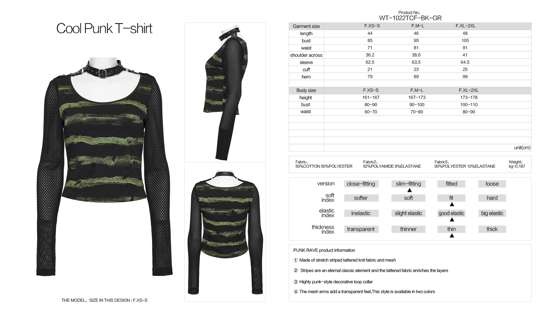 Made of stretch striped tattered knit fabric and mesh.
