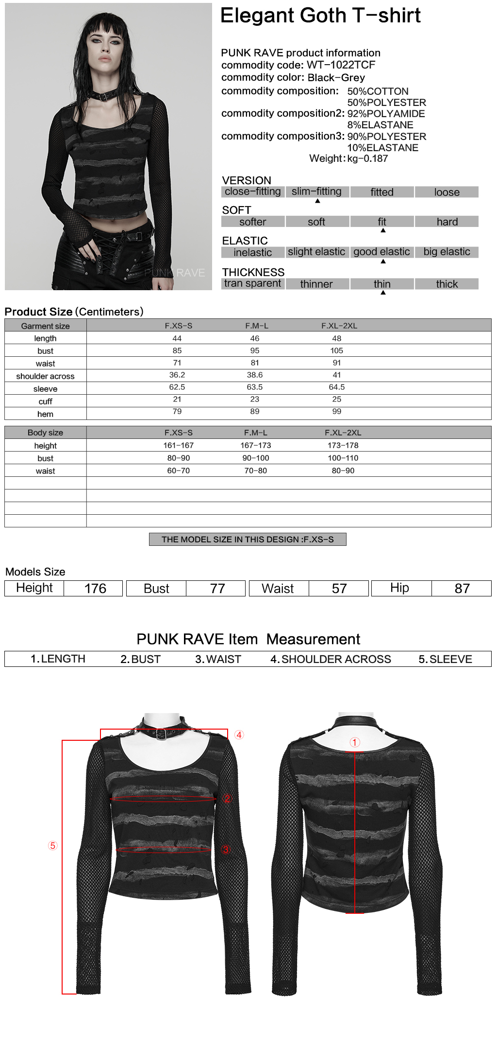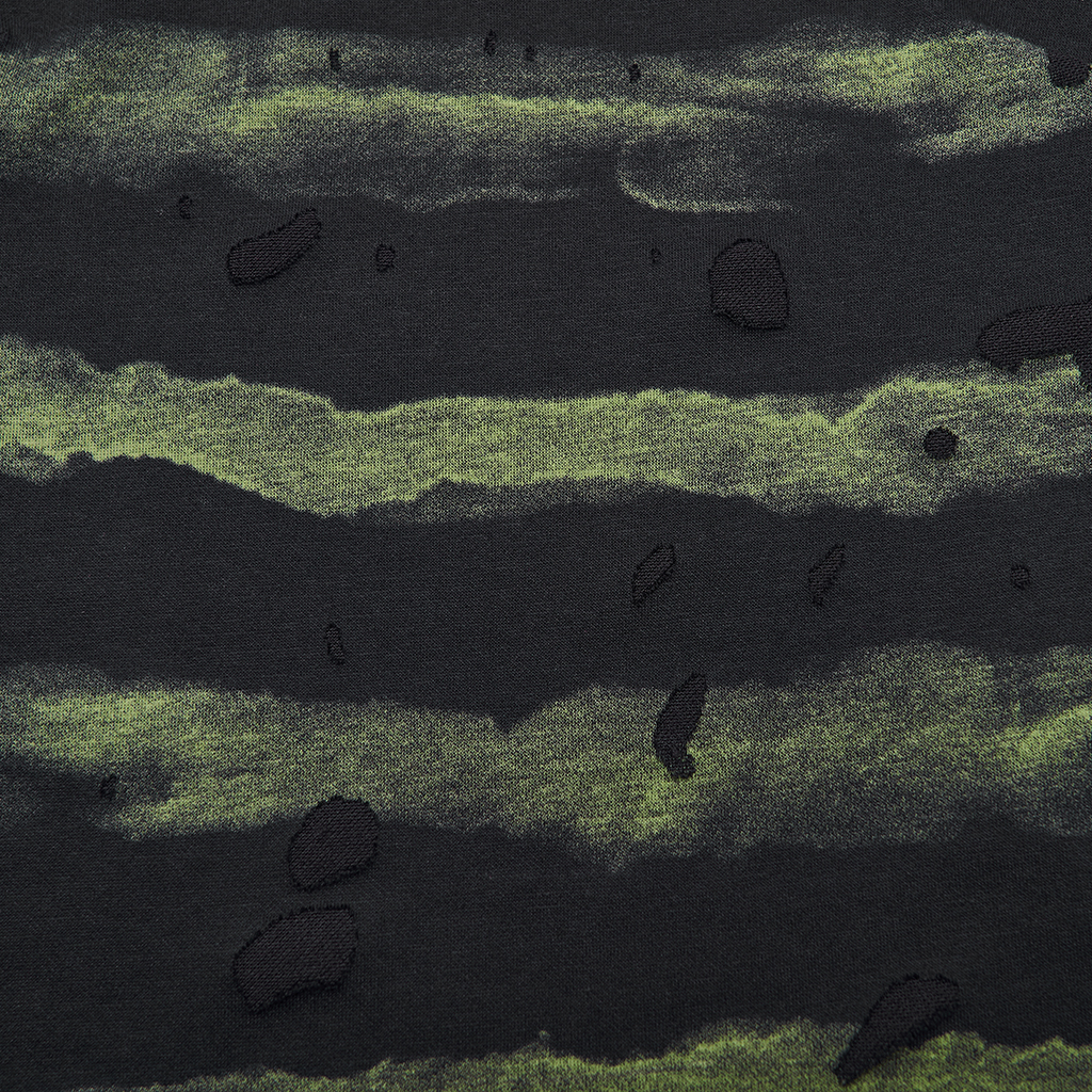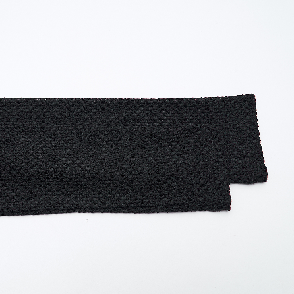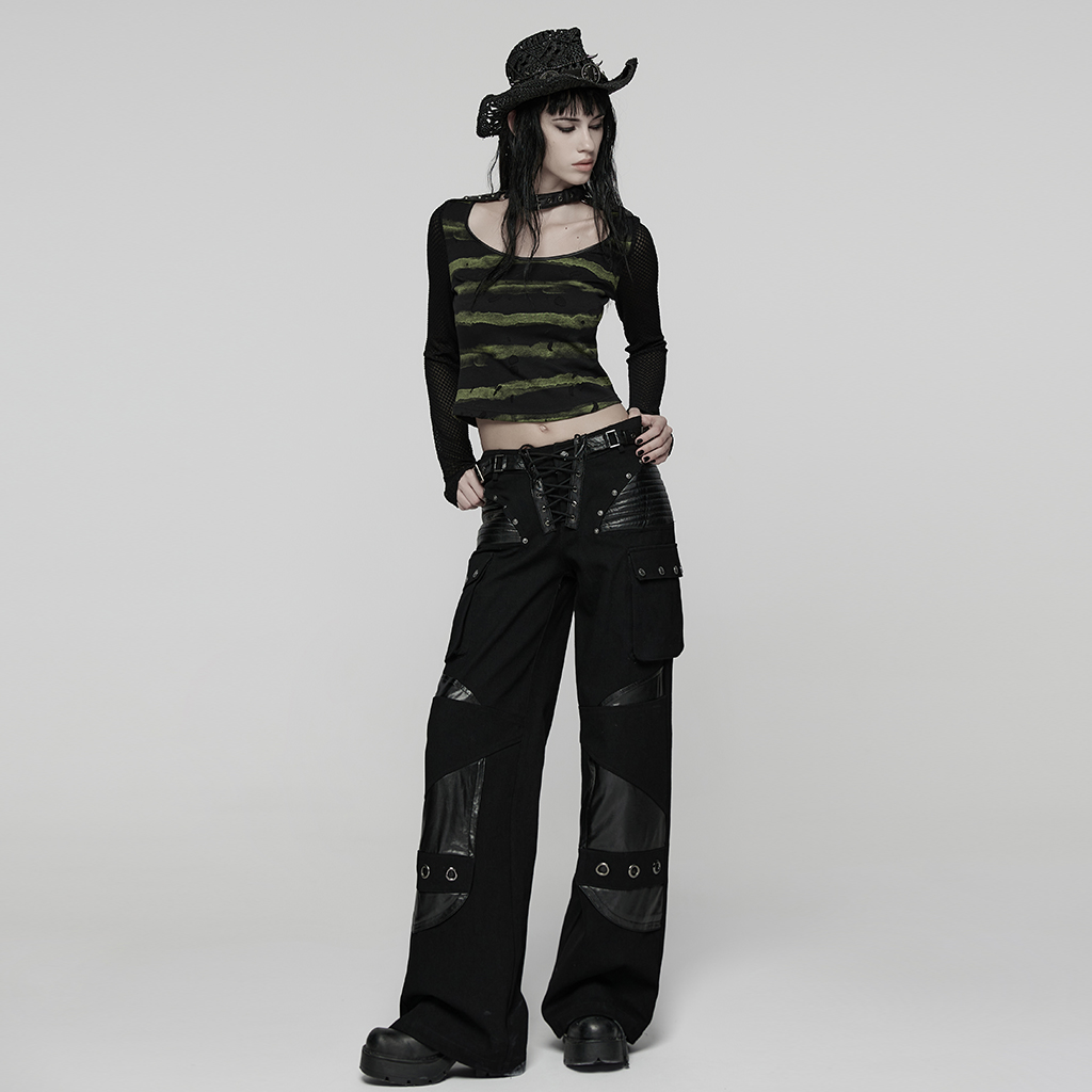 Made of stretch striped tattered knit fabric and mesh.
