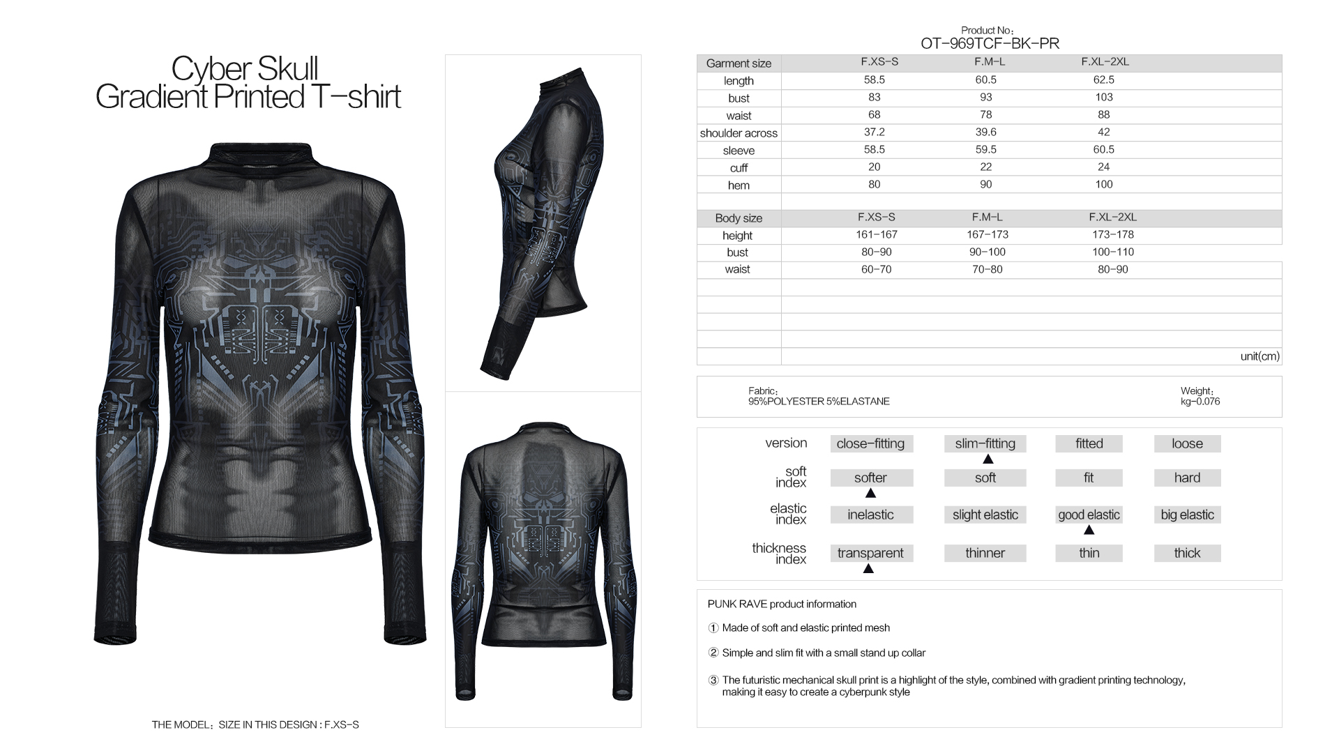 The futuristic mechanical skull print is a highlight of the style, combined with gradient printing technology, making it easy to create a cyberpunk style.