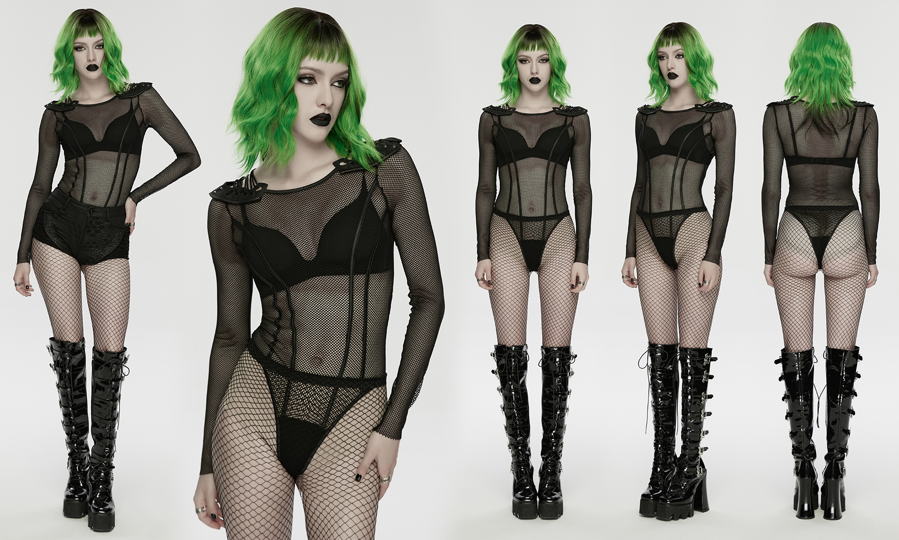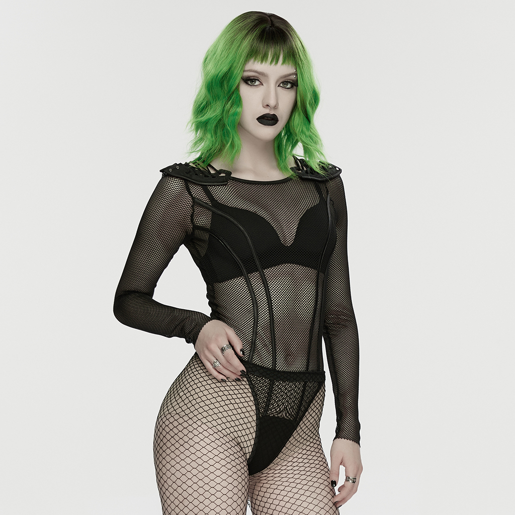 The mesh boldly interprets the hazy sexiness, and the precise diagonal segmentation on both sides make it appear slender and neat.