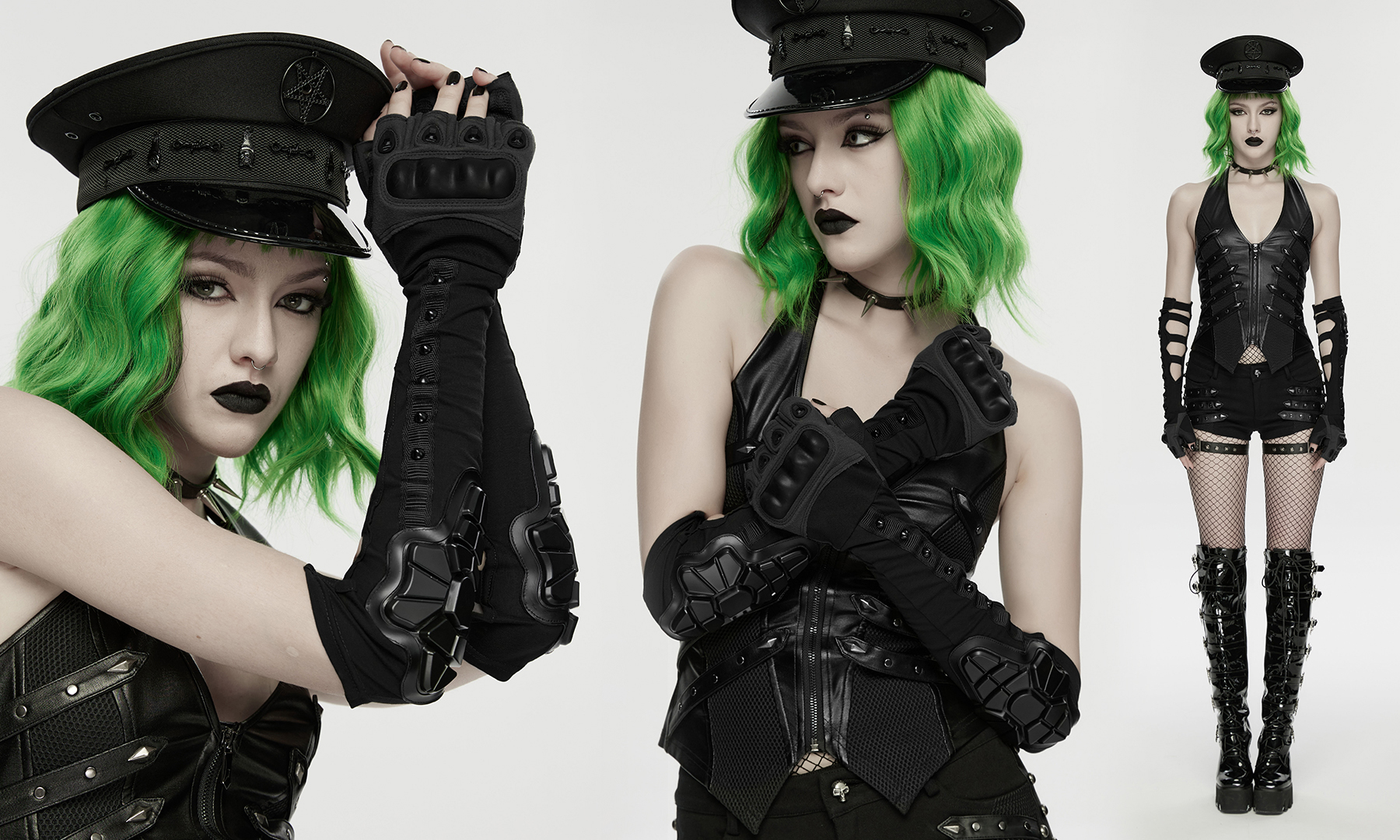 The elbow is embedded with shock-absorbing black rubber, and the studded straps add a hardcore atmosphere.
