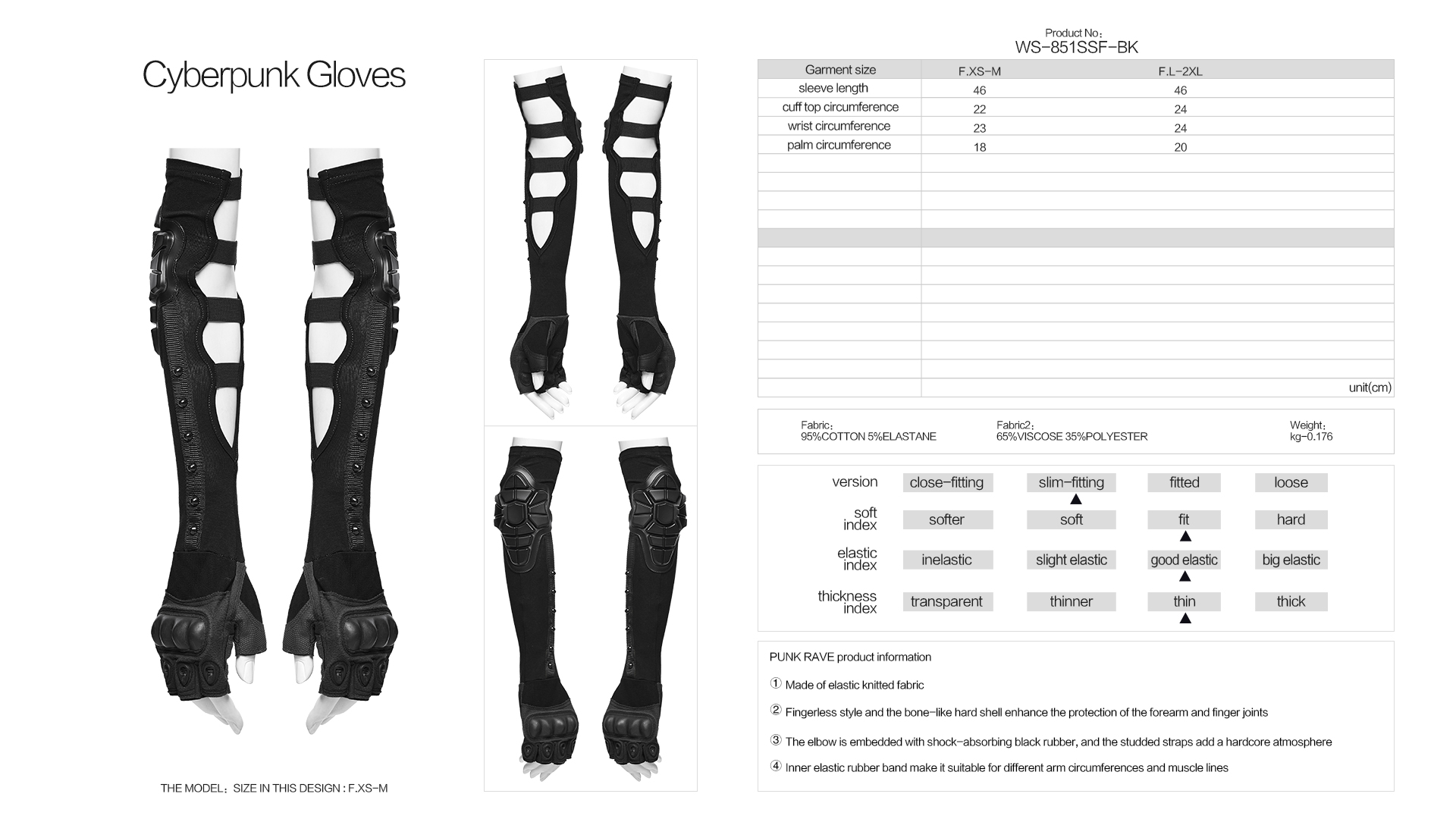 Fingerless style and the bone-like hard shell enhance the protection of the forearm and finger joints.