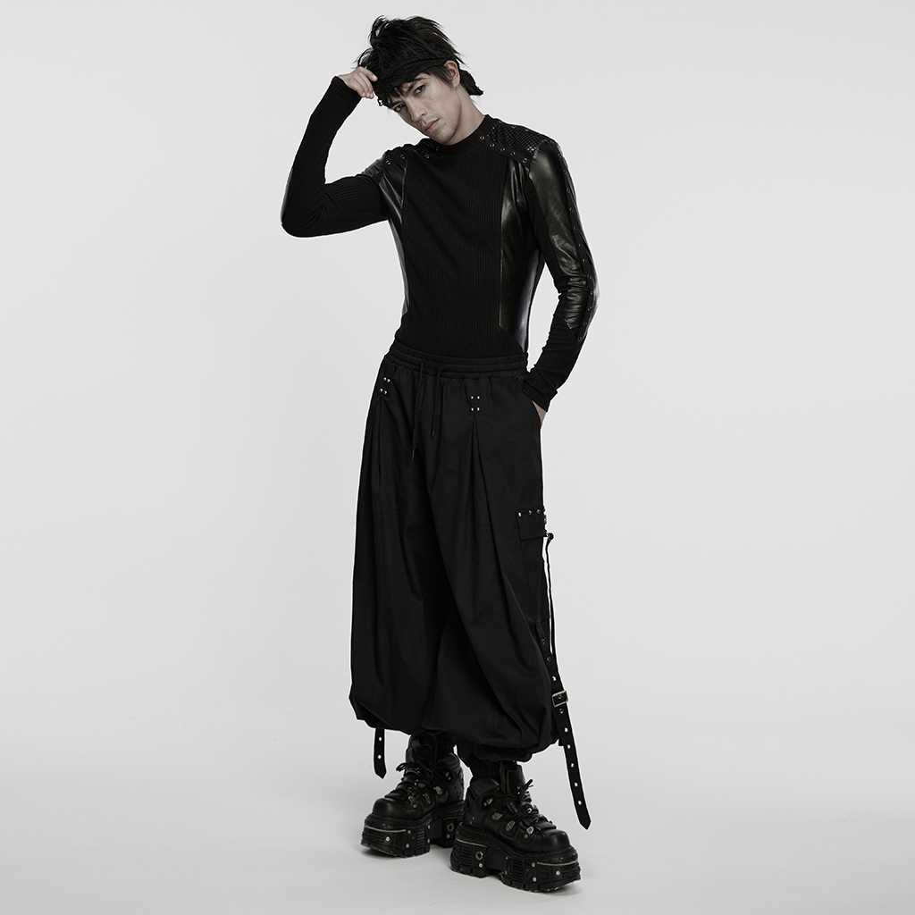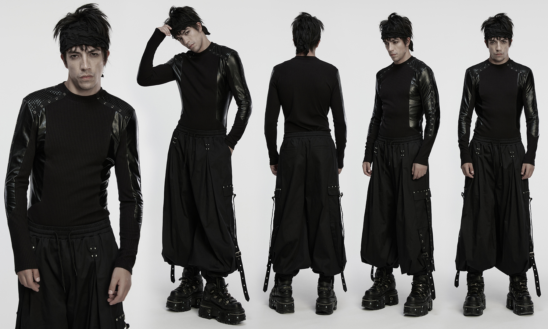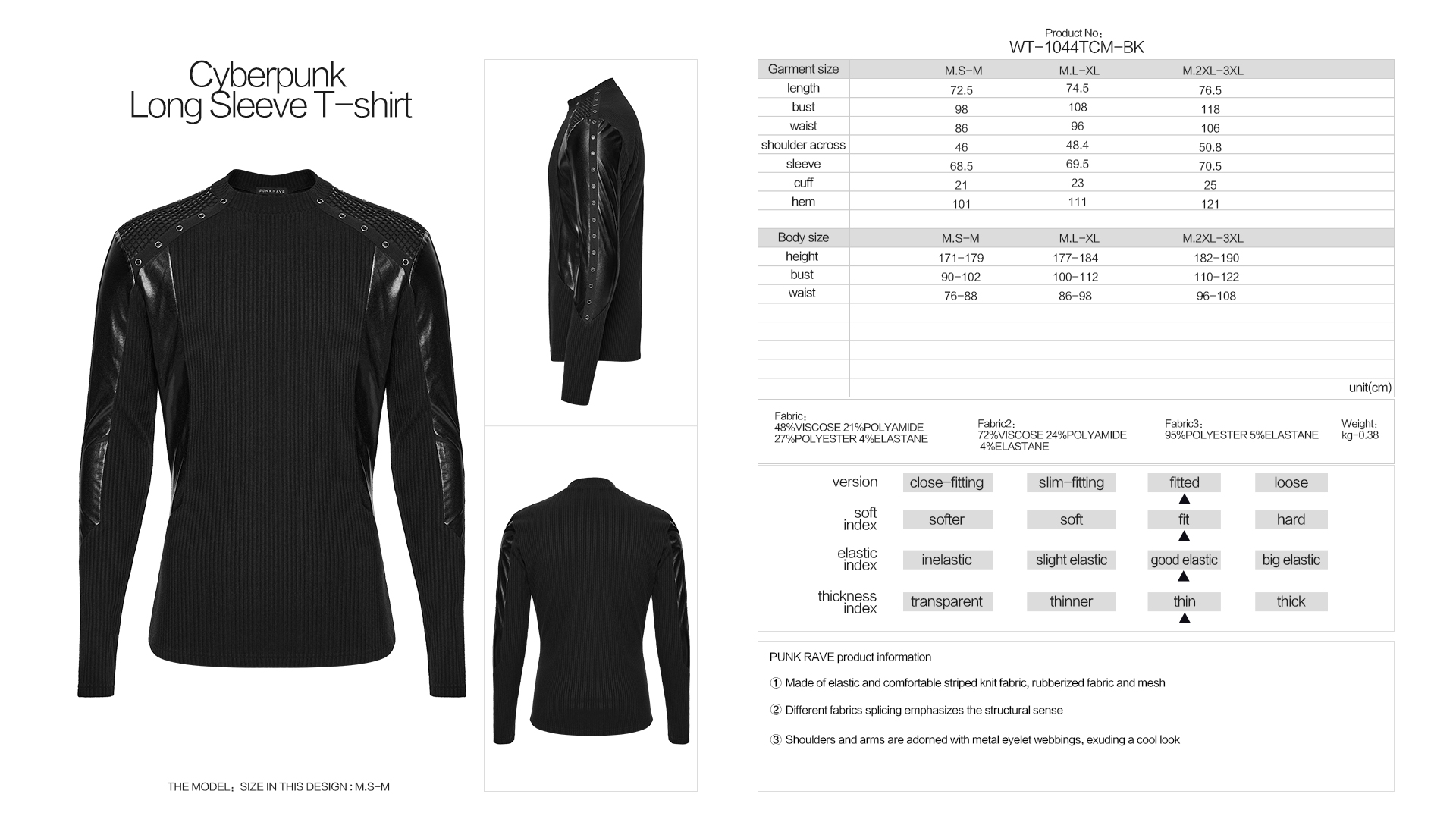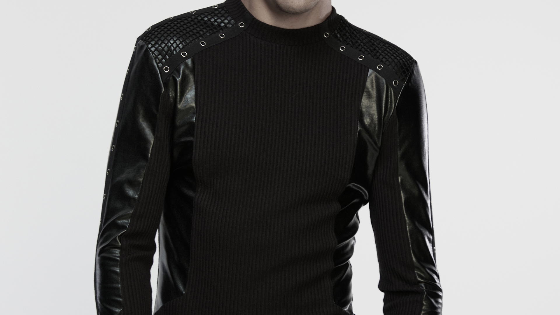 Shoulders and arms are adorned with metal eyelet webbings, exuding a cool look.