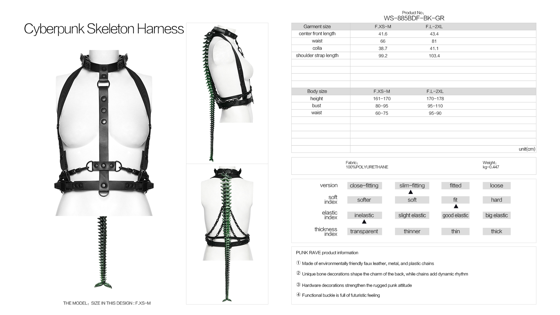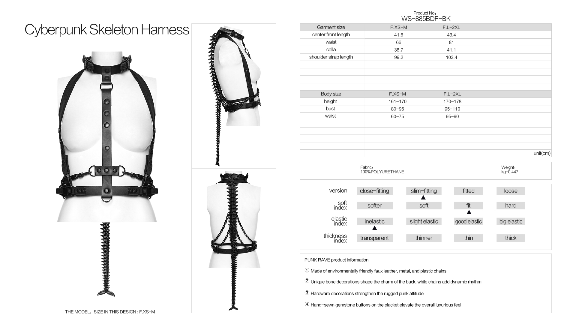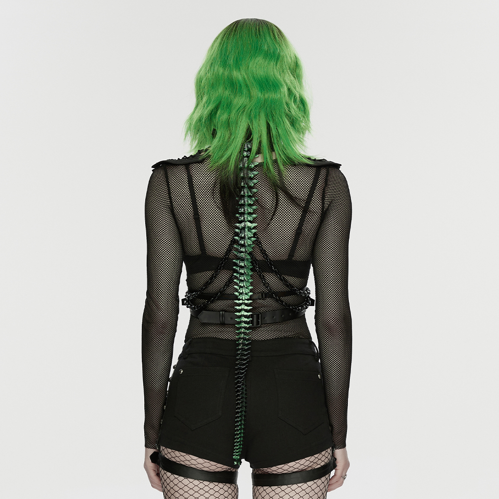 Unique bone decorations shape the charm of the back, while chains add dynamic rhythm.
