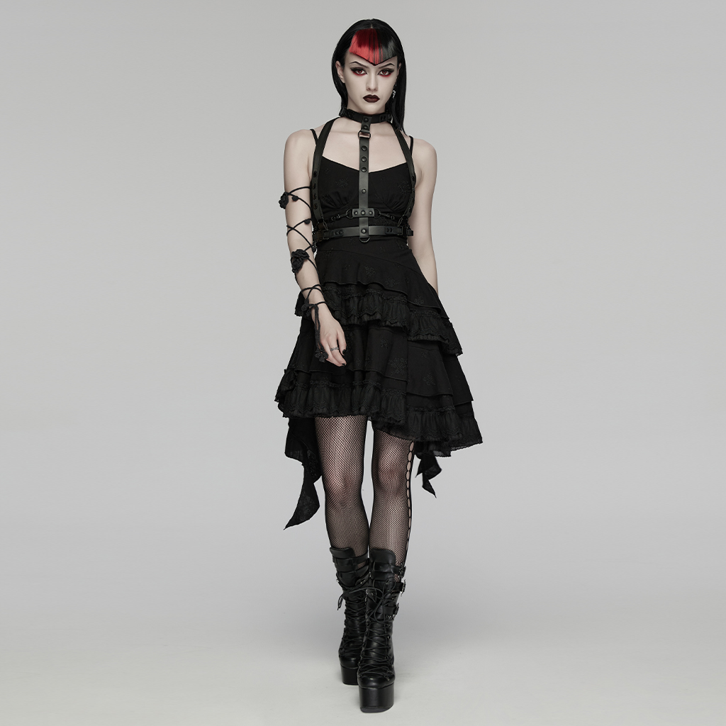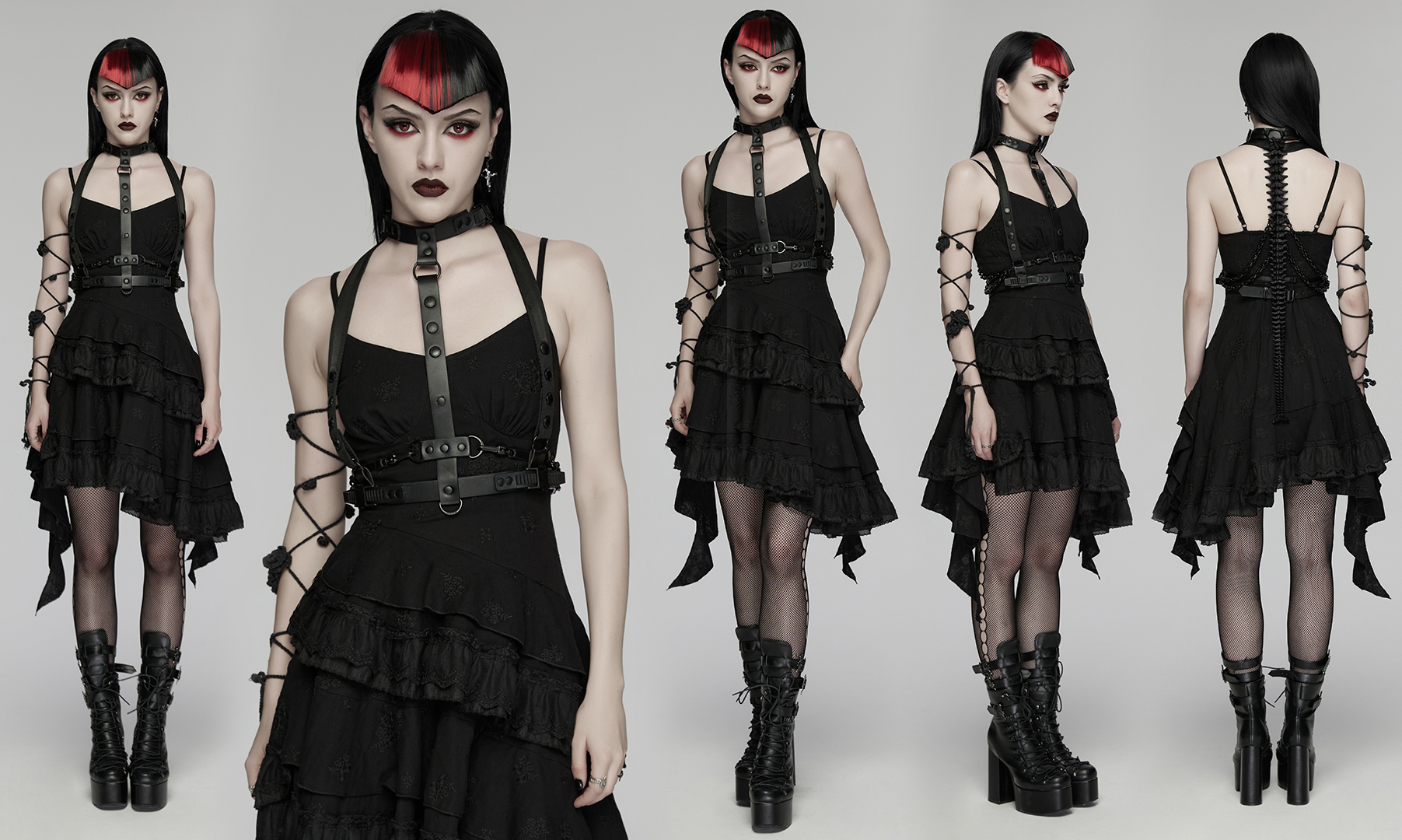 Hardware decorations strengthen the rugged punk attitude.