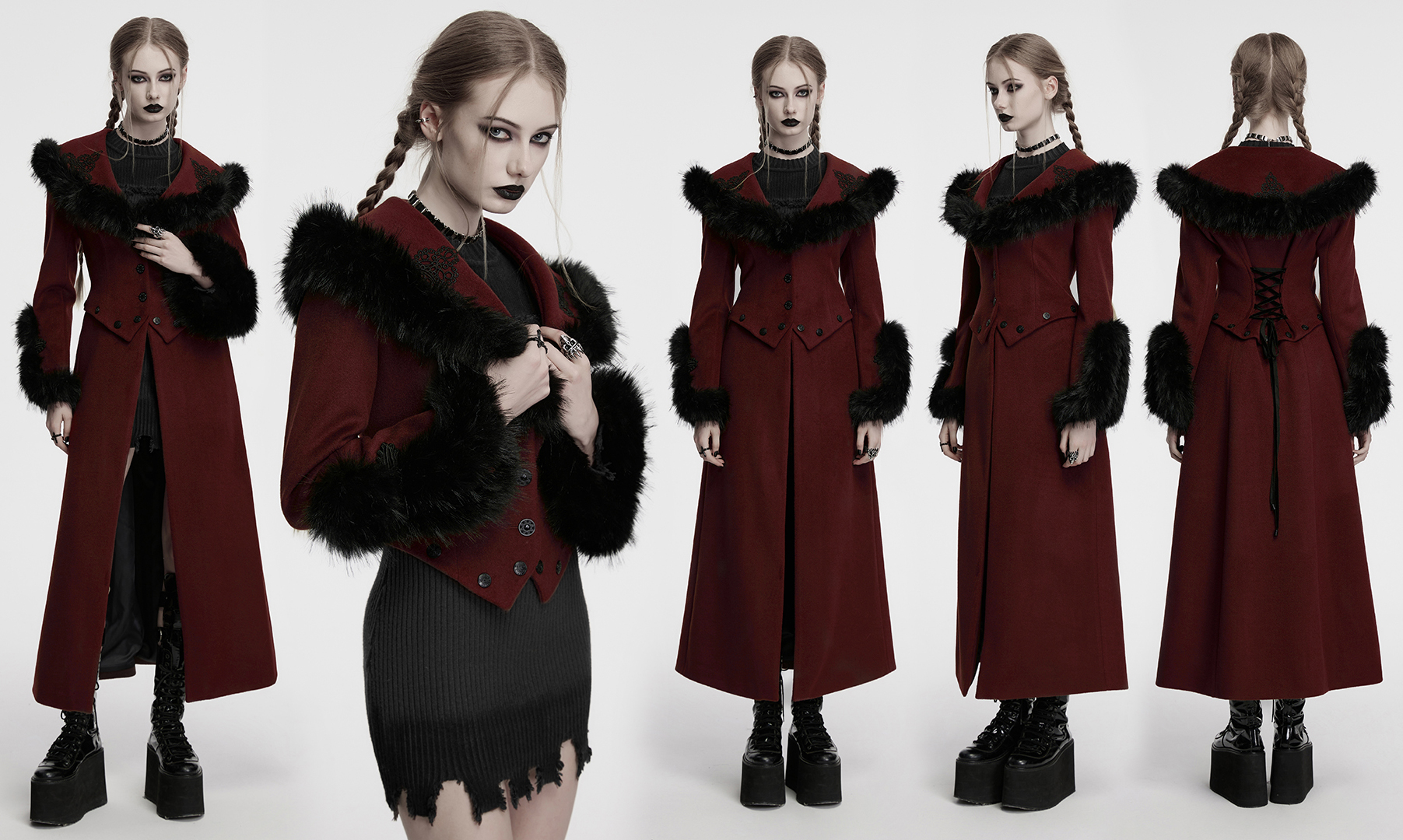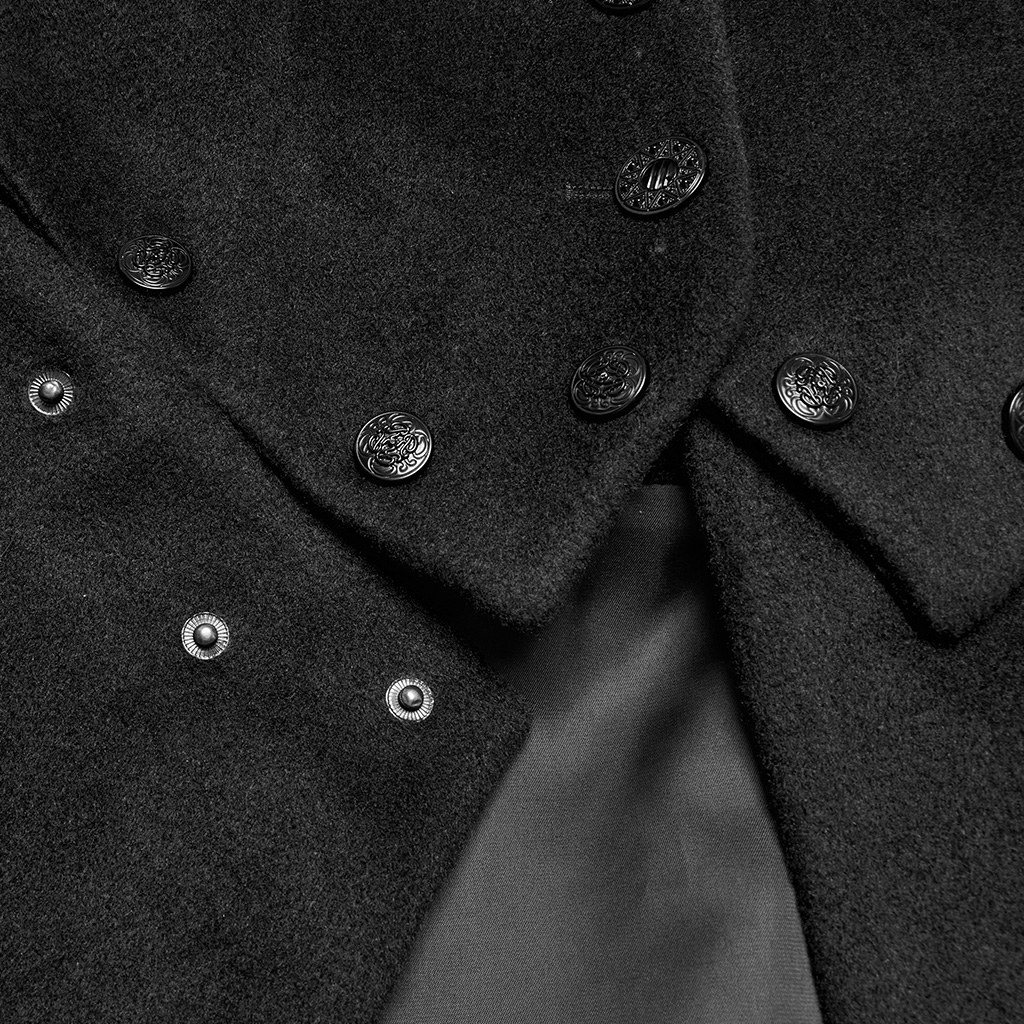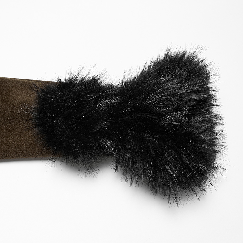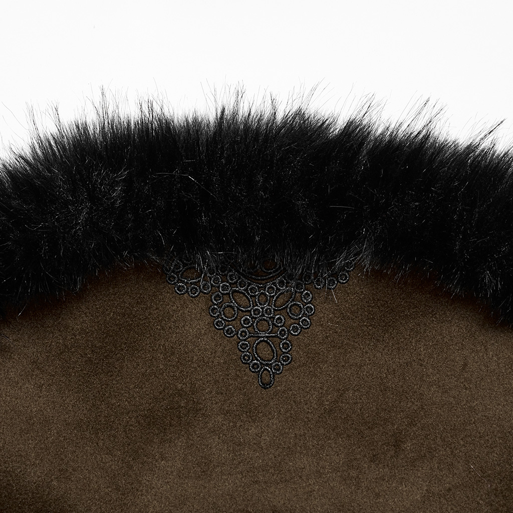 The U-shaped cuffs are treated with handmade buckles, adding a touch of retro gothic atmosphere.