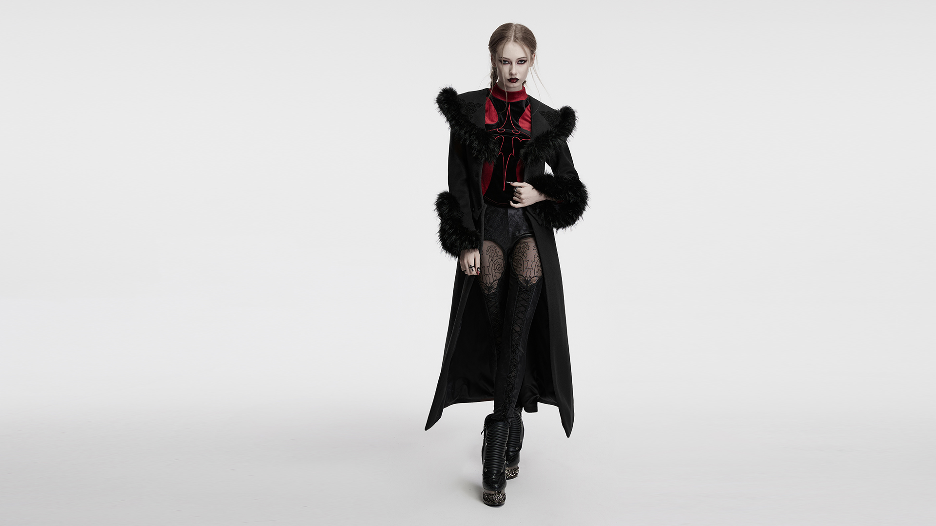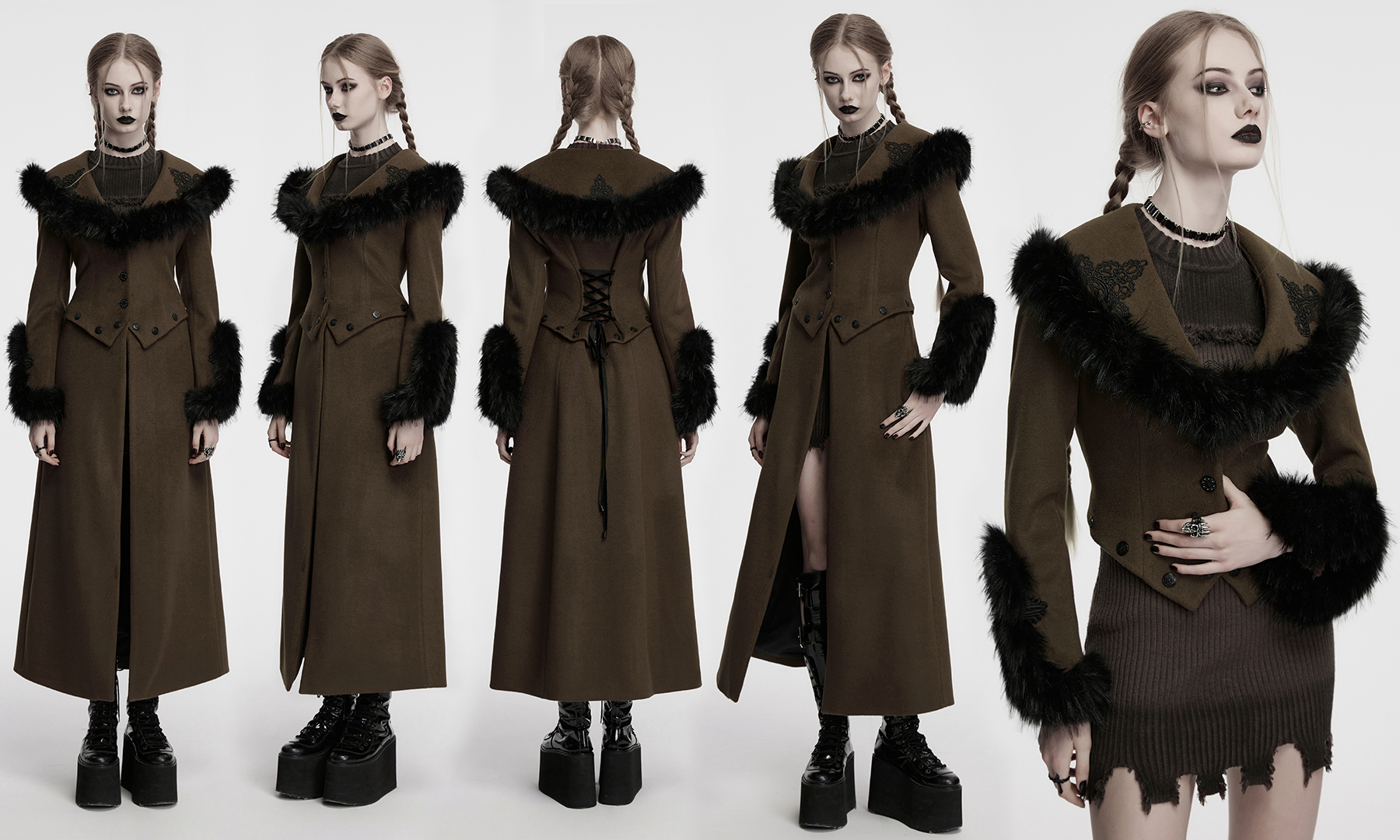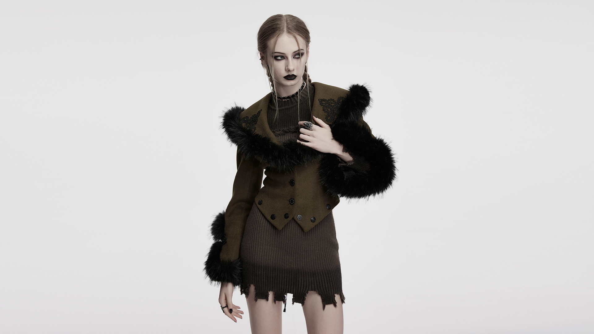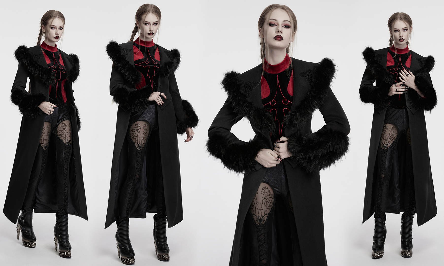 The U-shaped cuffs are treated with handmade buckles, adding a touch of retro gothic atmosphere.