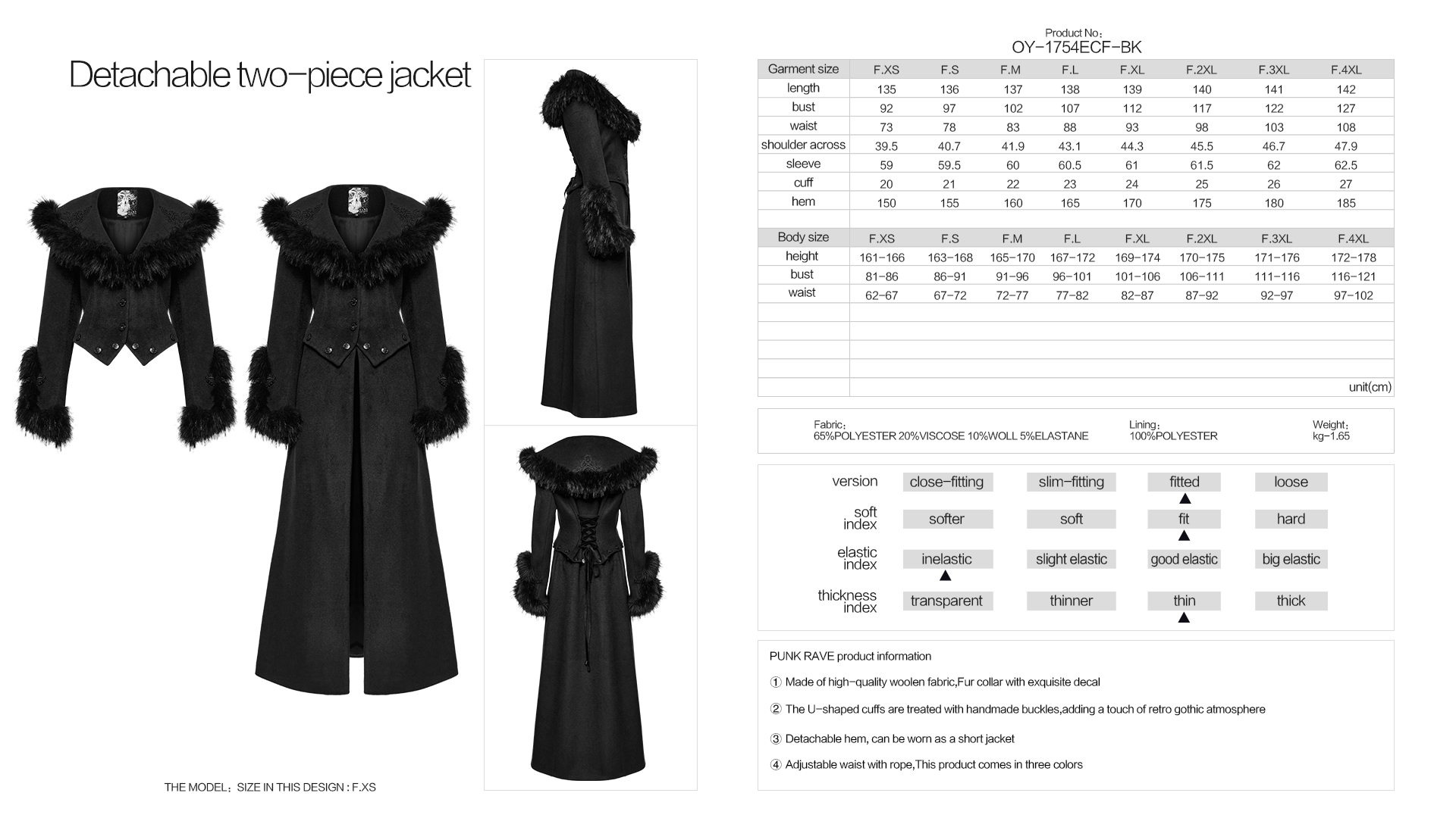 Detachable hem, can be worn as a short jacket.