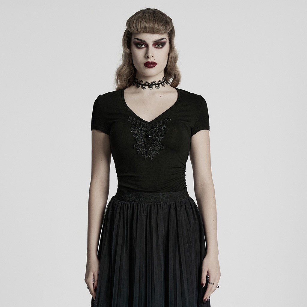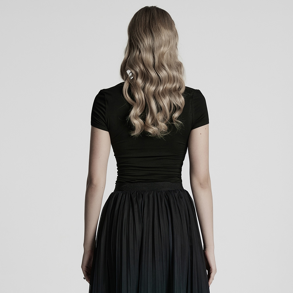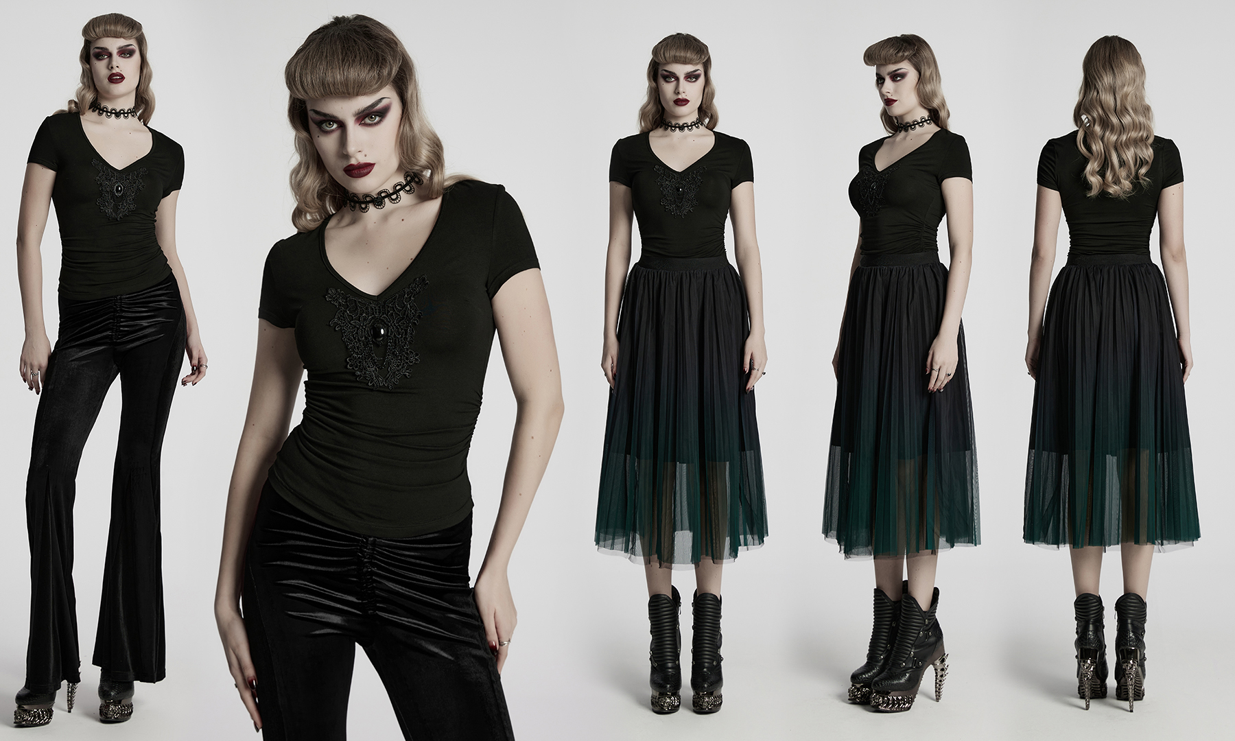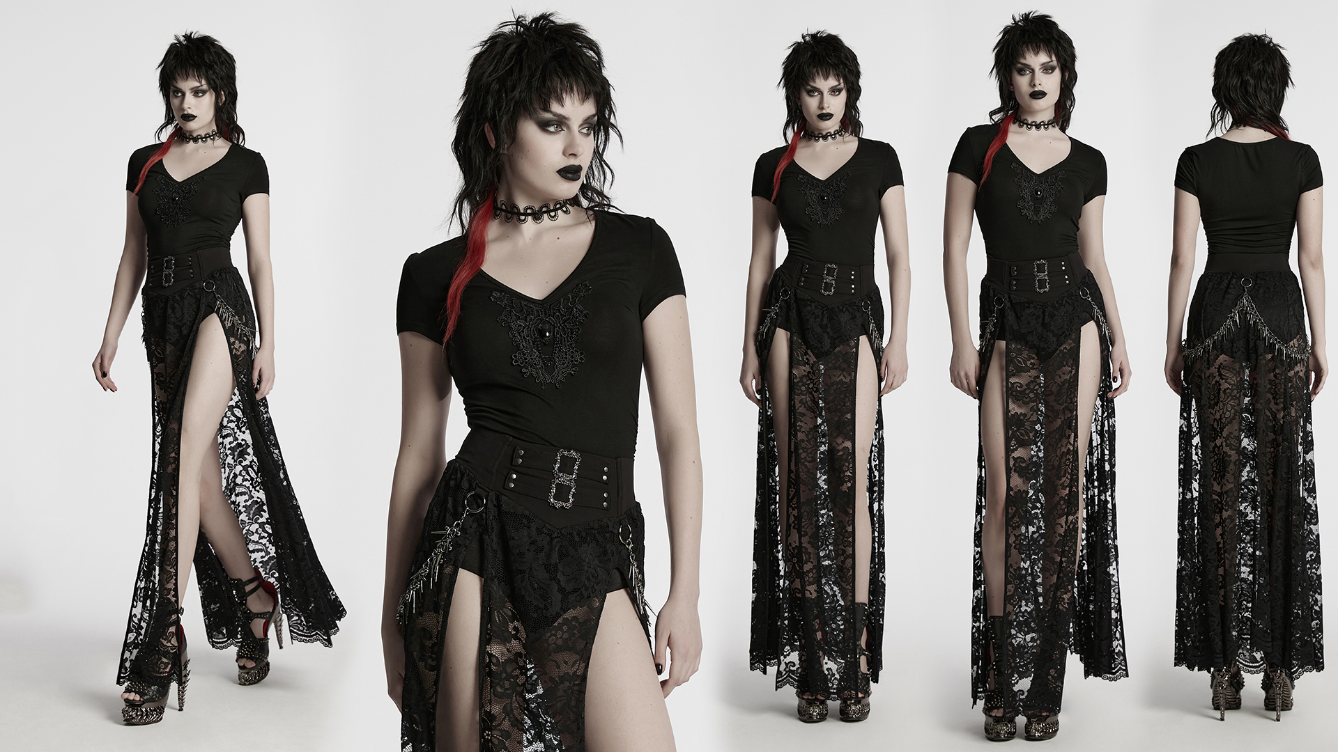 Exquisite decal on the chest, adorned with black gemstone chains.