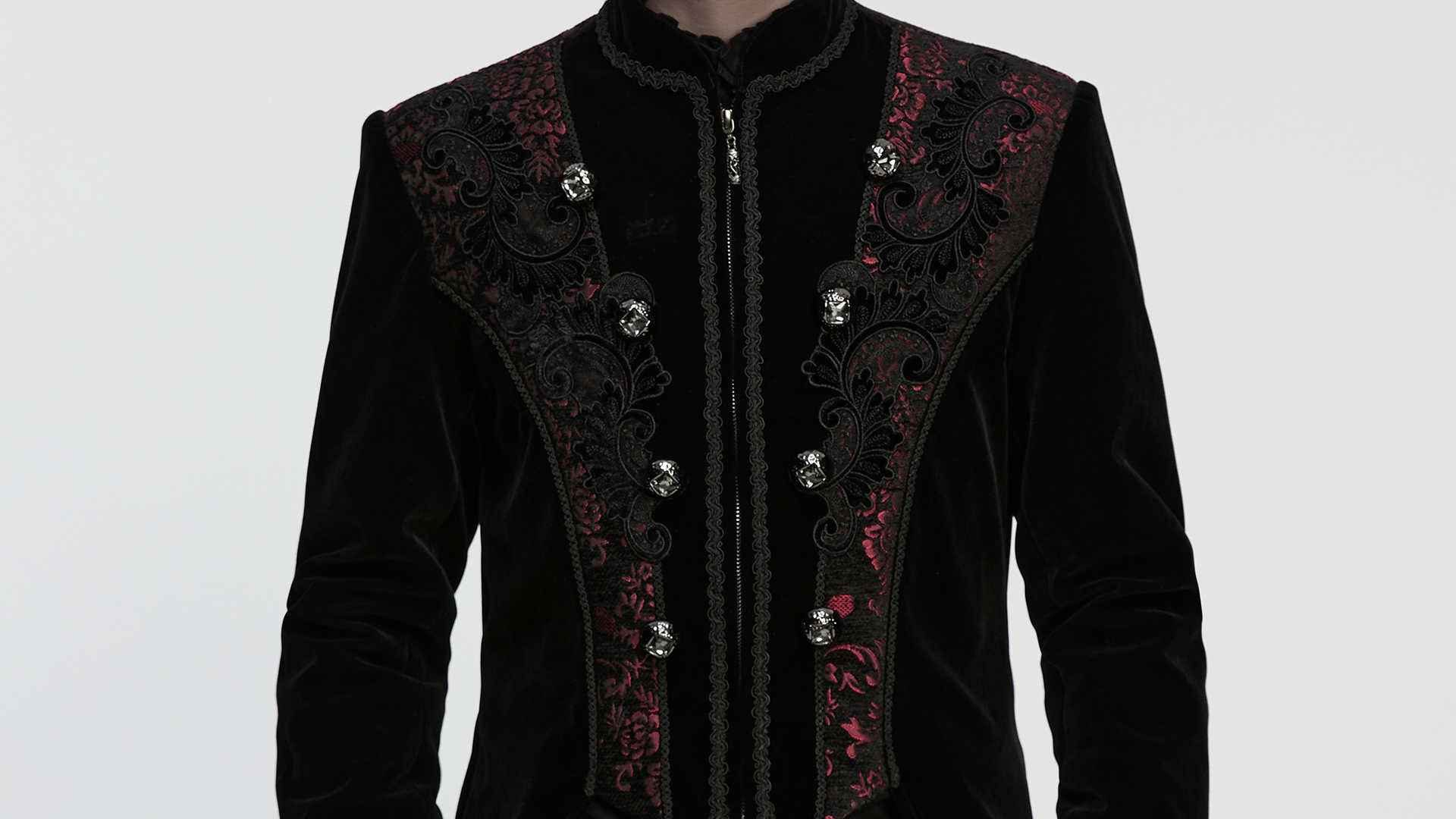 Palace embroidery on the chest enhances visual depth, while the edges and cuffs are adorned with webbings to add a elegant touch.