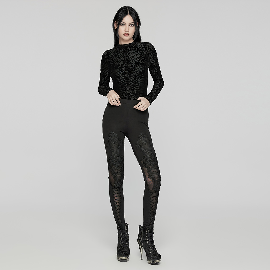 Knitted Mesh Goth Decal Leggings.