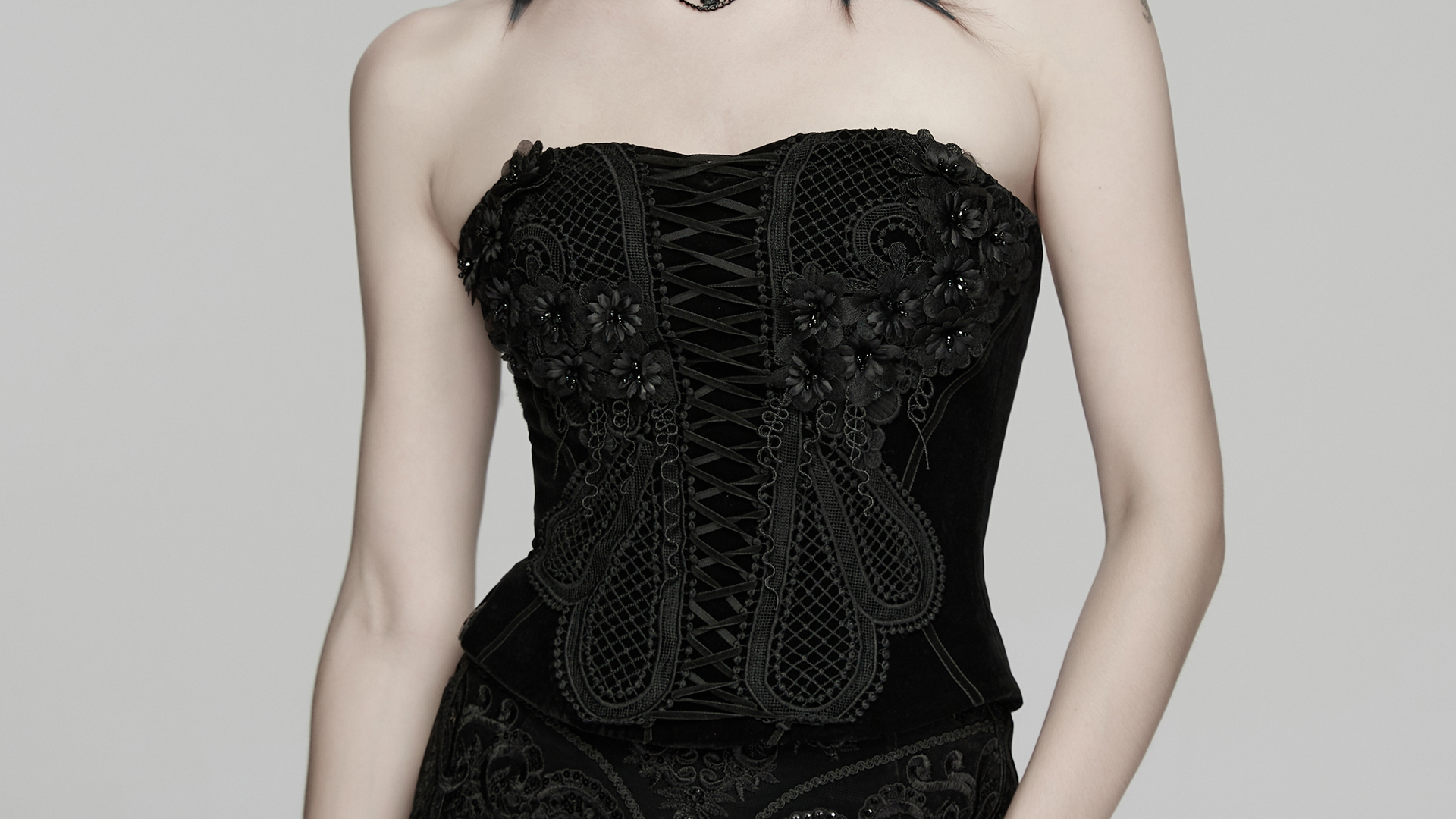 Mesh Goth Embroidered Corset.