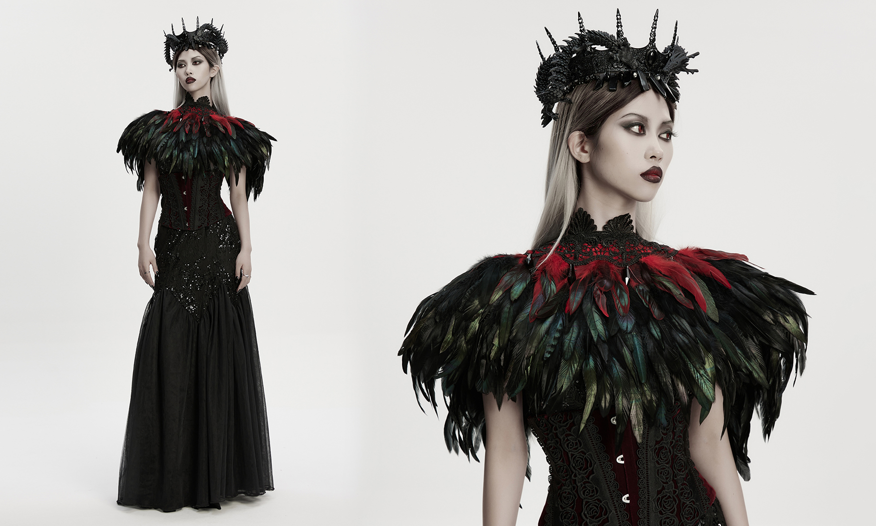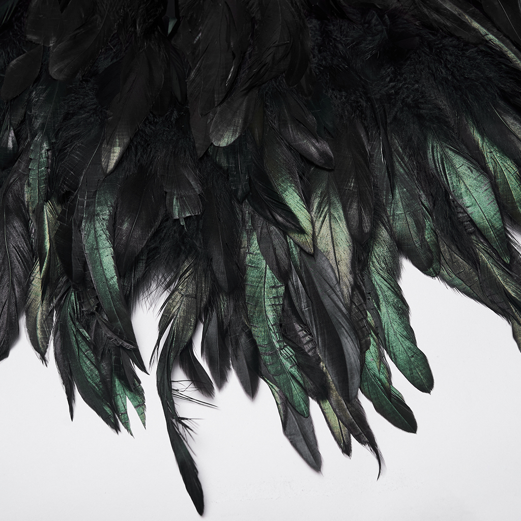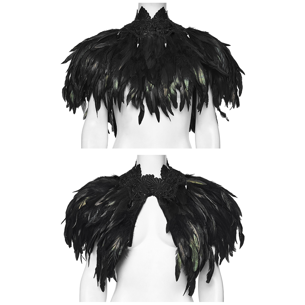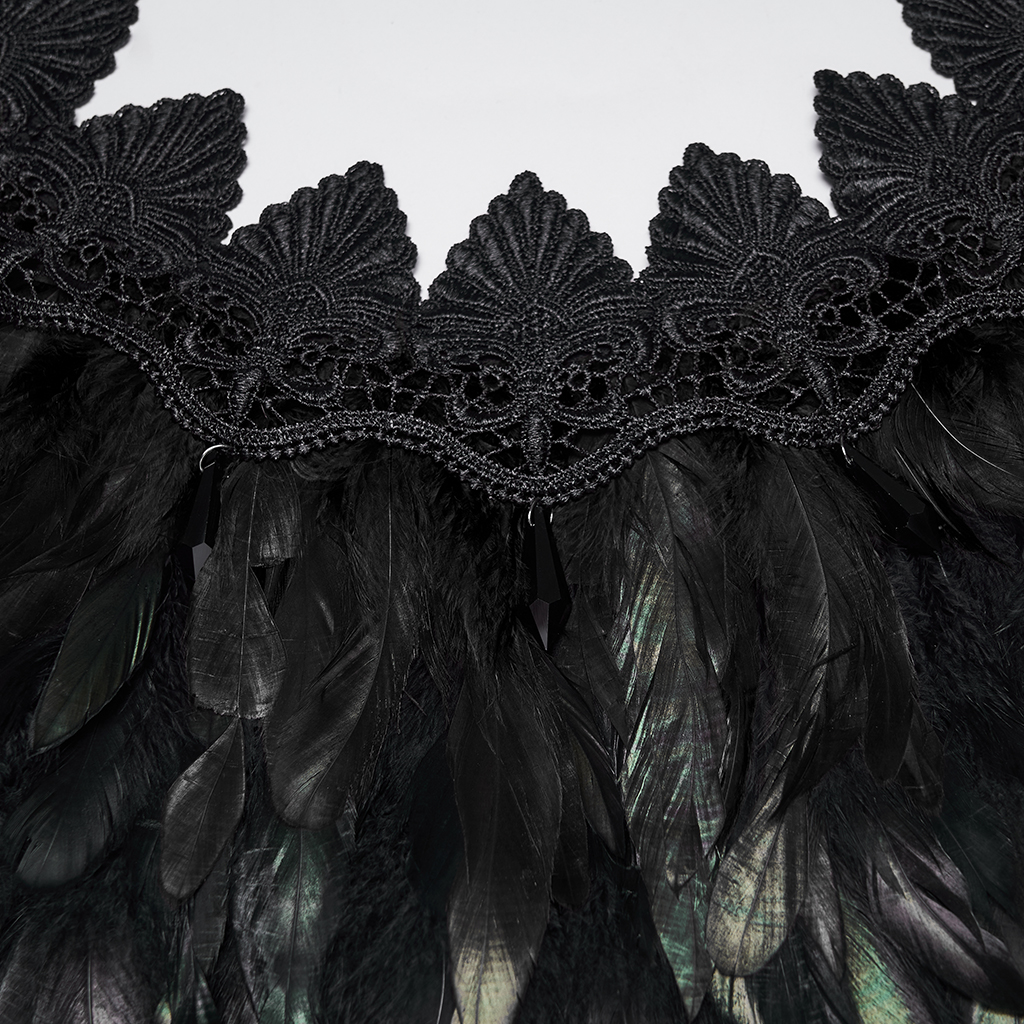 The combination of light feathers and delicate lace highlight the dual charm of nobility and