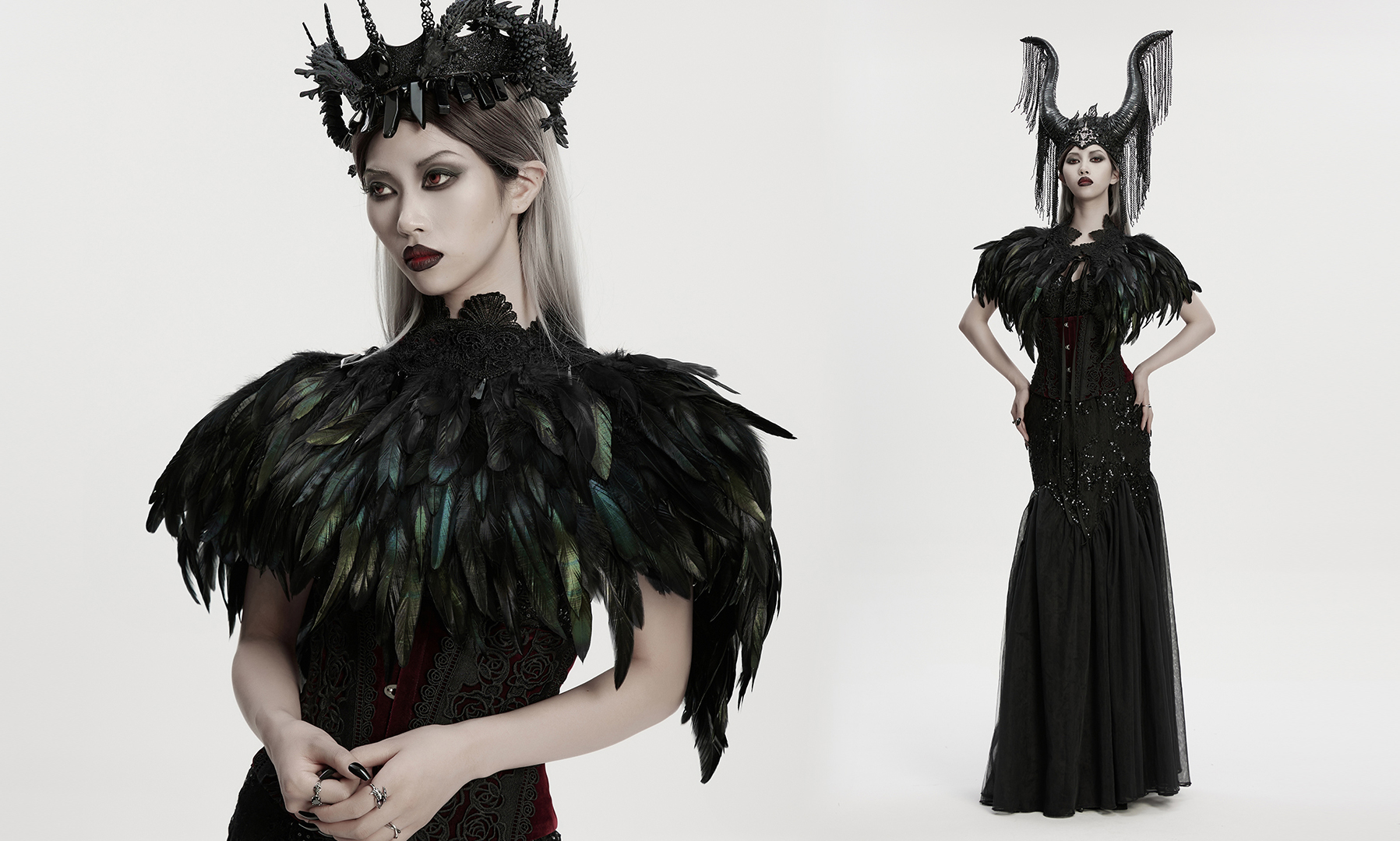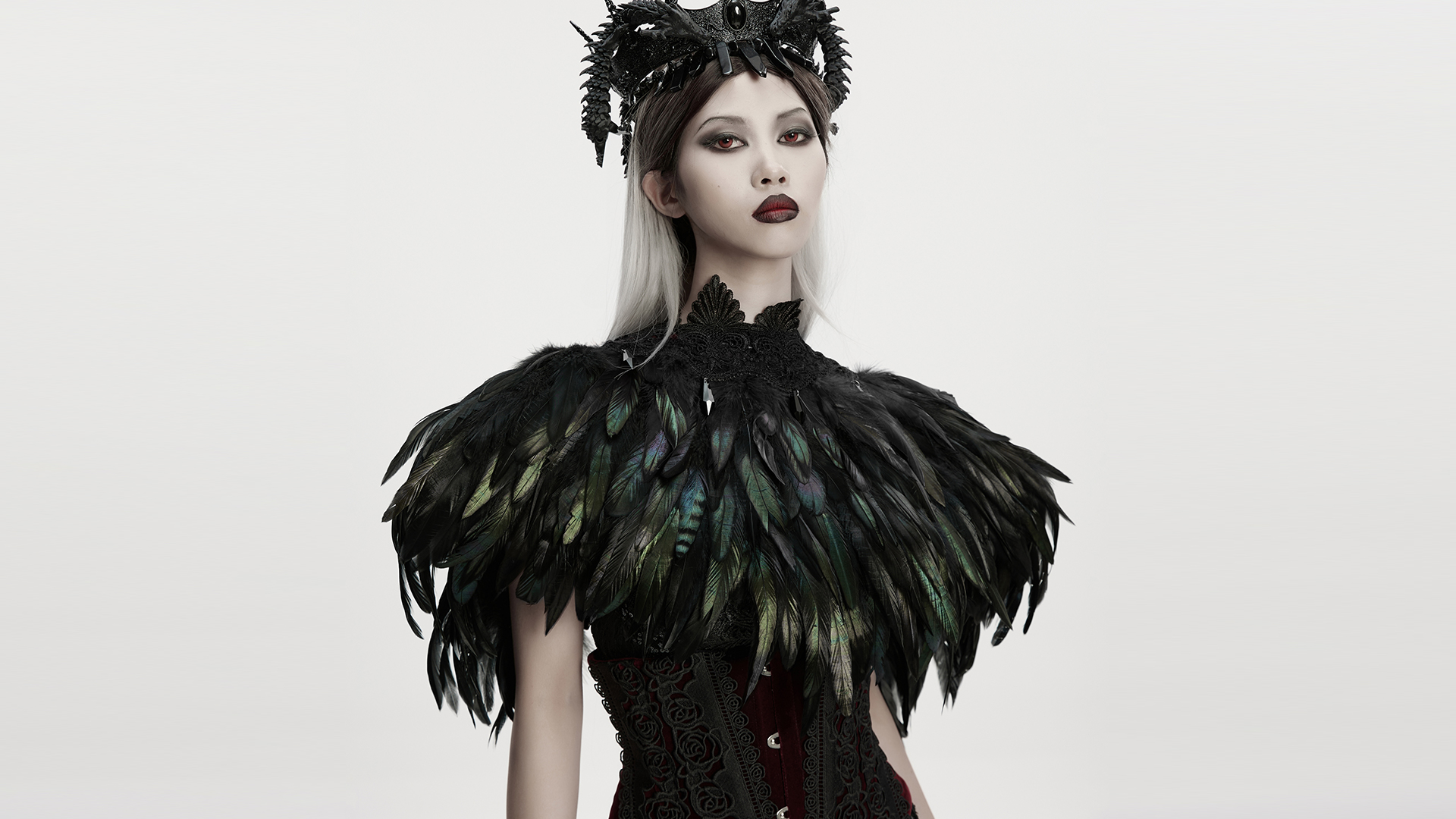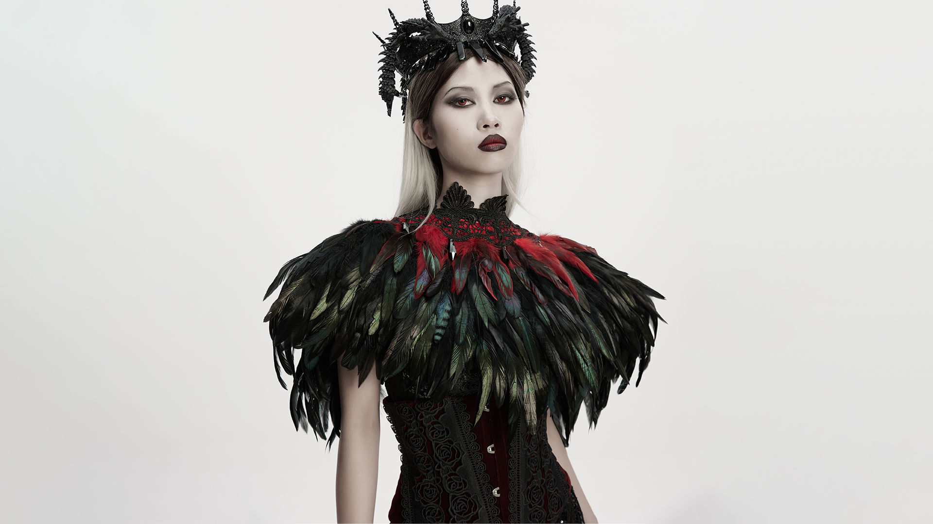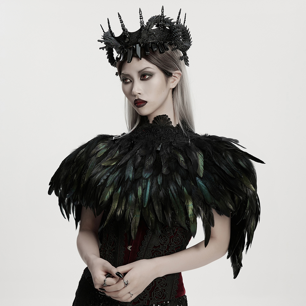 The combination of light feathers and delicate lace highlight the dual charm of nobility and