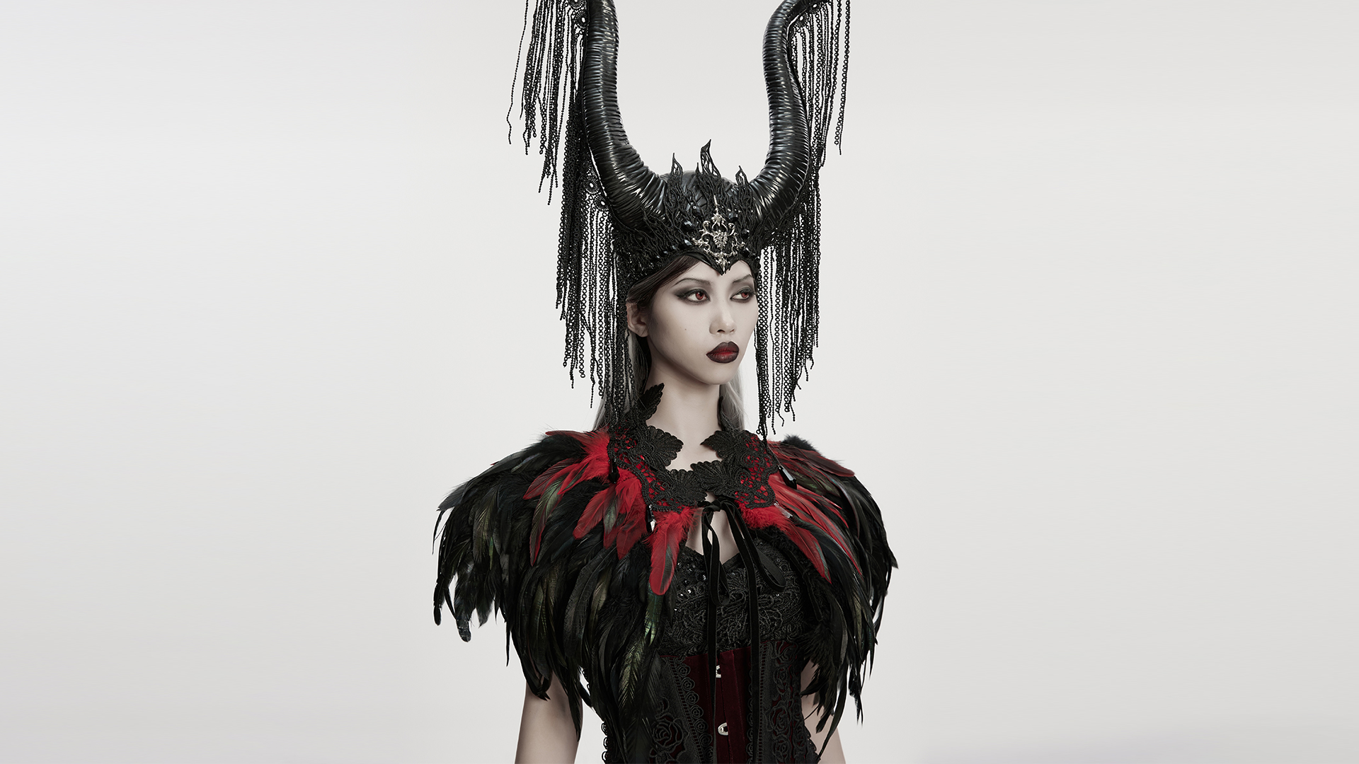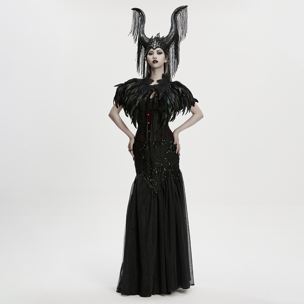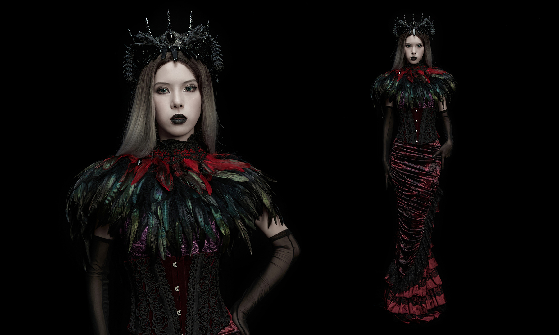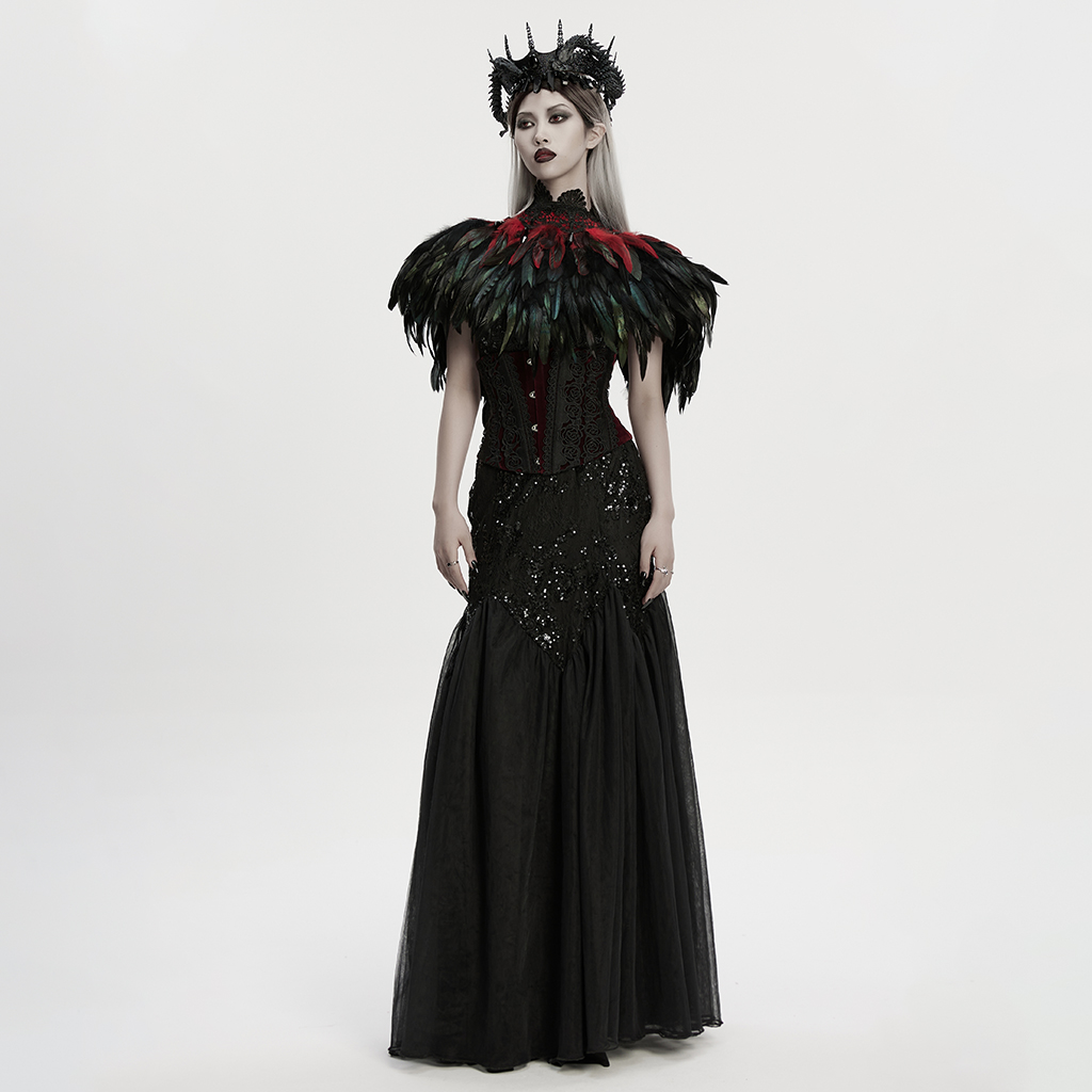 The combination of light feathers and delicate lace highlight the dual charm of nobility and