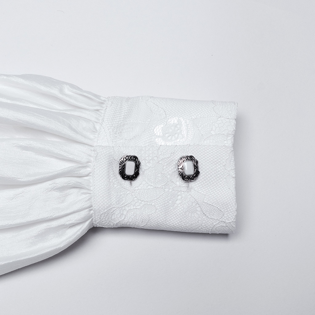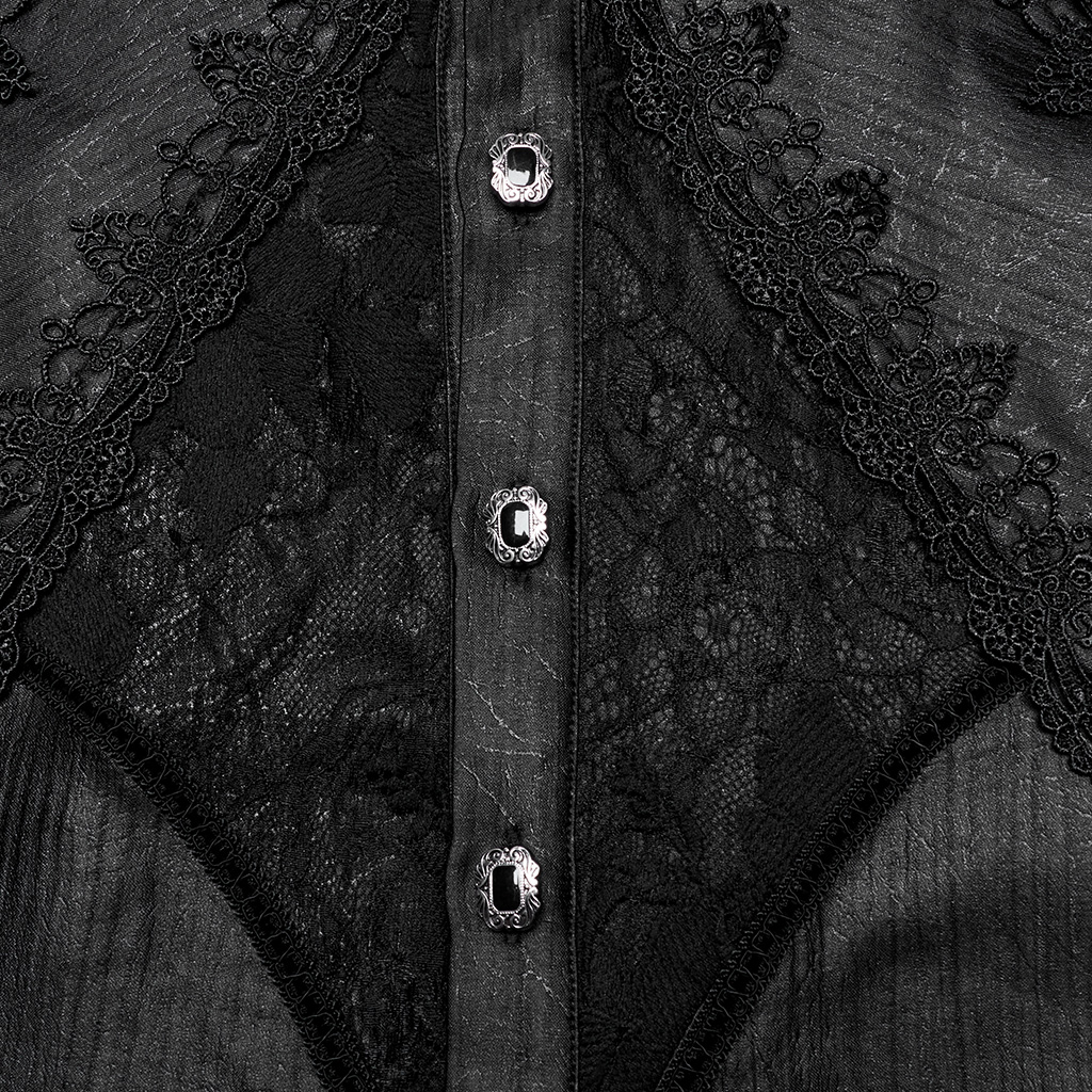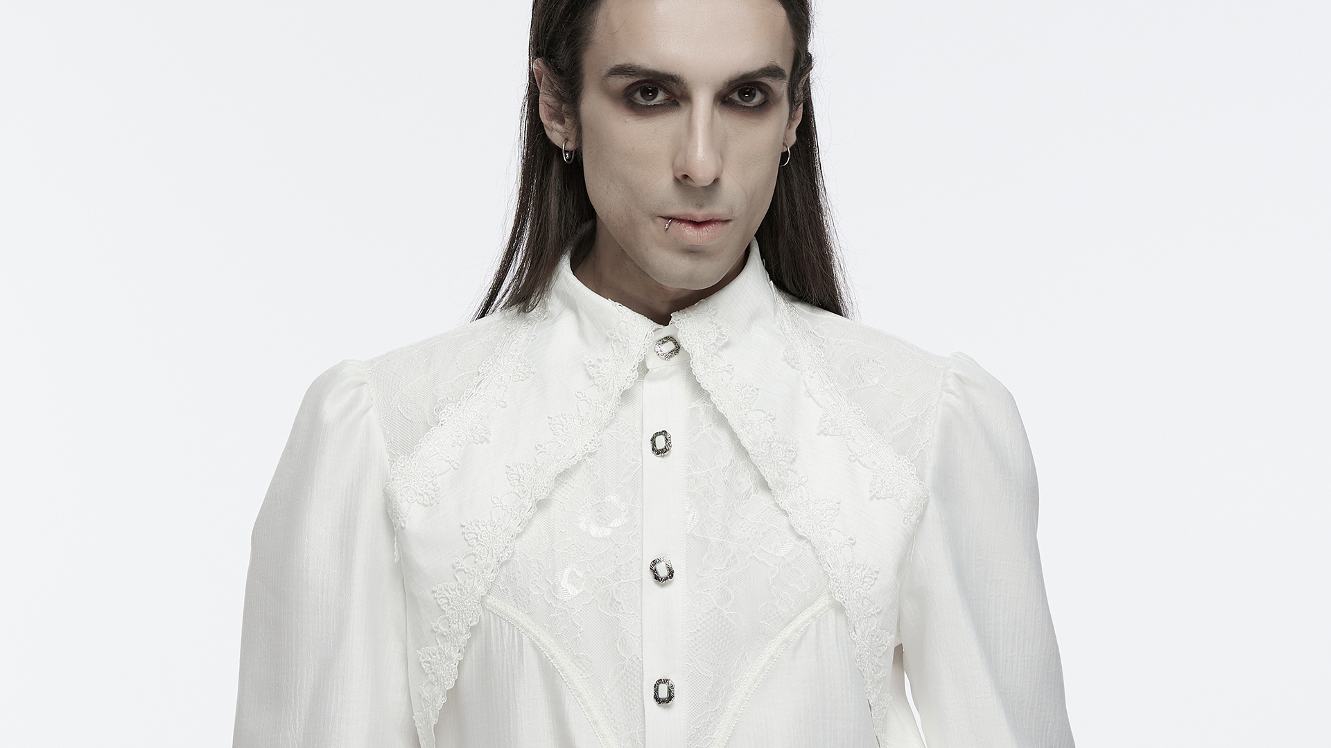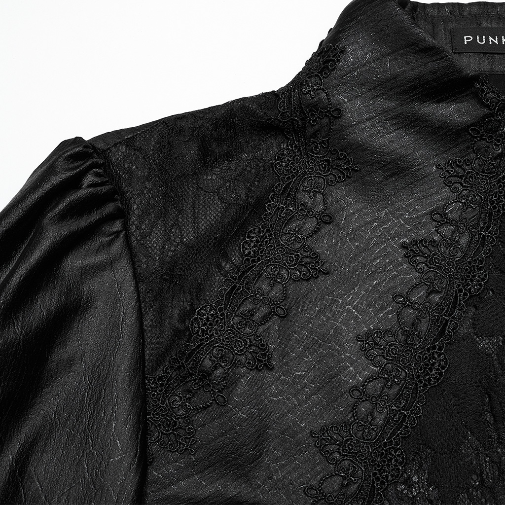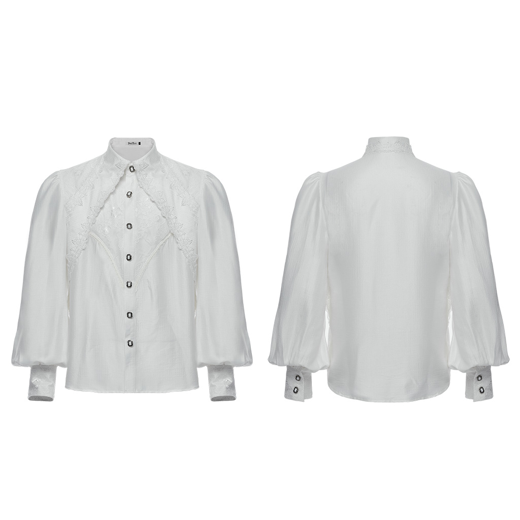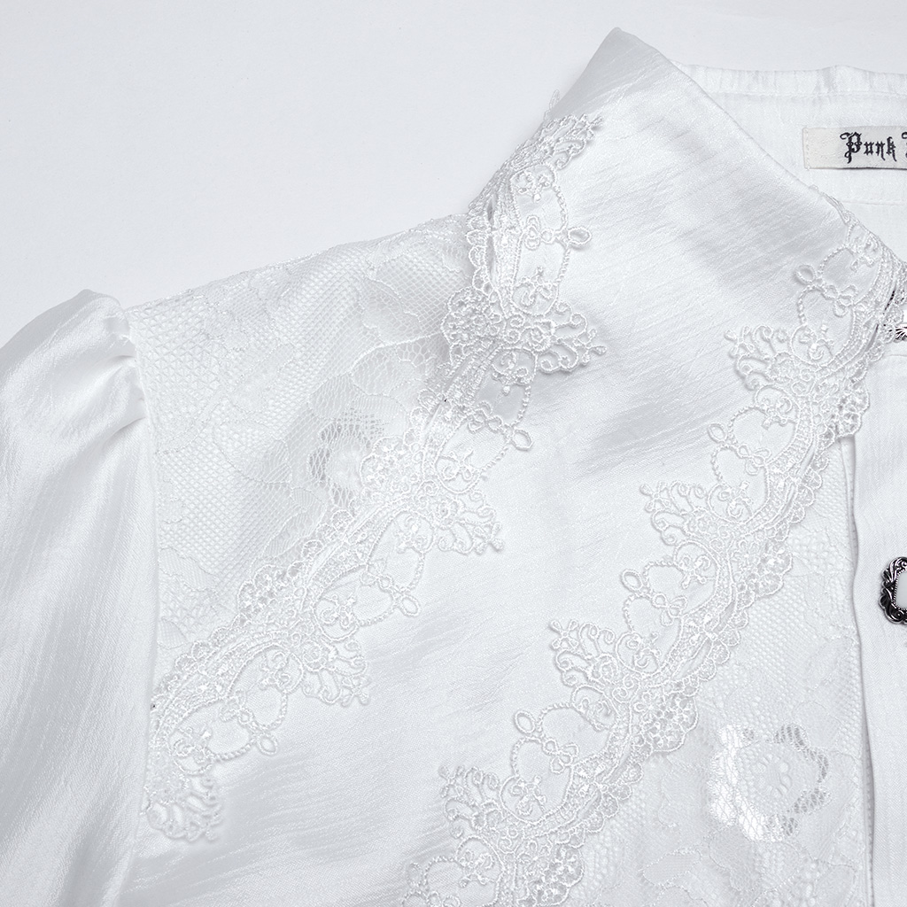 Elegant bubble sleeves, unique shirt collar decorated with Gothic lace along the edges, adding a sense of layered.