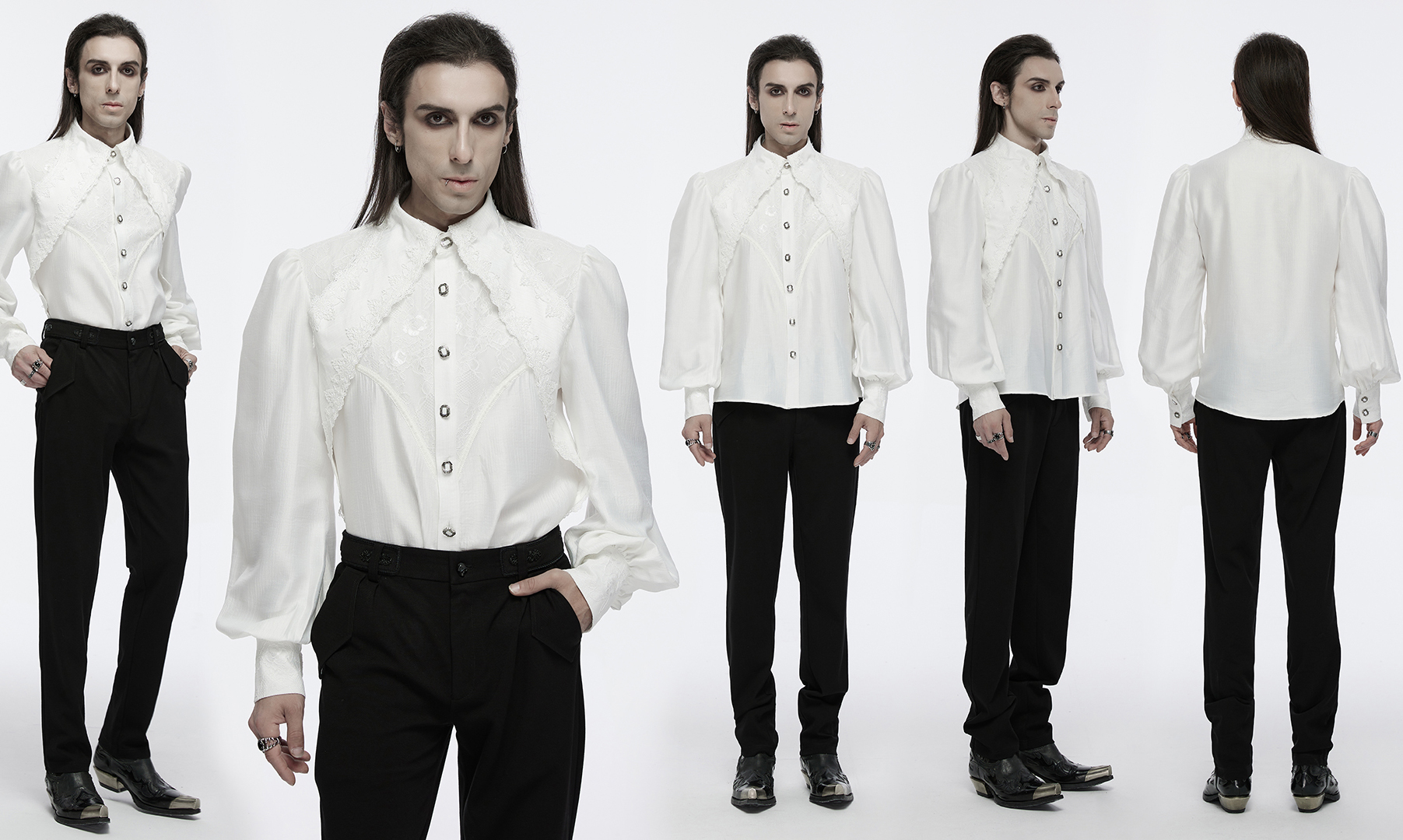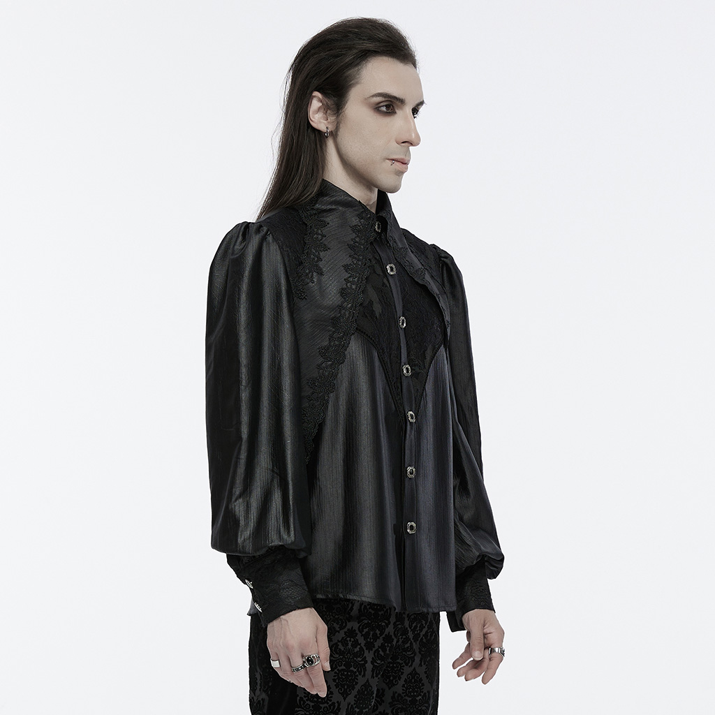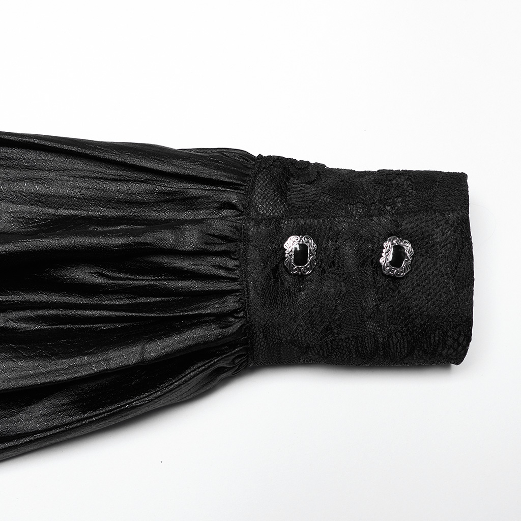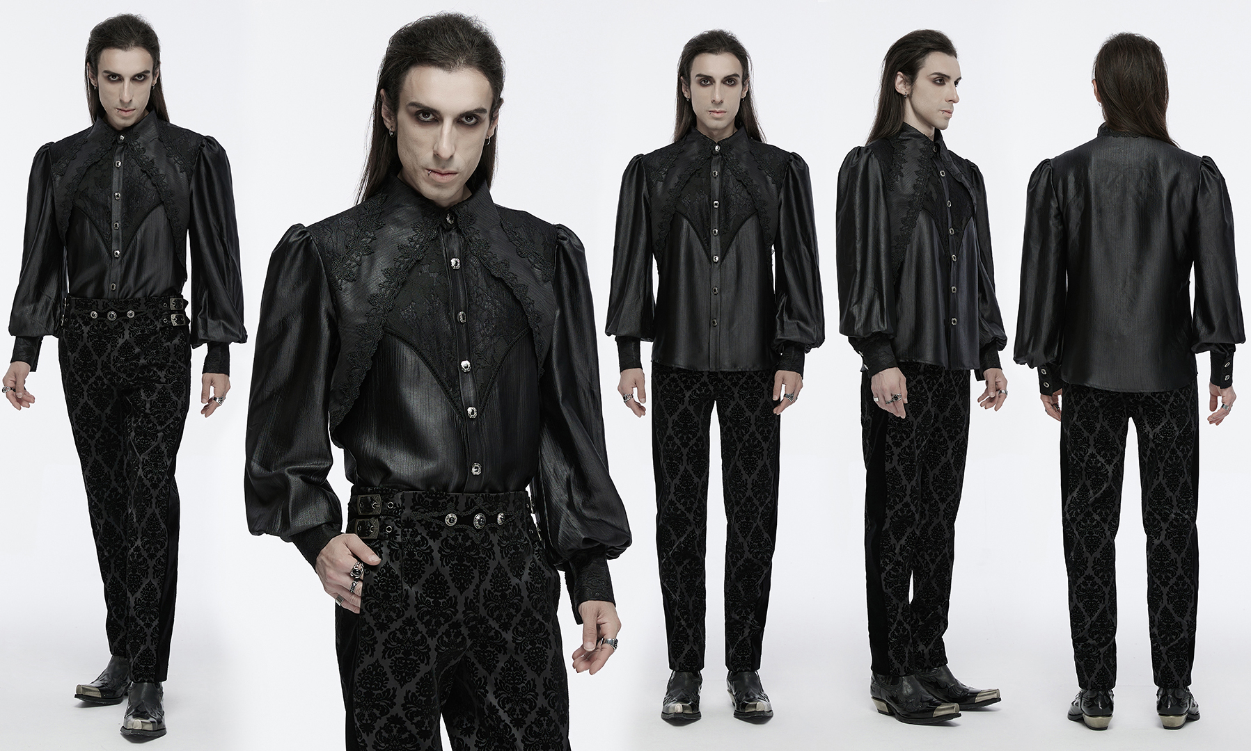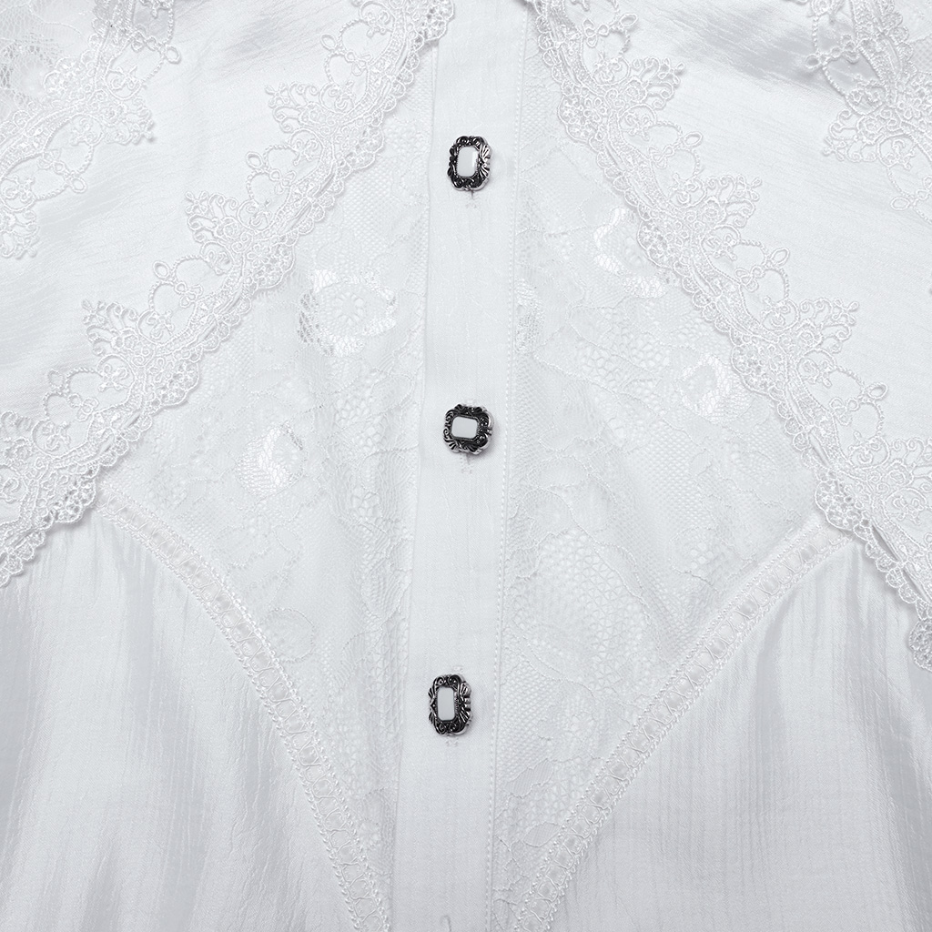 Elegant bubble sleeves, unique shirt collar decorated with Gothic lace along the edges, adding a sense of layered.