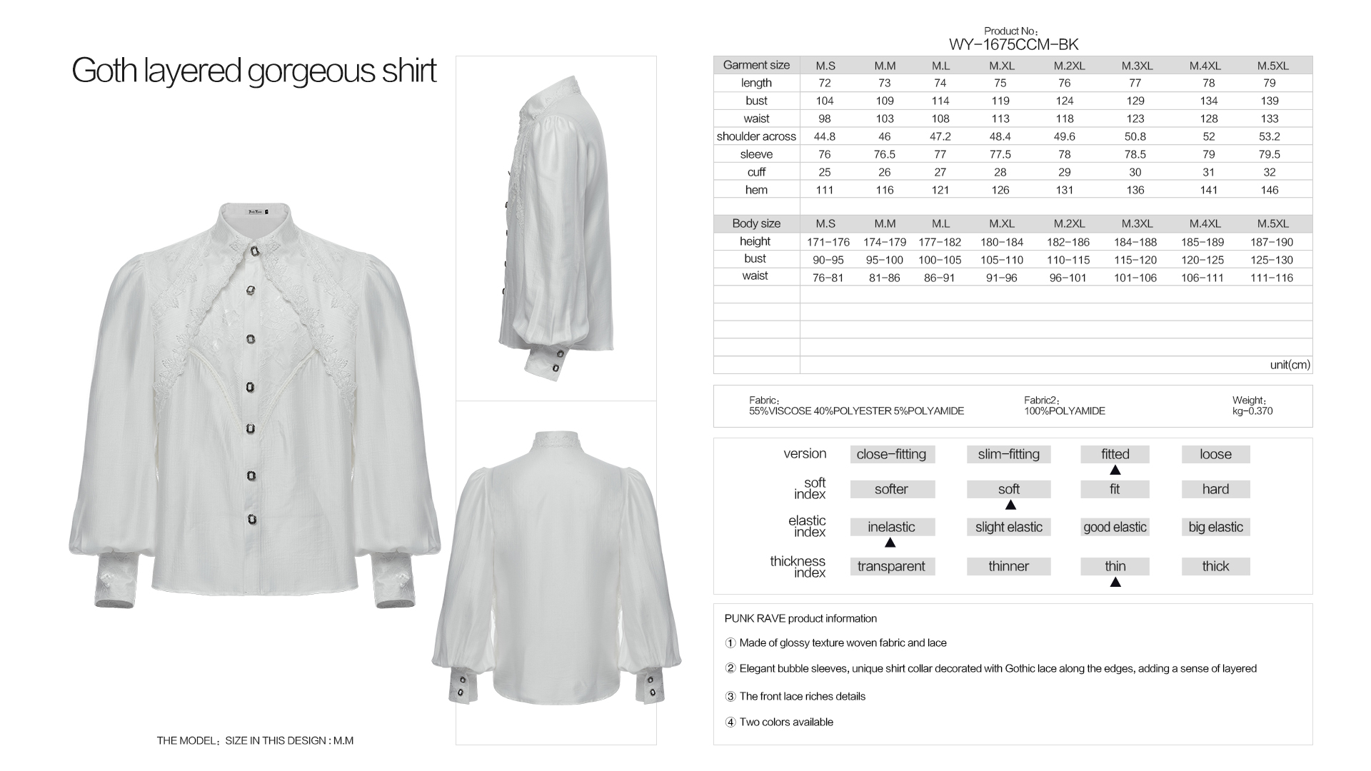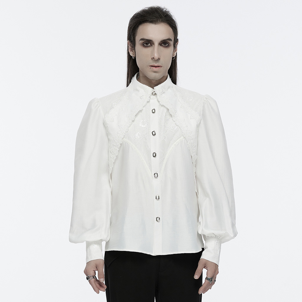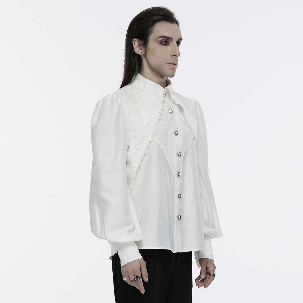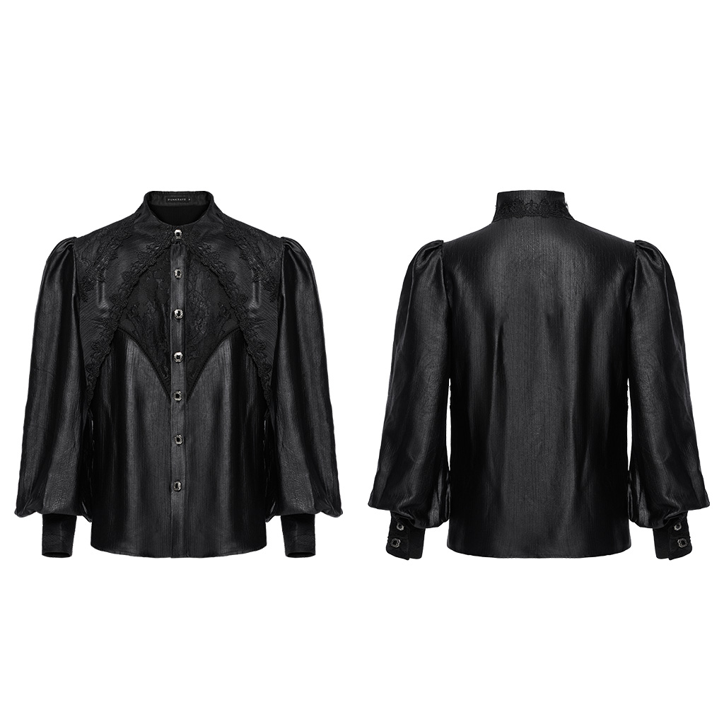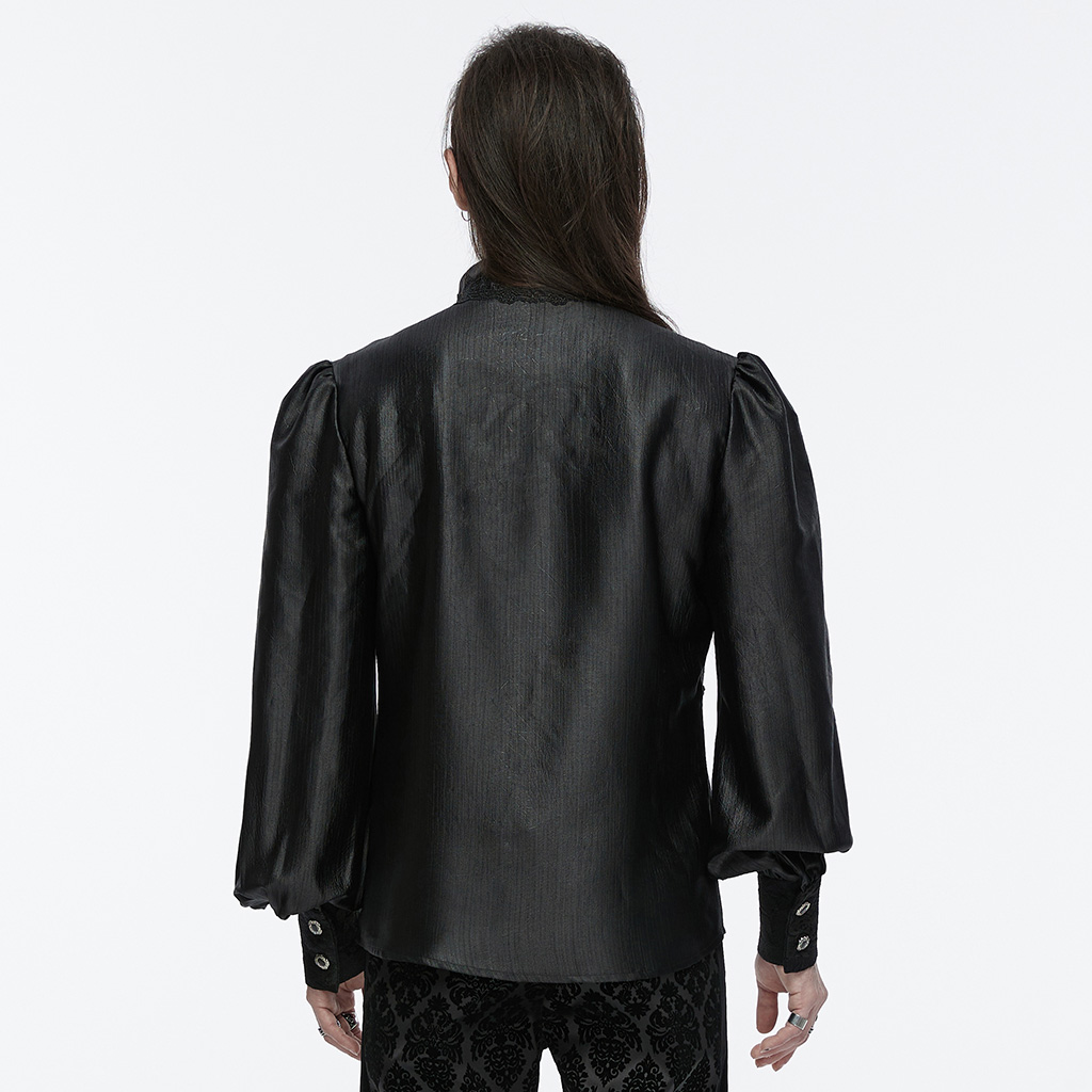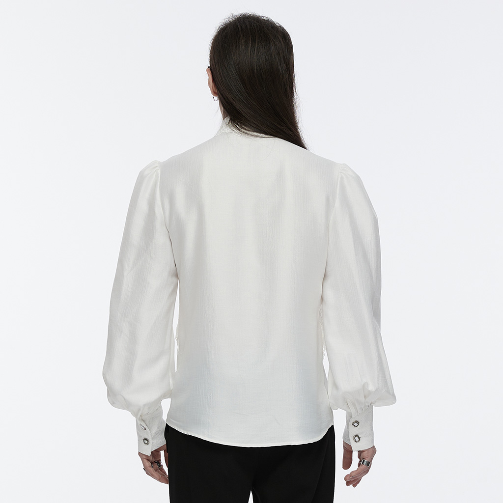 Elegant bubble sleeves, unique shirt collar decorated with Gothic lace along the edges, adding a sense of layered.