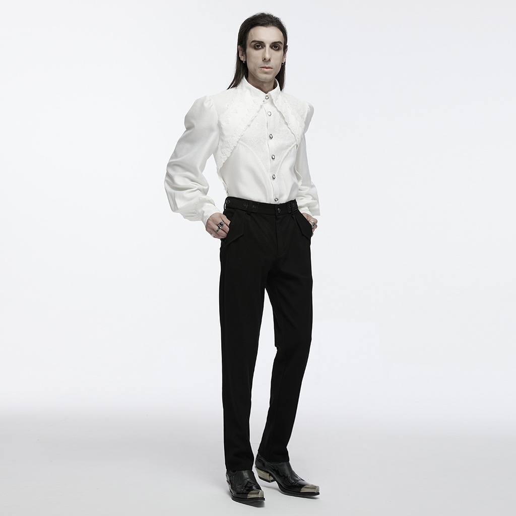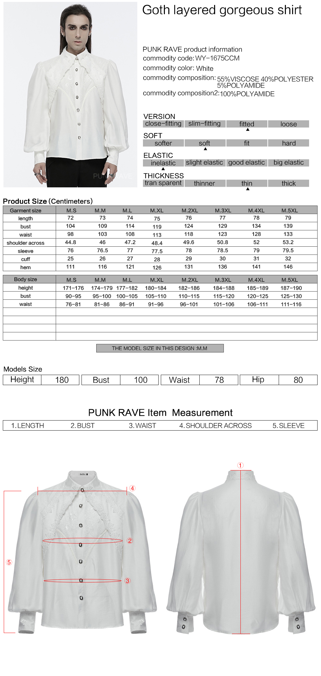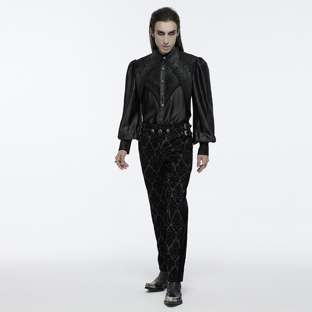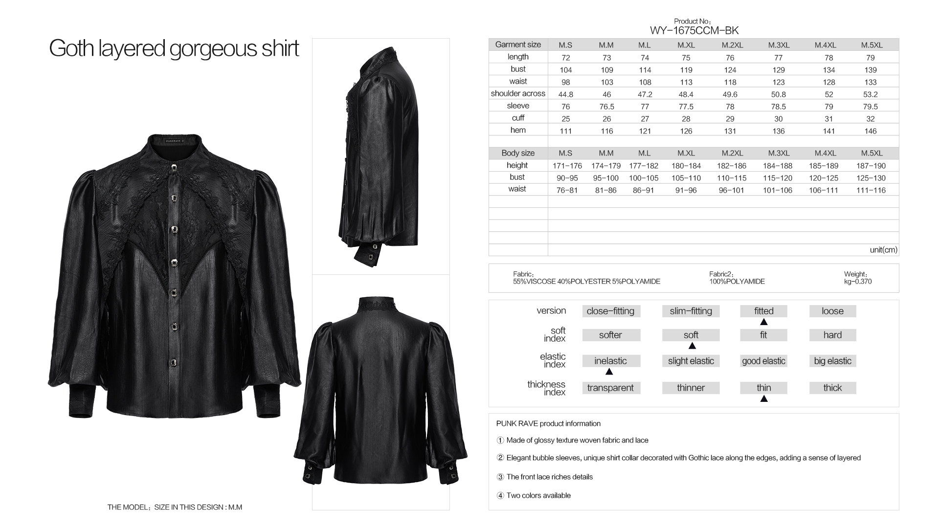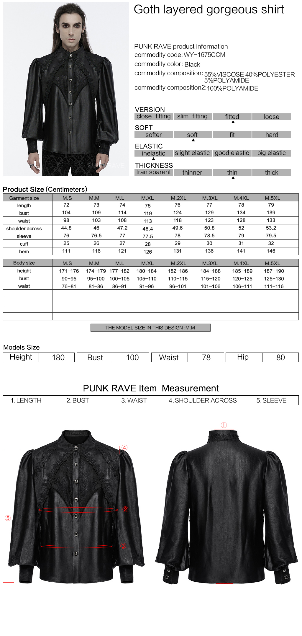 Elegant bubble sleeves, unique shirt collar decorated with Gothic lace along the edges, adding a sense of layered.