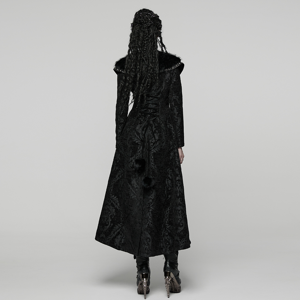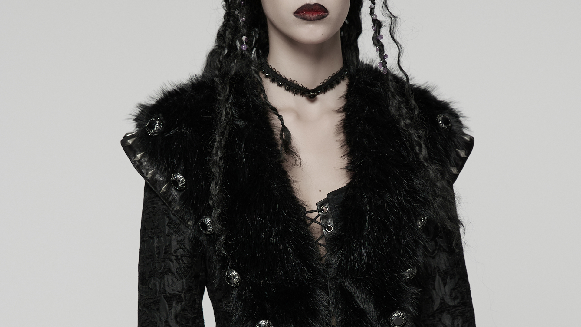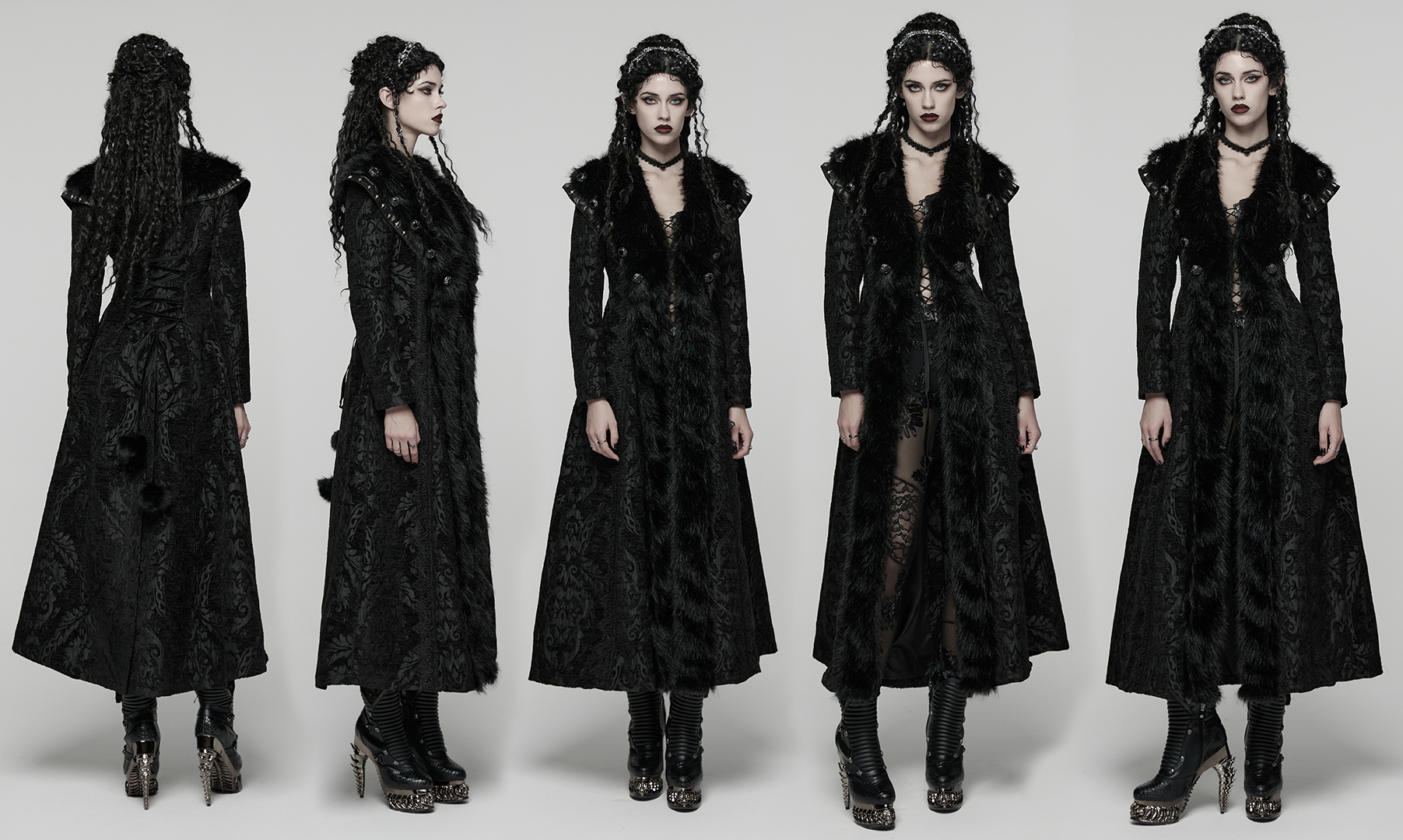 Elegant cinching-waist with plush integrated collar creates a 3D effect.