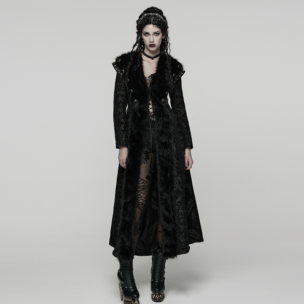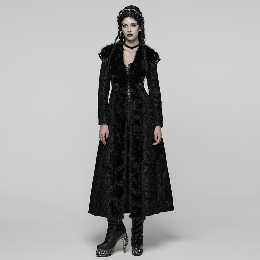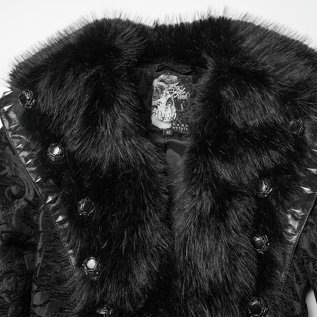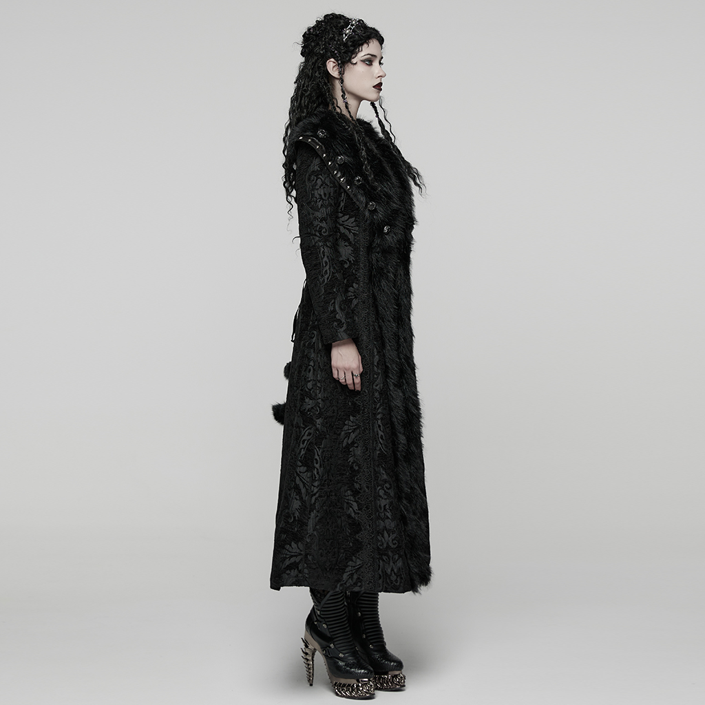 Elegant cinching-waist with plush integrated collar creates a 3D effect.