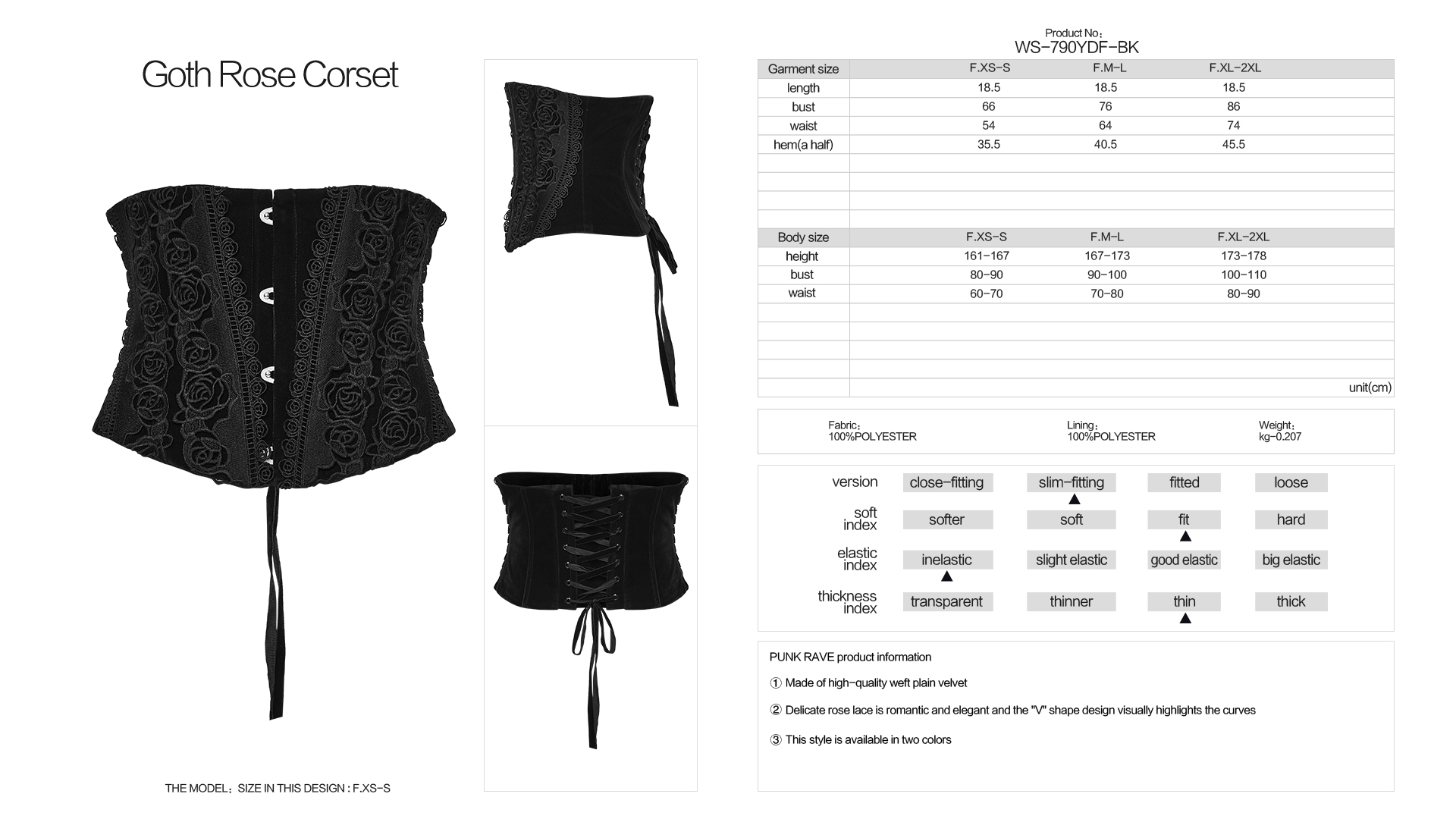 Delicate rose lace is romantic and elegant and the “V” shape design visually highlights the curves.