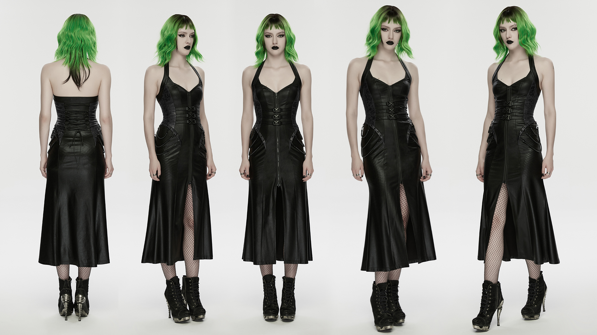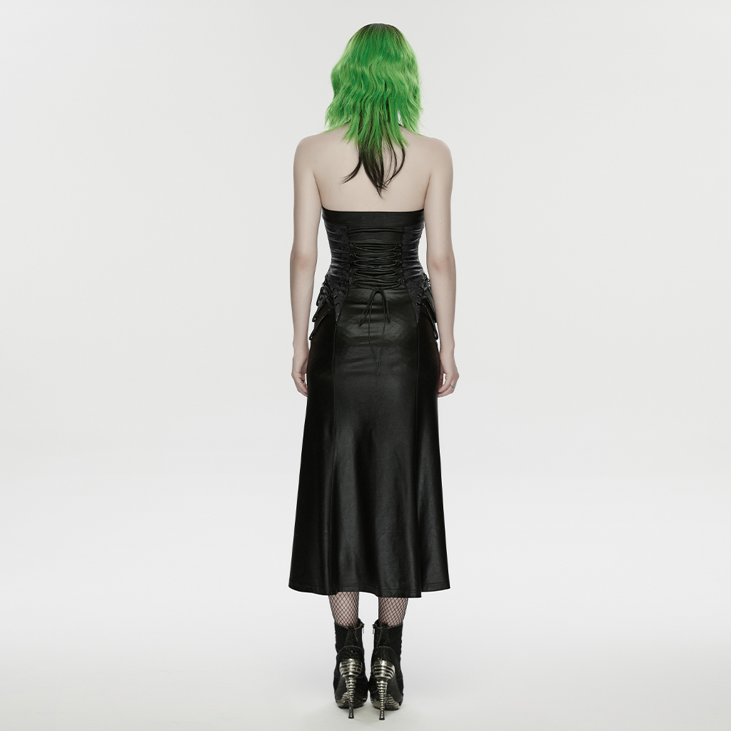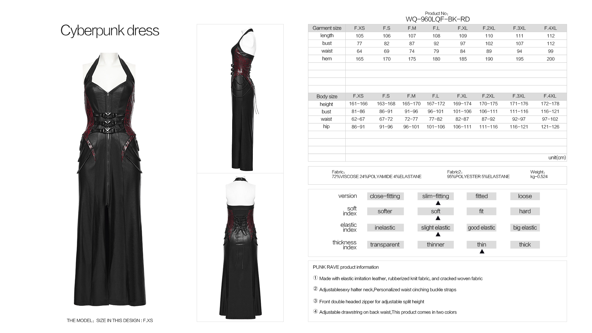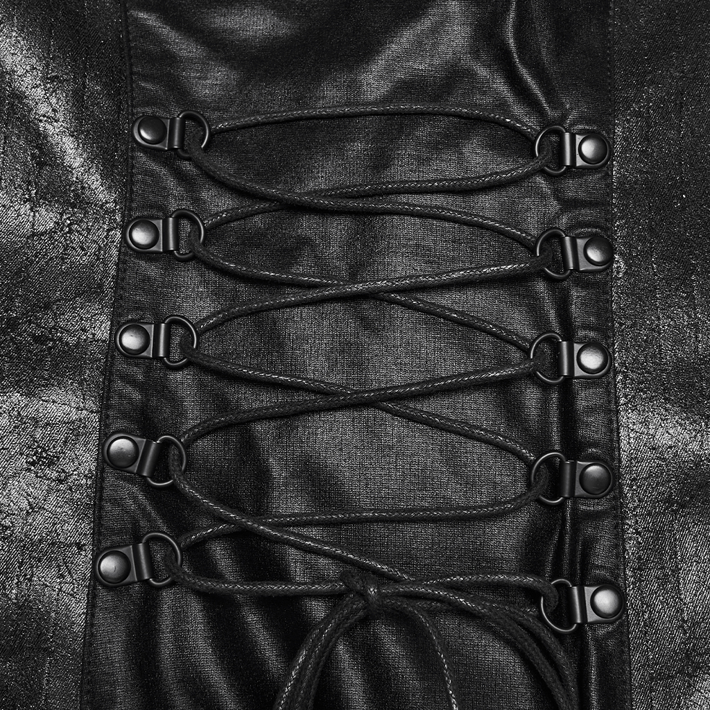Made with elastic imitation leather, rubberized knit fabric, and cracked woven fabric.