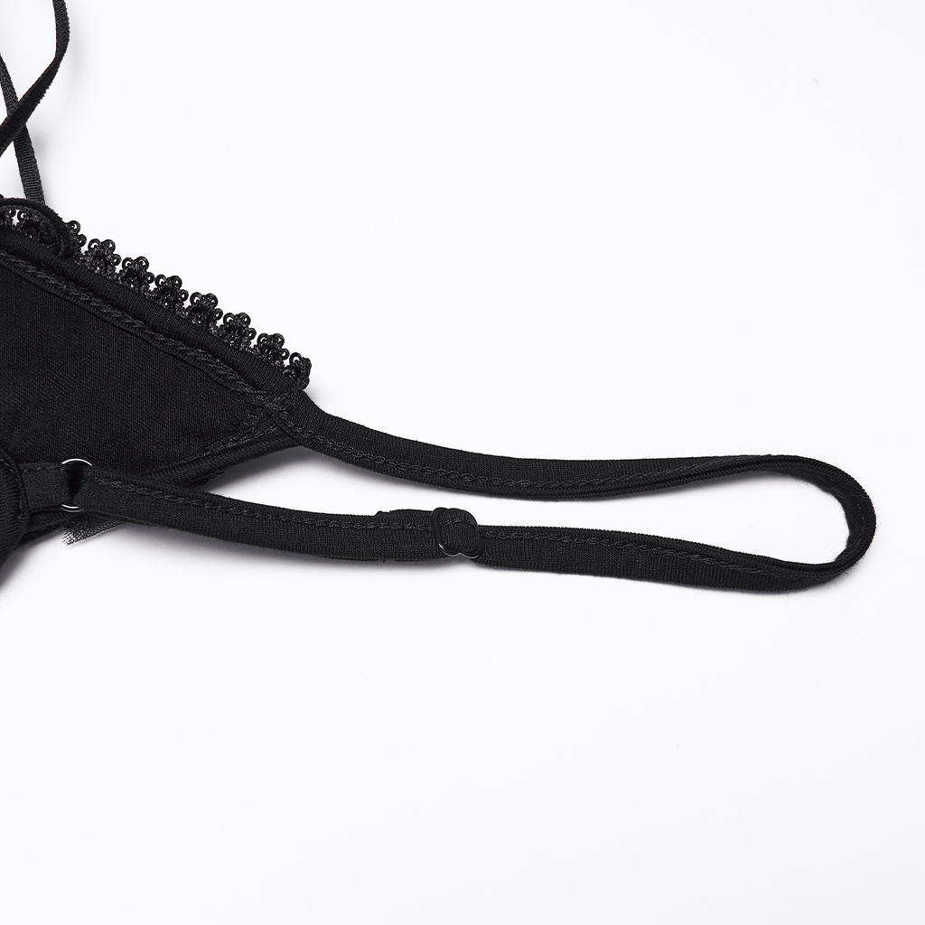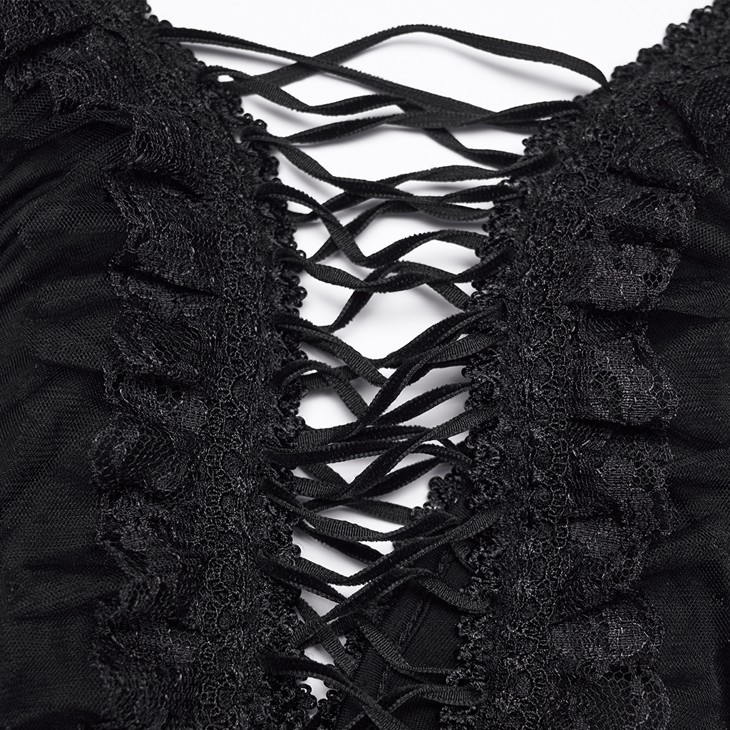 Deep V-split design with drawstring and exquisite lace.