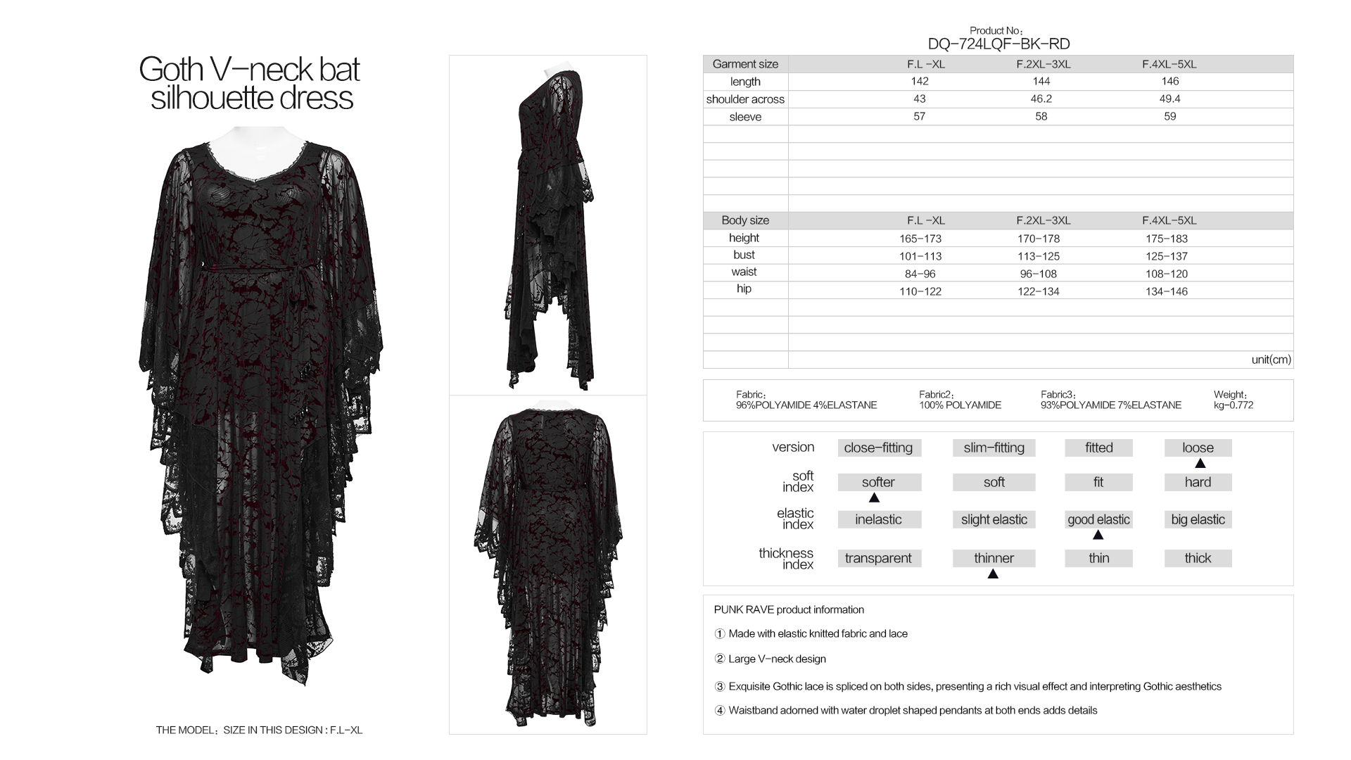 Exquisite Gothic lace is spliced on both sides, presenting a rich visual effect and interpreting Gothic aesthetics.