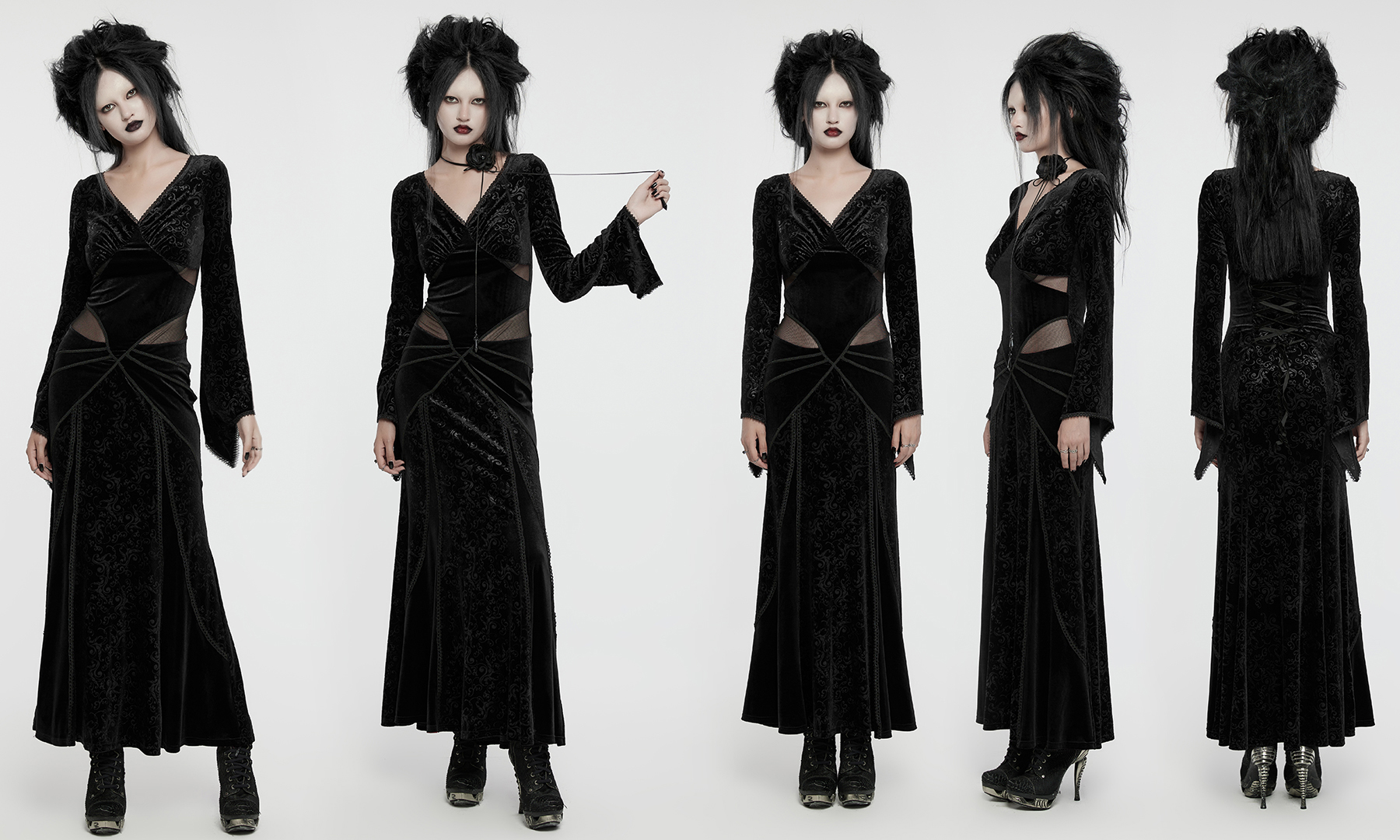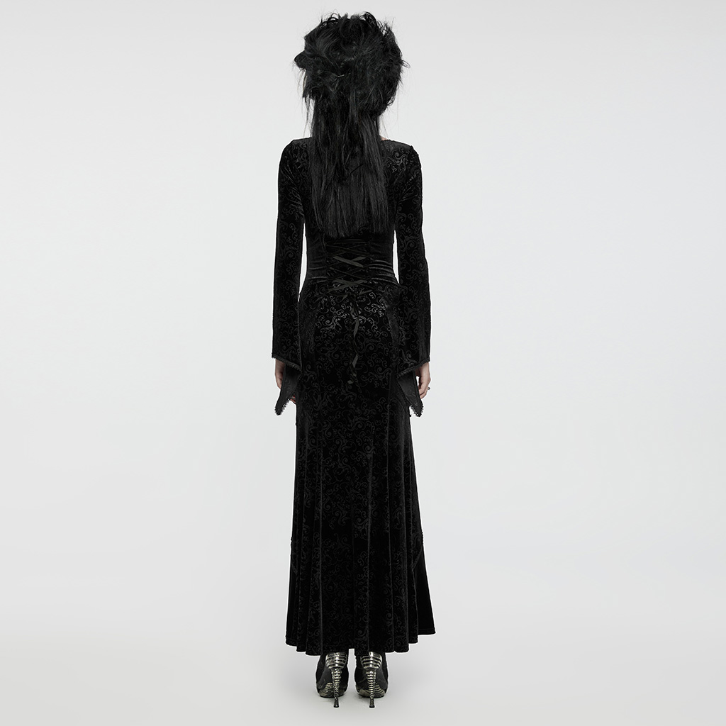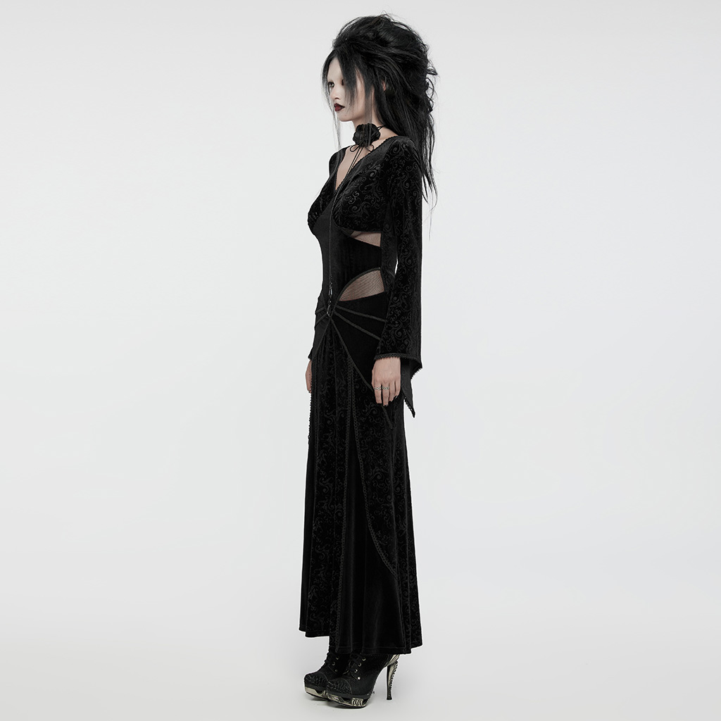 Goth V-Neck Embossed Elegant Dress