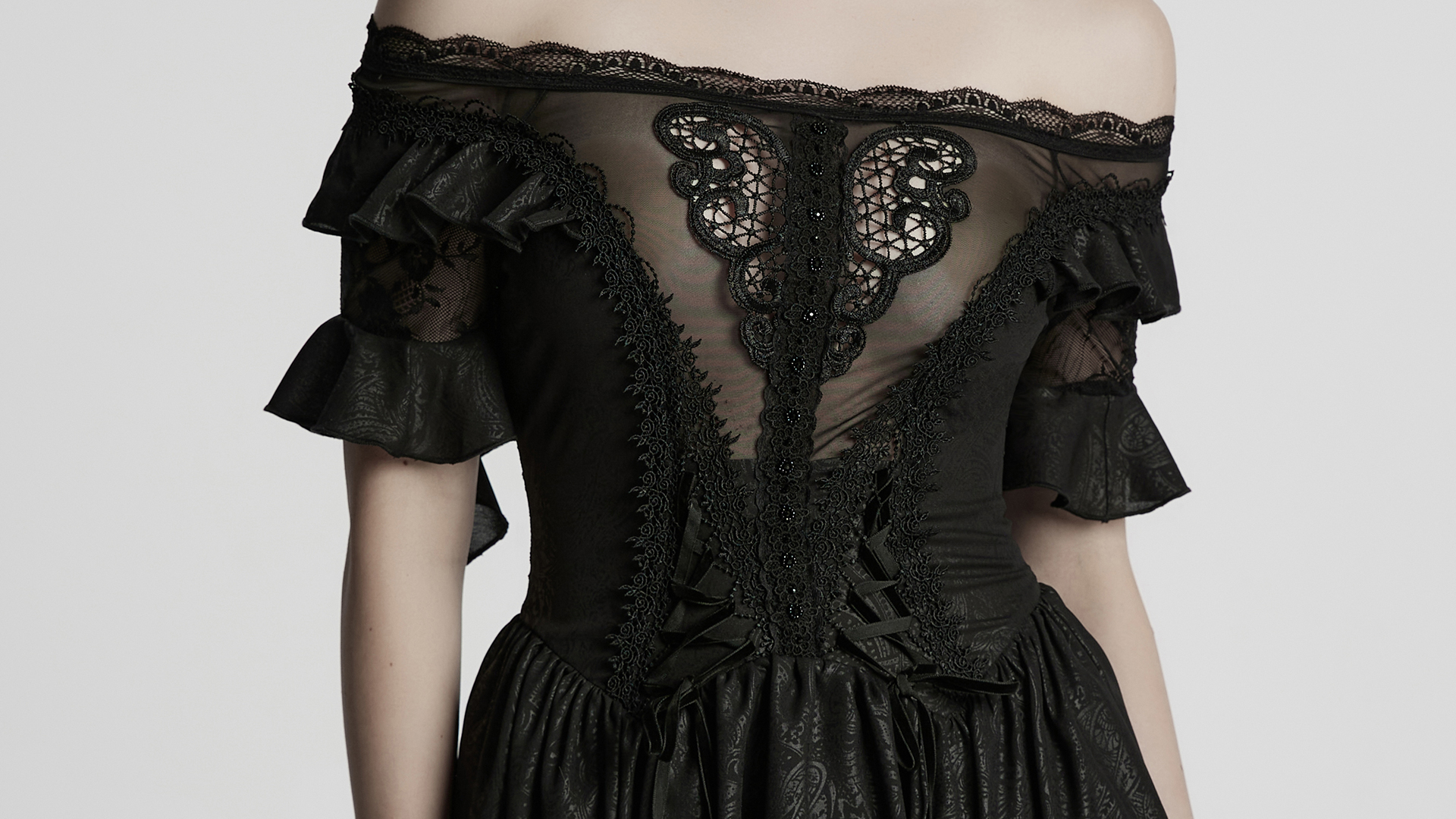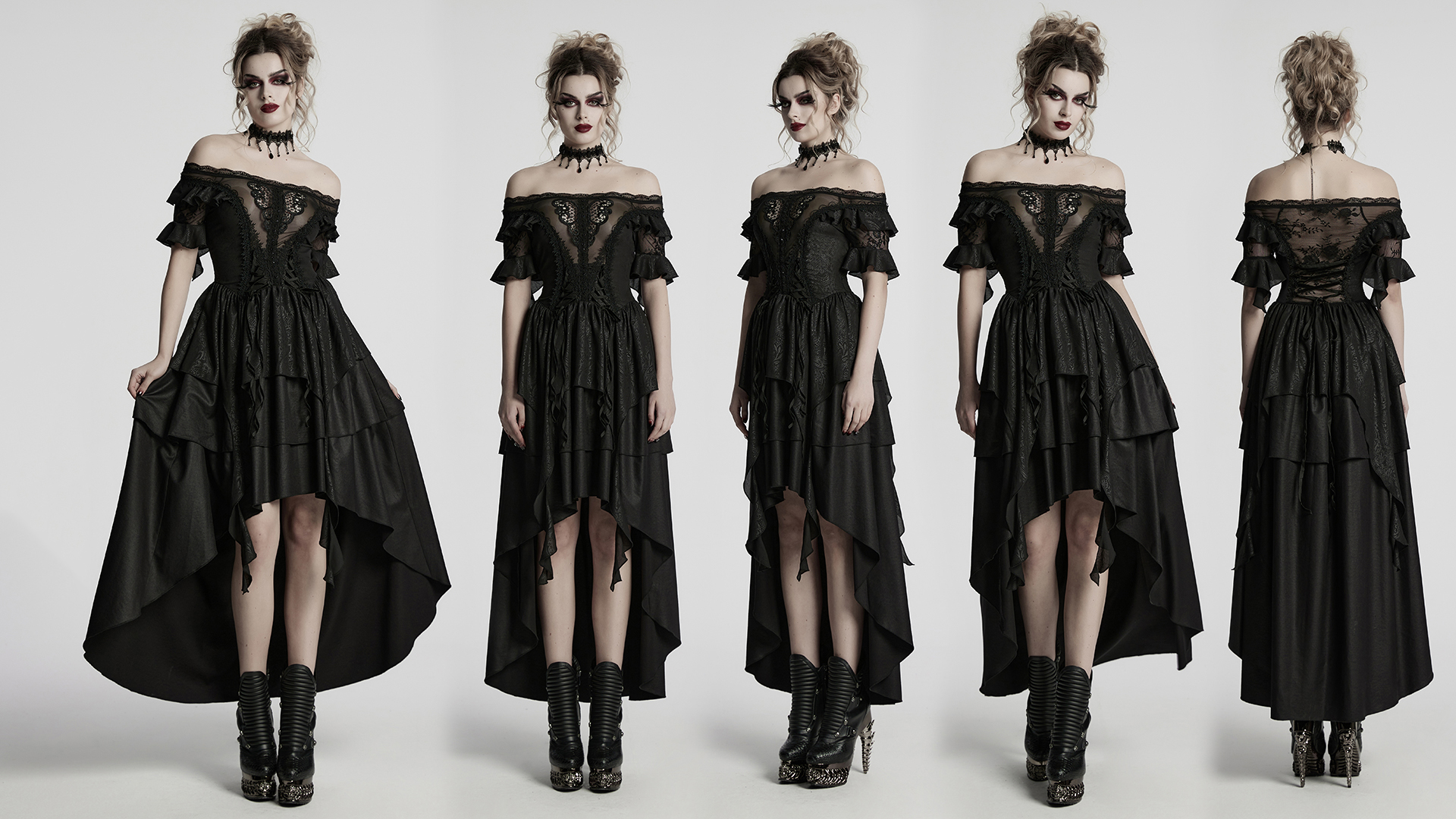 Gothic Elegant Off Shoulder Ruffled Sleeves Dress