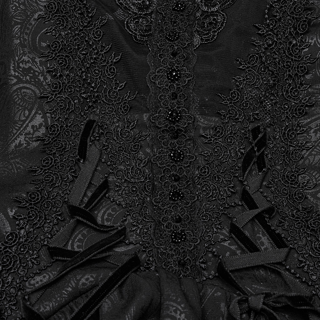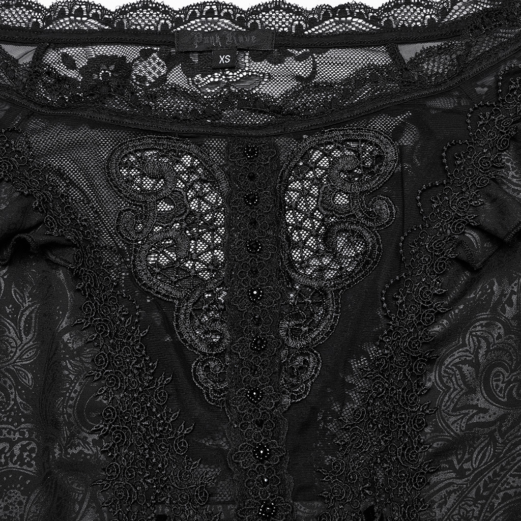 Hollow applique on the front chest, exquisite lace and drawstring enrich details.