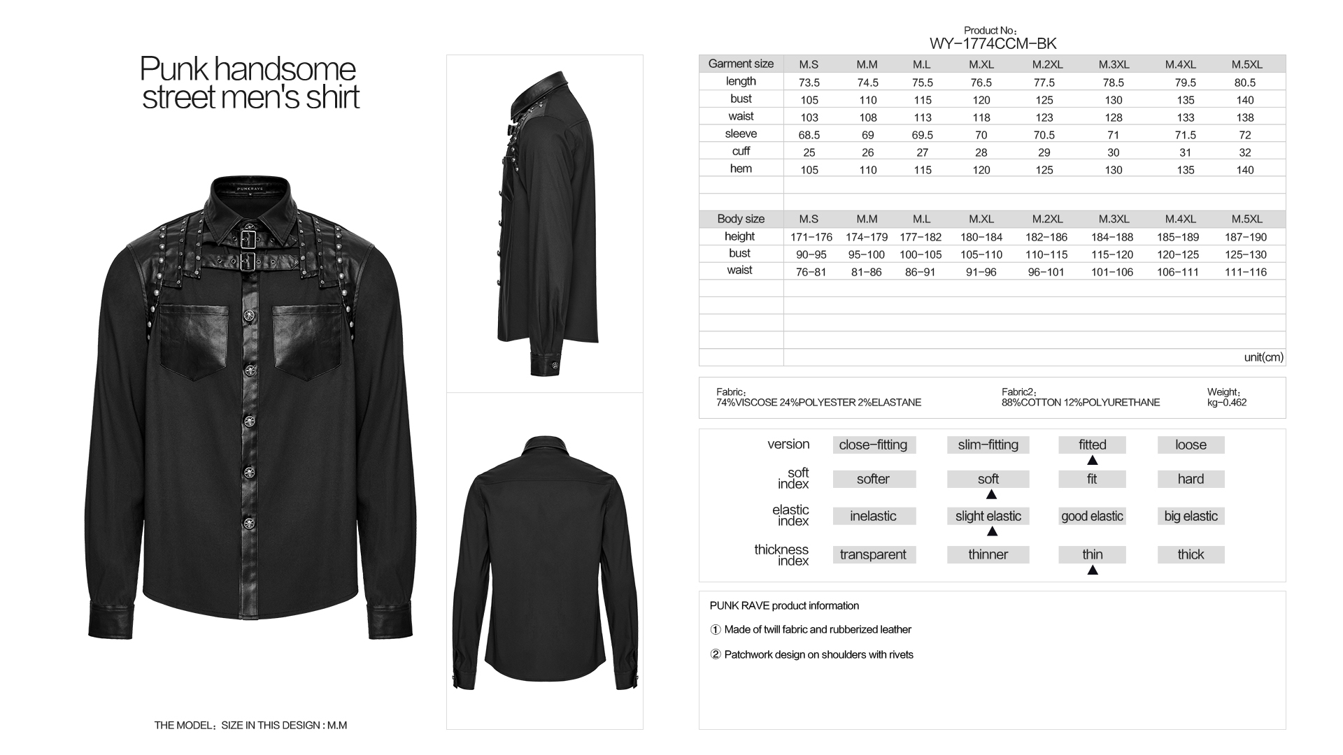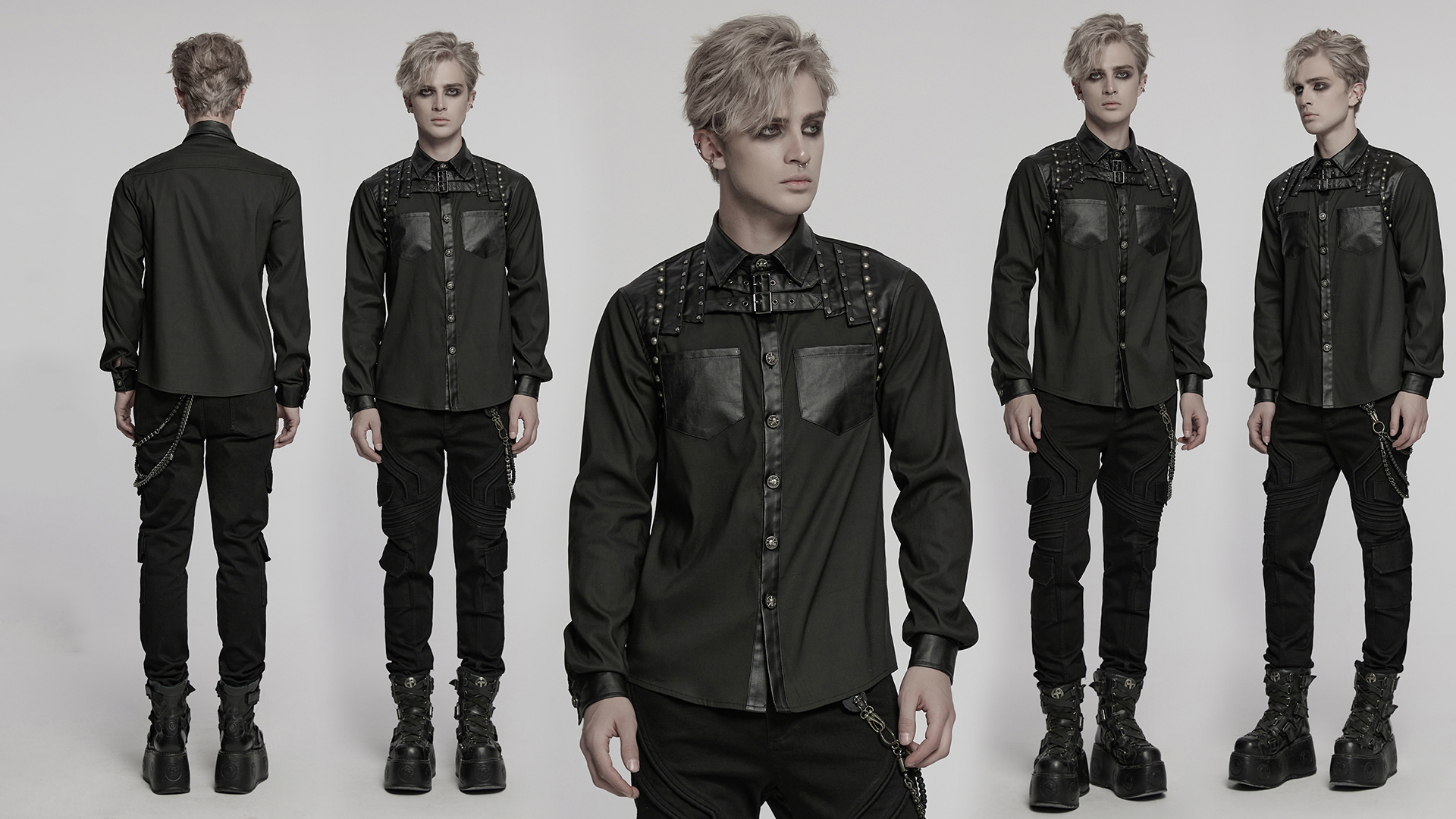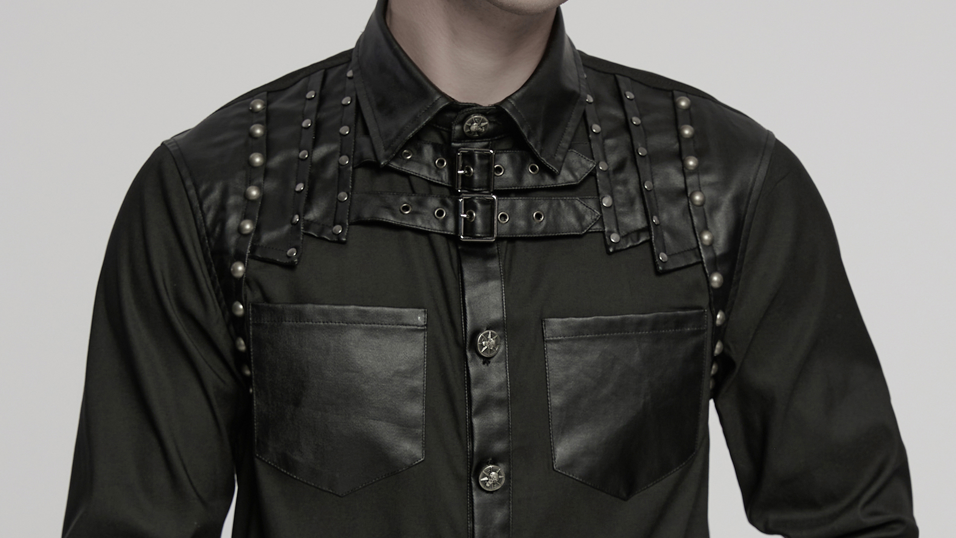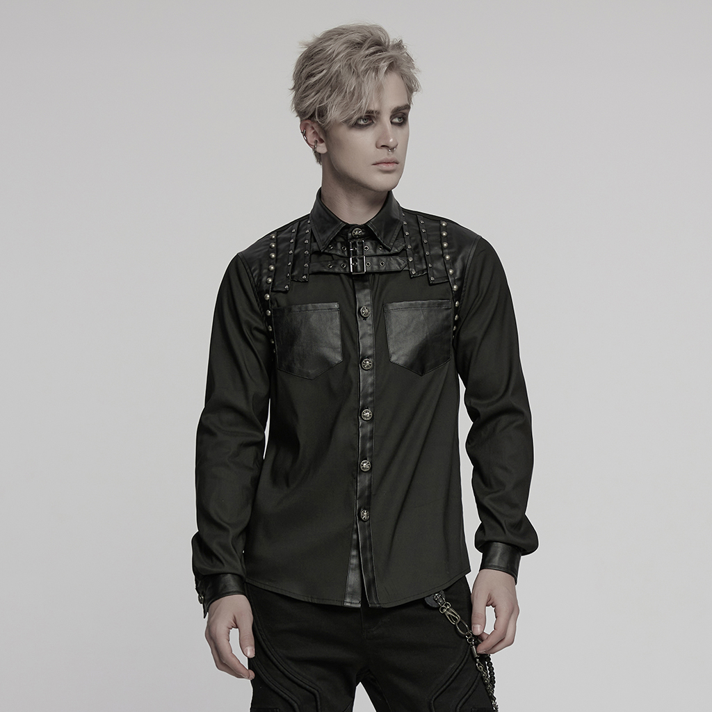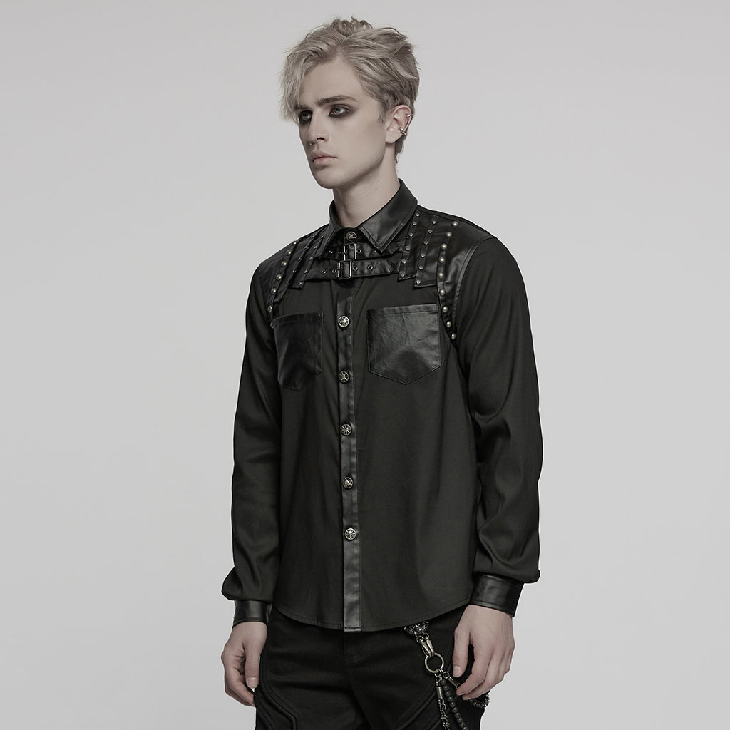 Patchwork Design Rivets Punk Shirt.