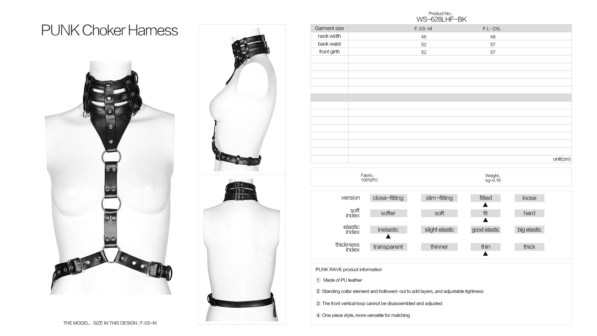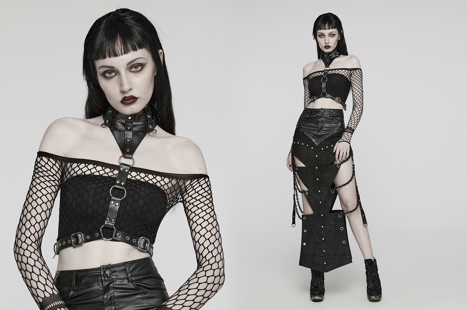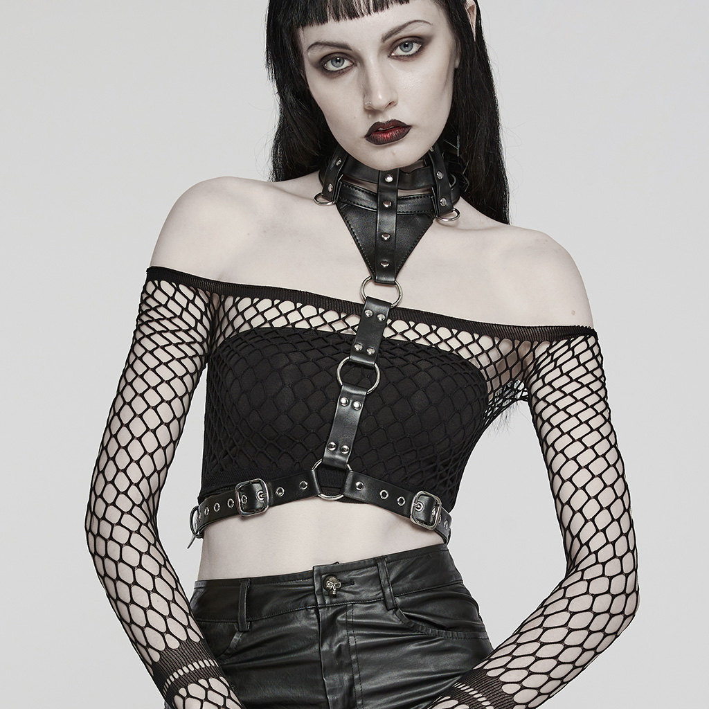PU Leather Punk Choker Harness.