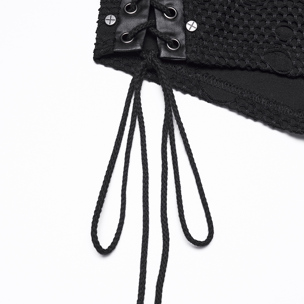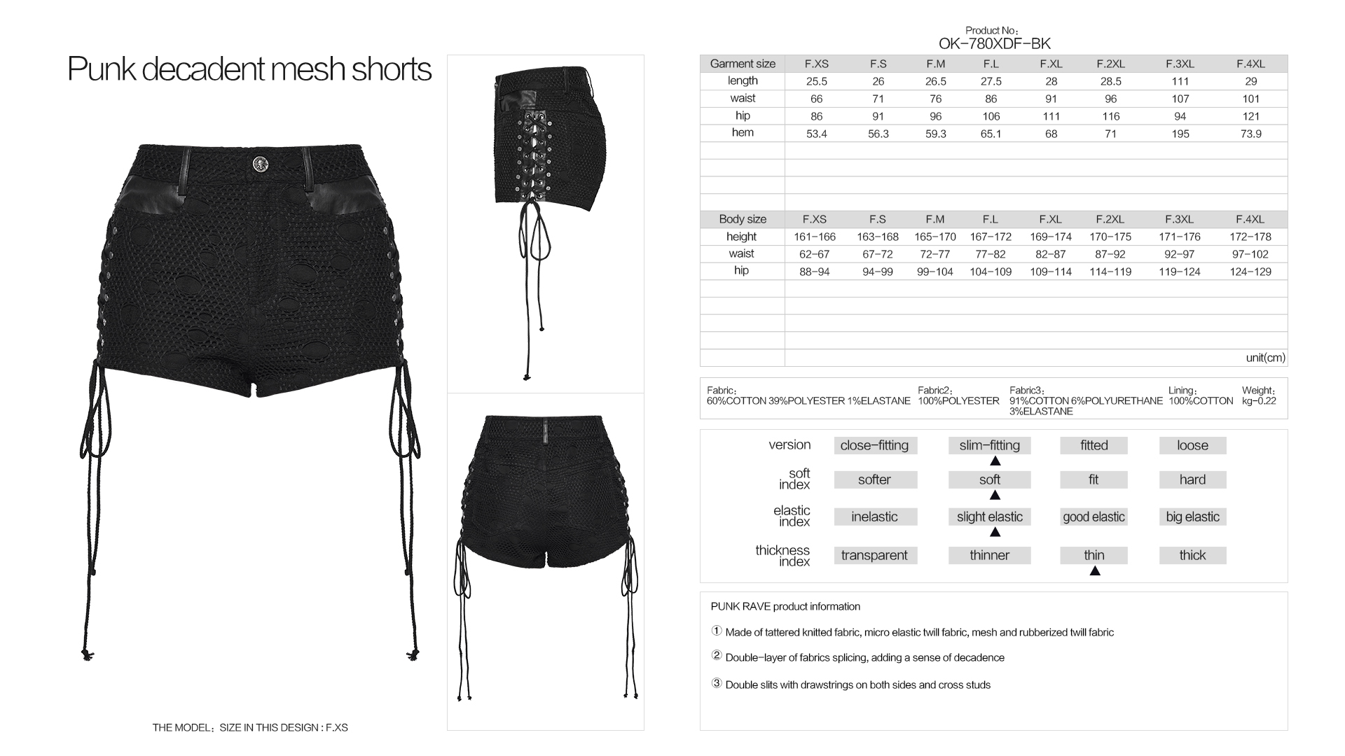 Made of tattered knitted fabric, micro elastic twill fabric, mesh and rubberized twill fabric.