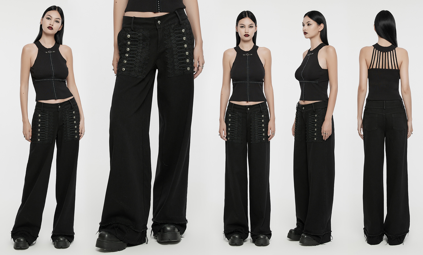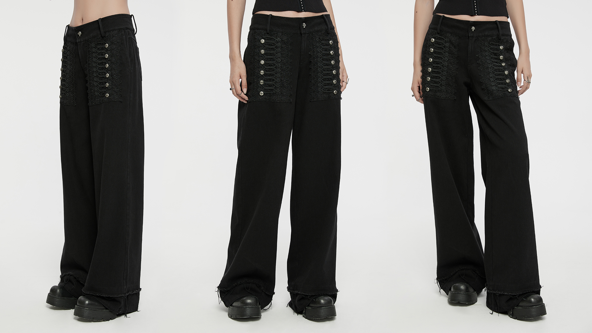 Exquisite 3D lace on the front panel, adorned with cross rivets, emphasizing individuality.