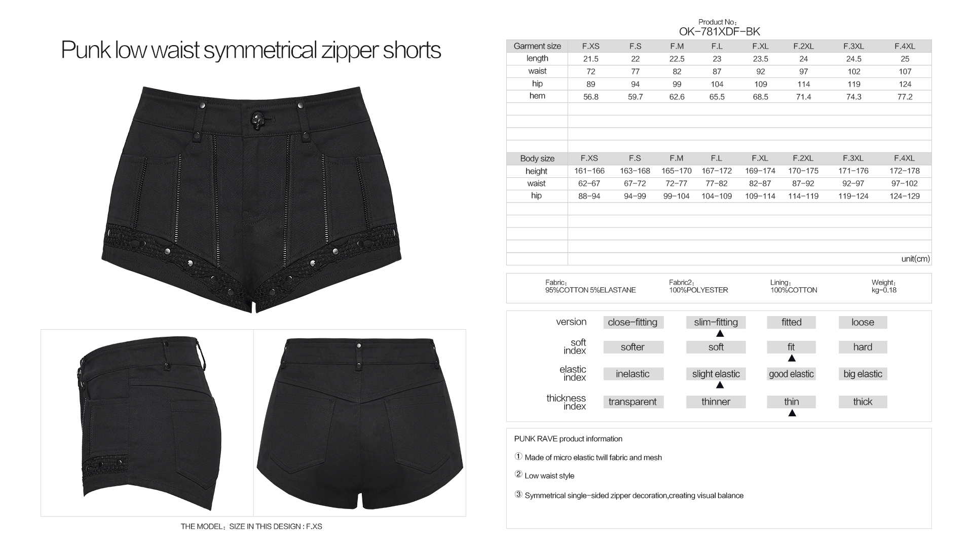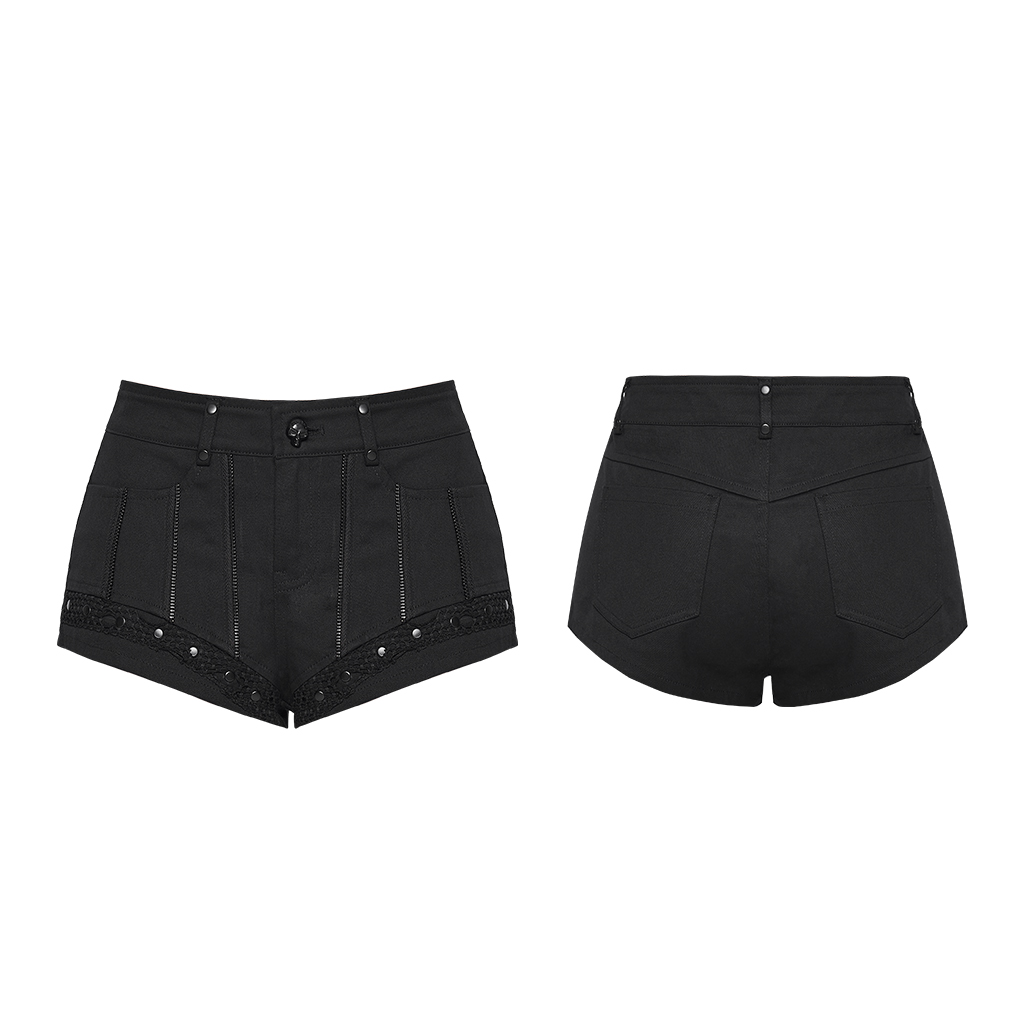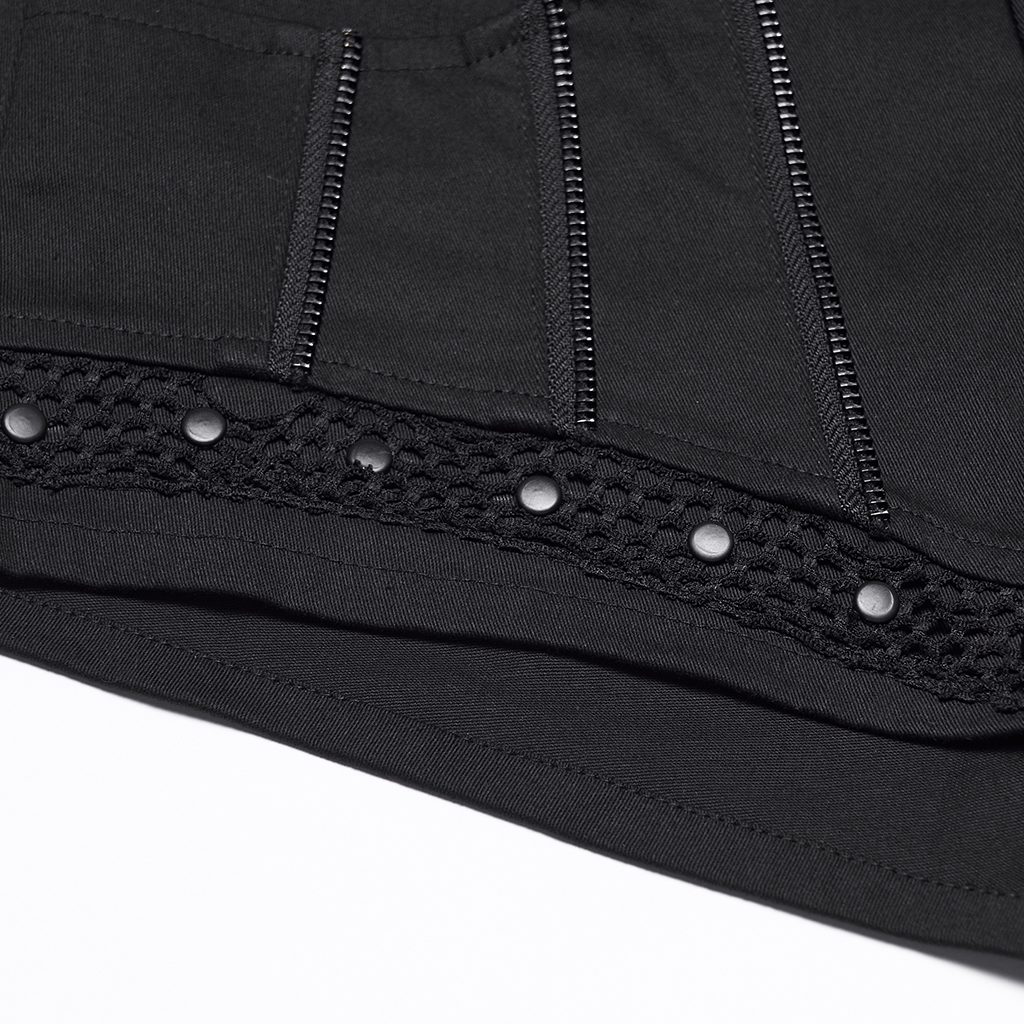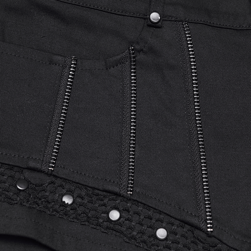 Mesh Punk Low Waist Symmetrical Zipper Shorts.