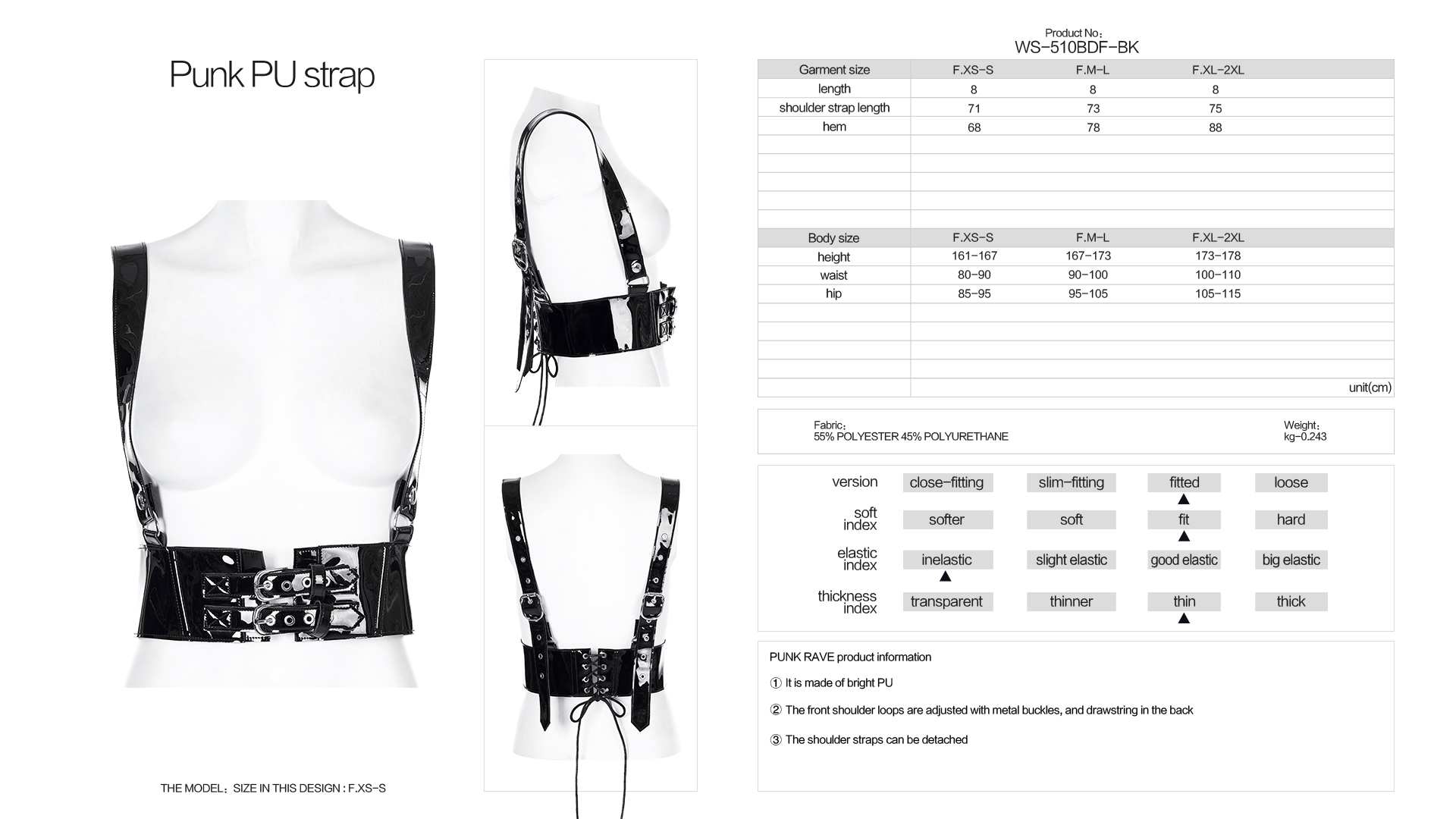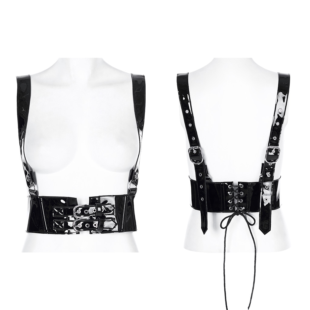 The front shoulder loops are adjusted with metal buckles, and drawstring in the back.