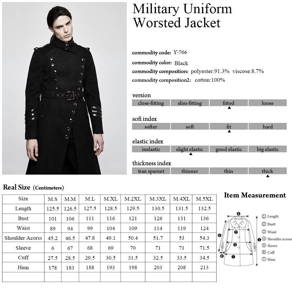 PUNK RAVE Black Long Winter Coat