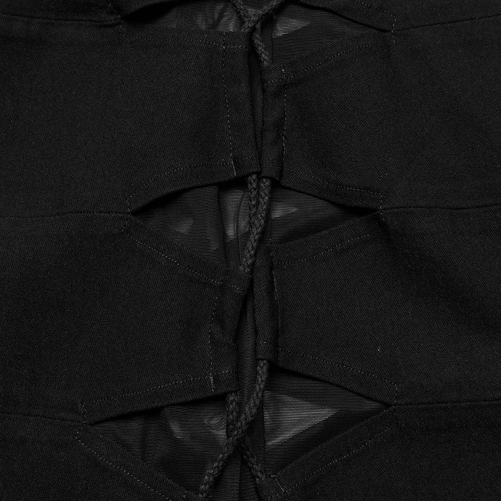 Drawstring design on both sides of the skirt, with a transparent mesh lining for sexiness.