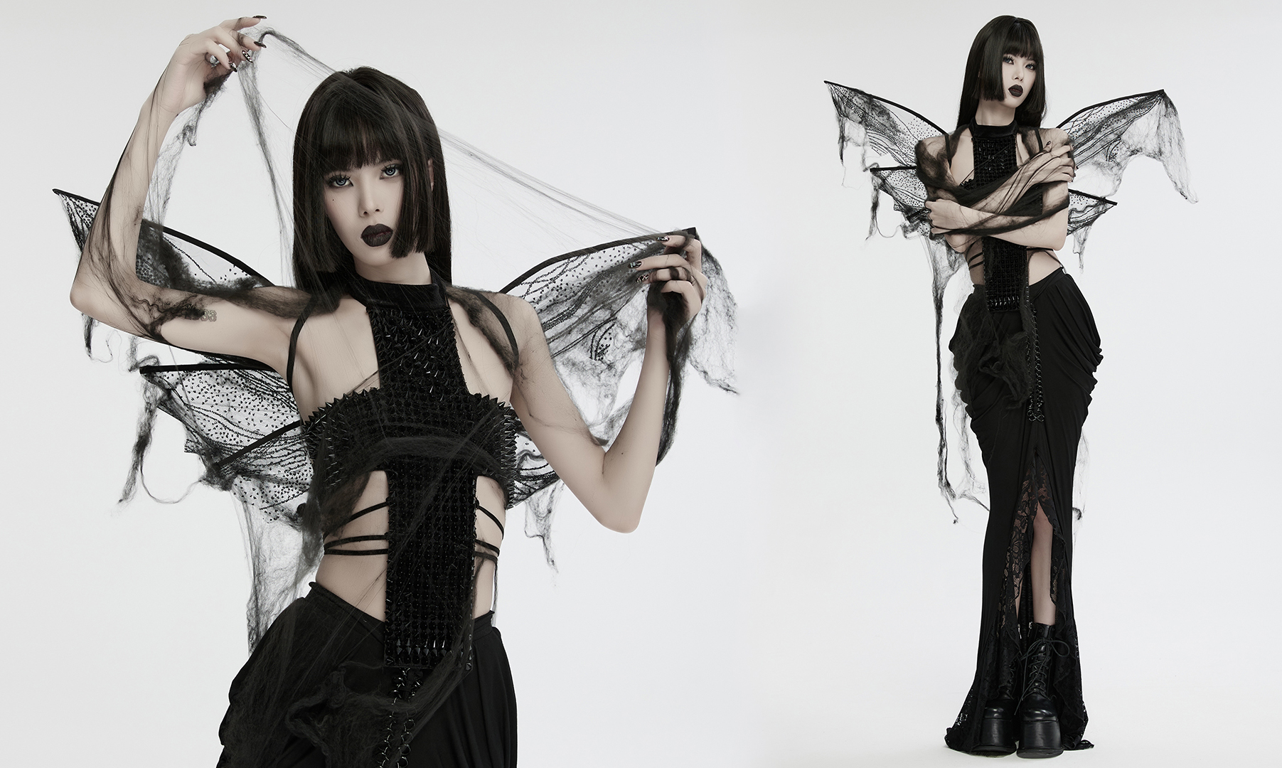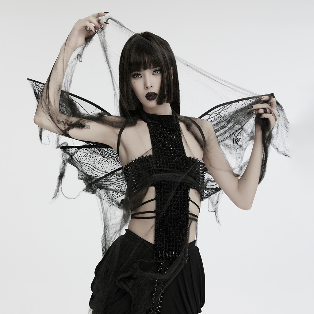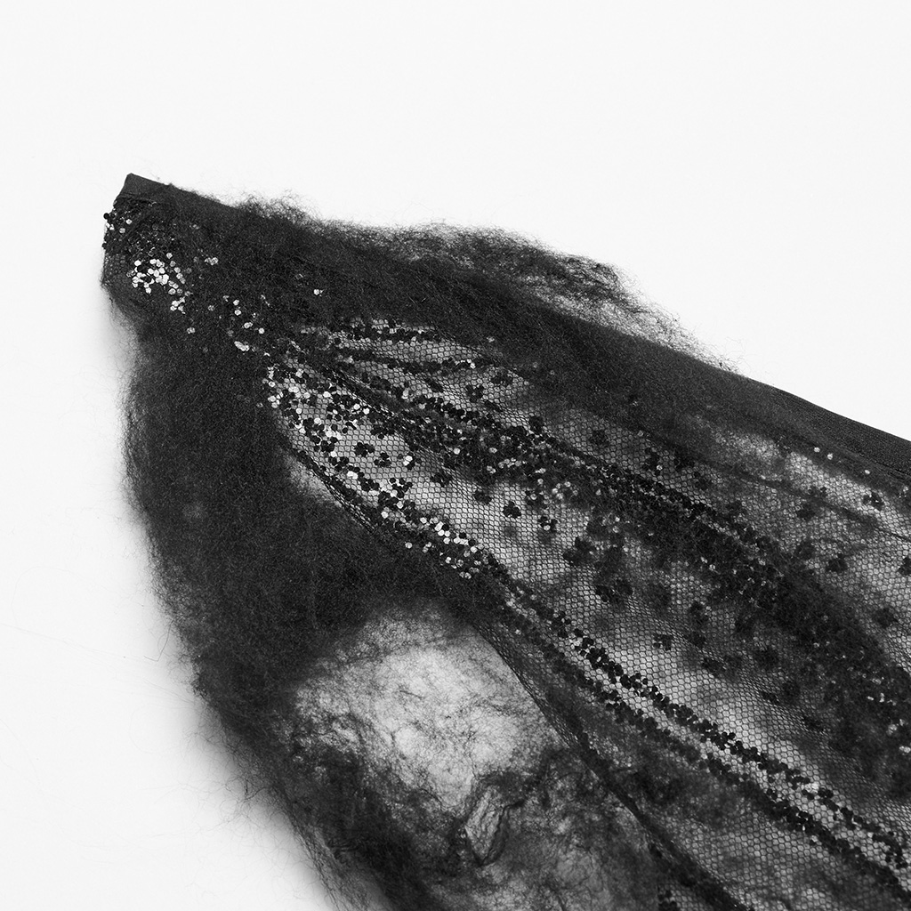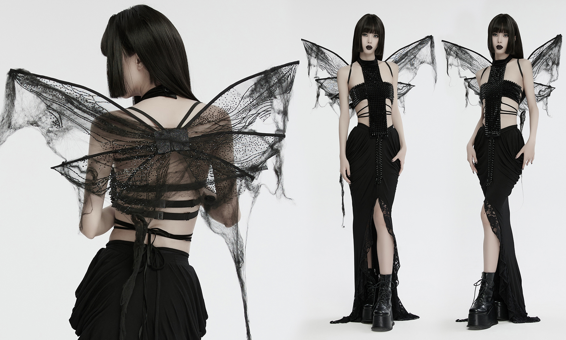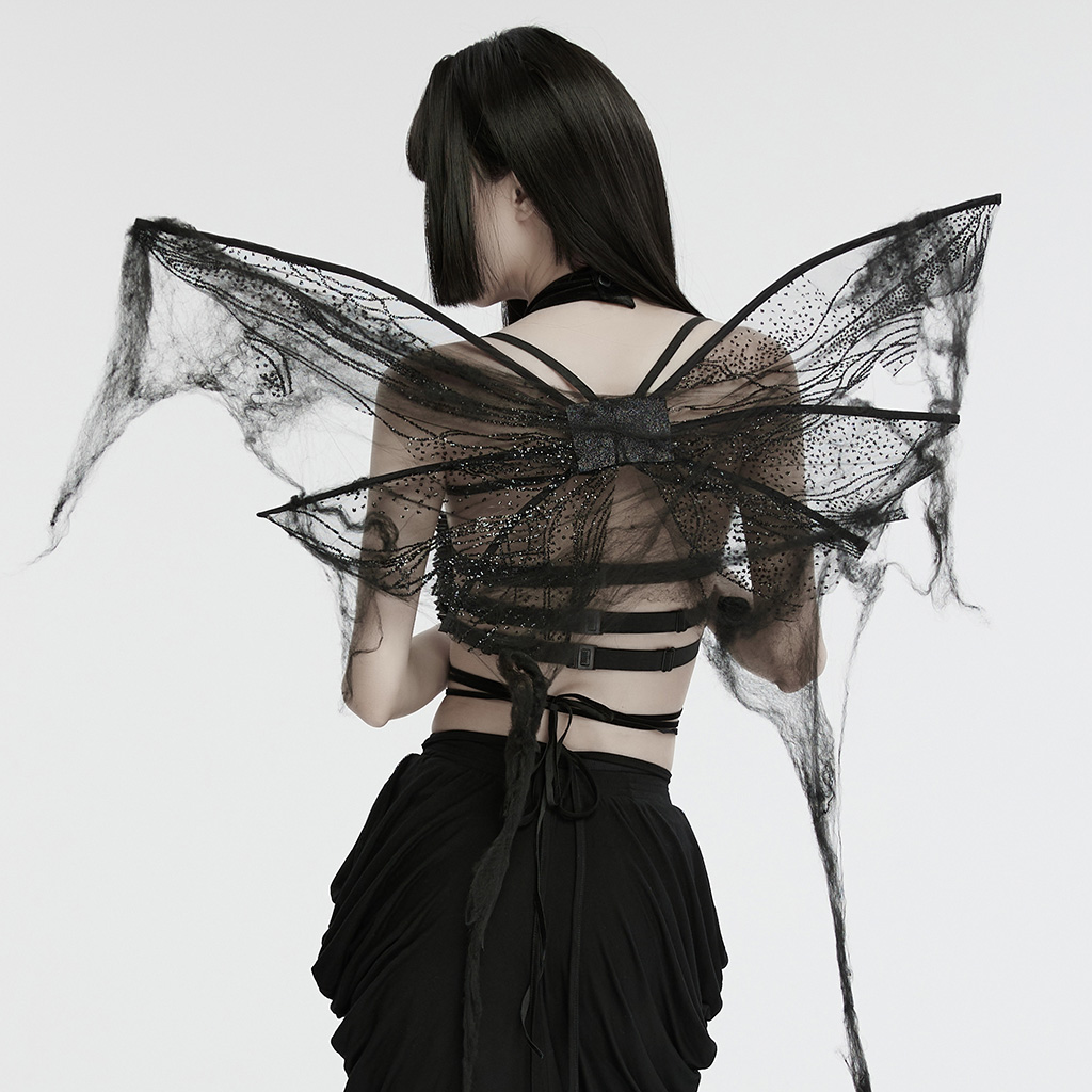 Dark and shimmering butterfly decorated with messy mesh cotton, mysterious and profound. Cotton mesh can be shaped freely.
