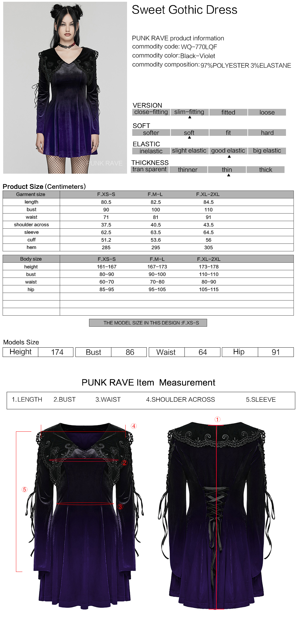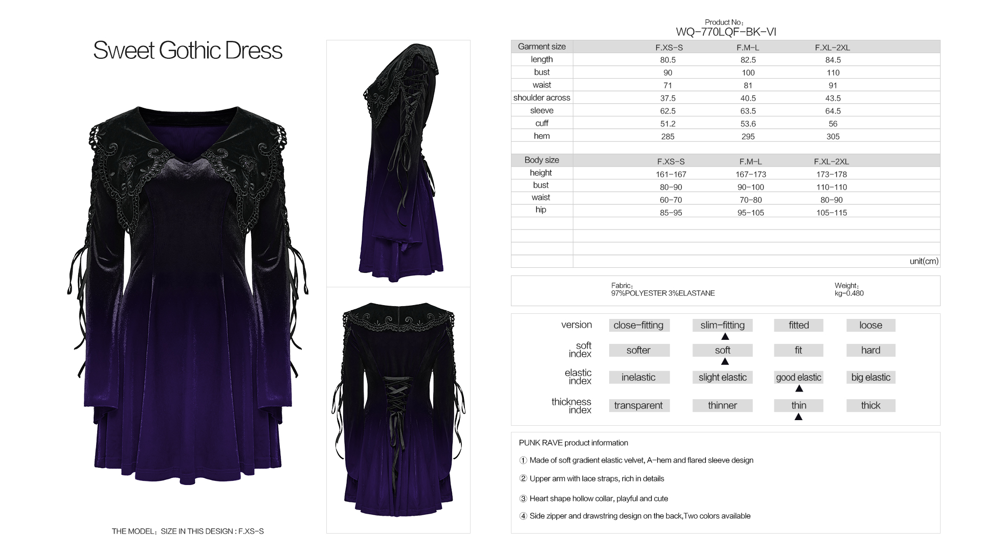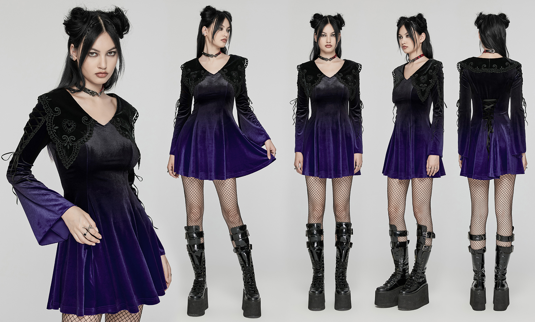 Soft Elastic Violet Gradient Velvet Gothic Dress