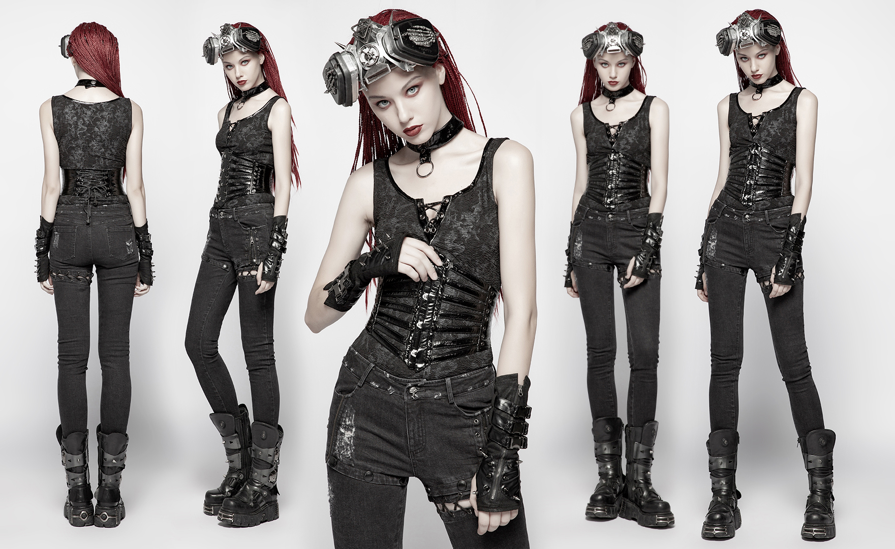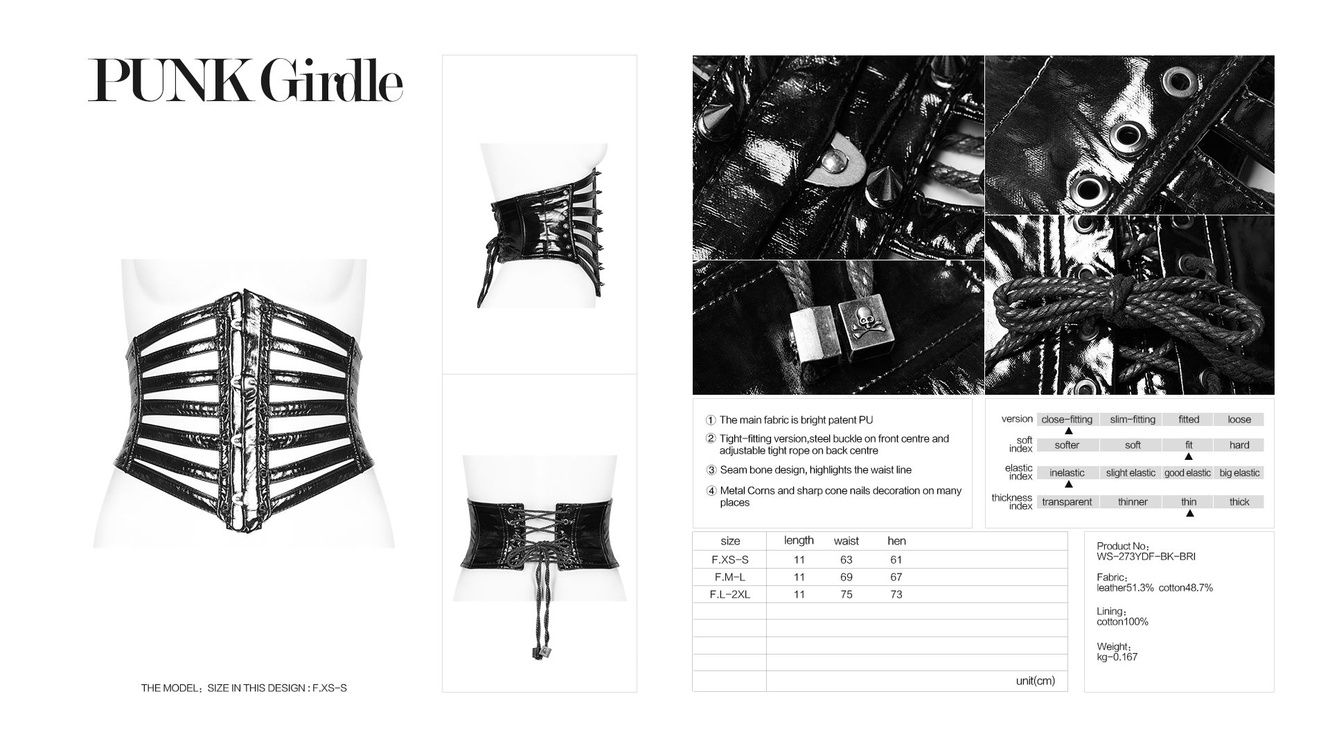 Tight-fitting version, steel buckle on front center and adjustable tight rope on the back center.