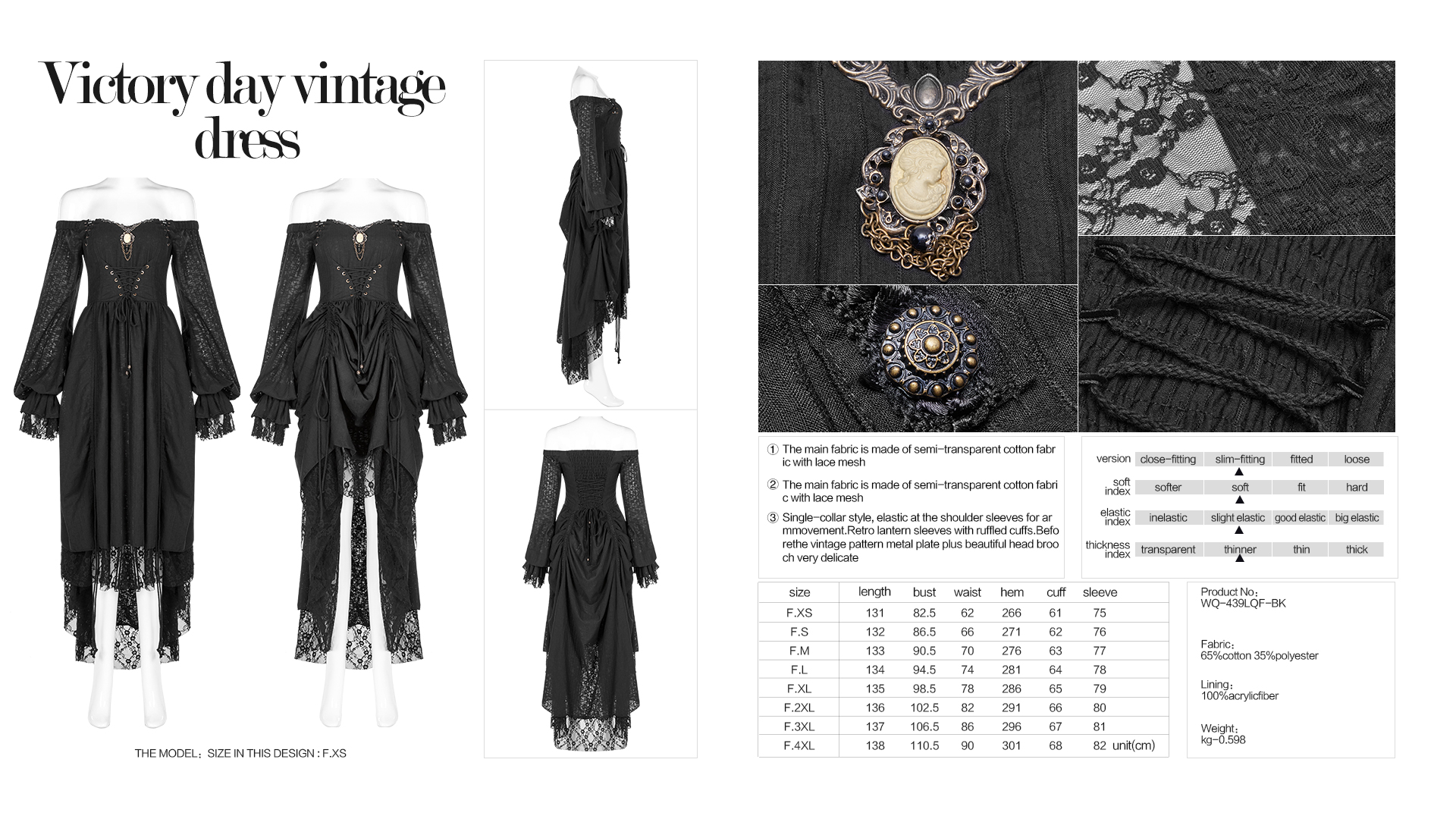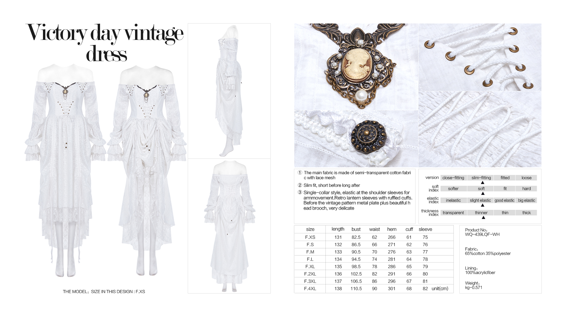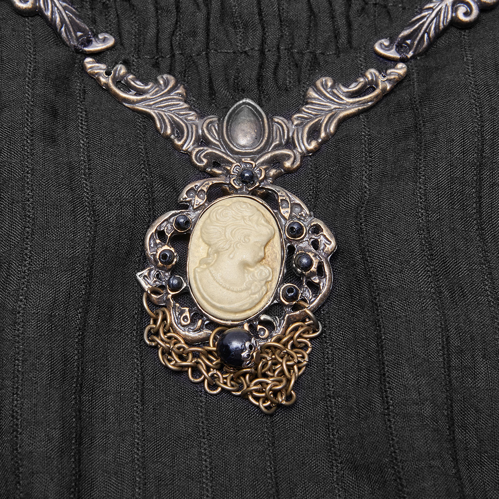 Single-collar style, elastic at the shoulder sleeves for arm movement. Retro lantern sleeves with ruffled cuffs. Before the vintage pattern metal plate plus beautiful head brooch, very delicate.