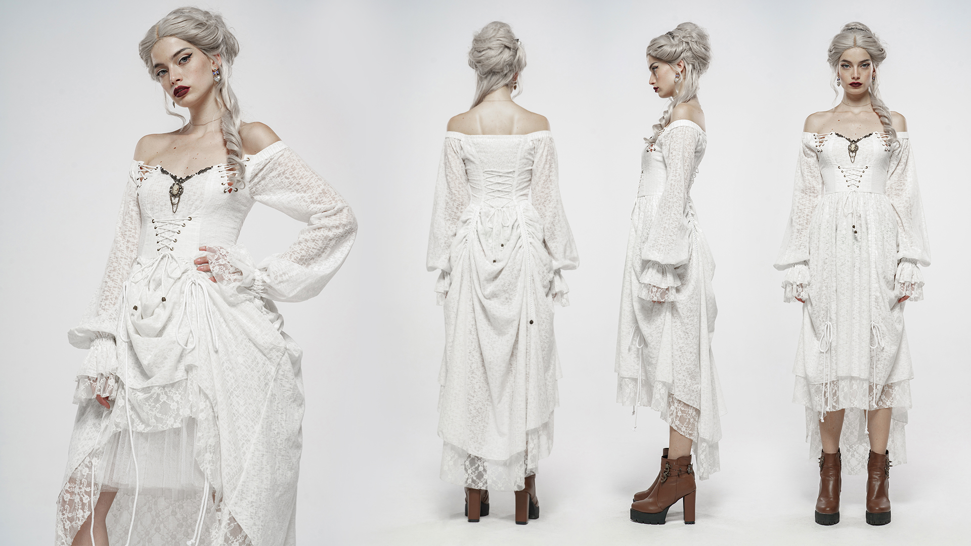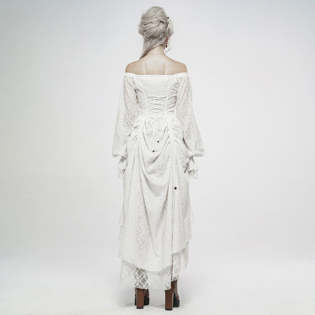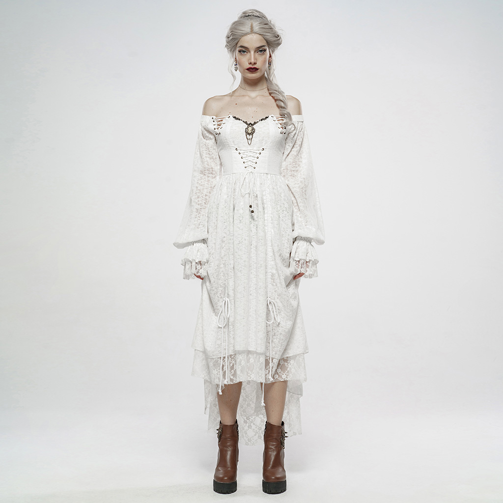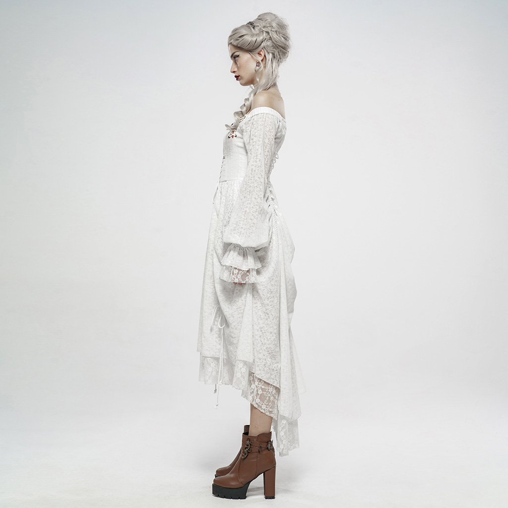 Single-collar style, elastic at the shoulder sleeves for arm movement. Retro lantern sleeves with ruffled cuffs. Before the vintage pattern metal plate plus beautiful head brooch, very delicate.
